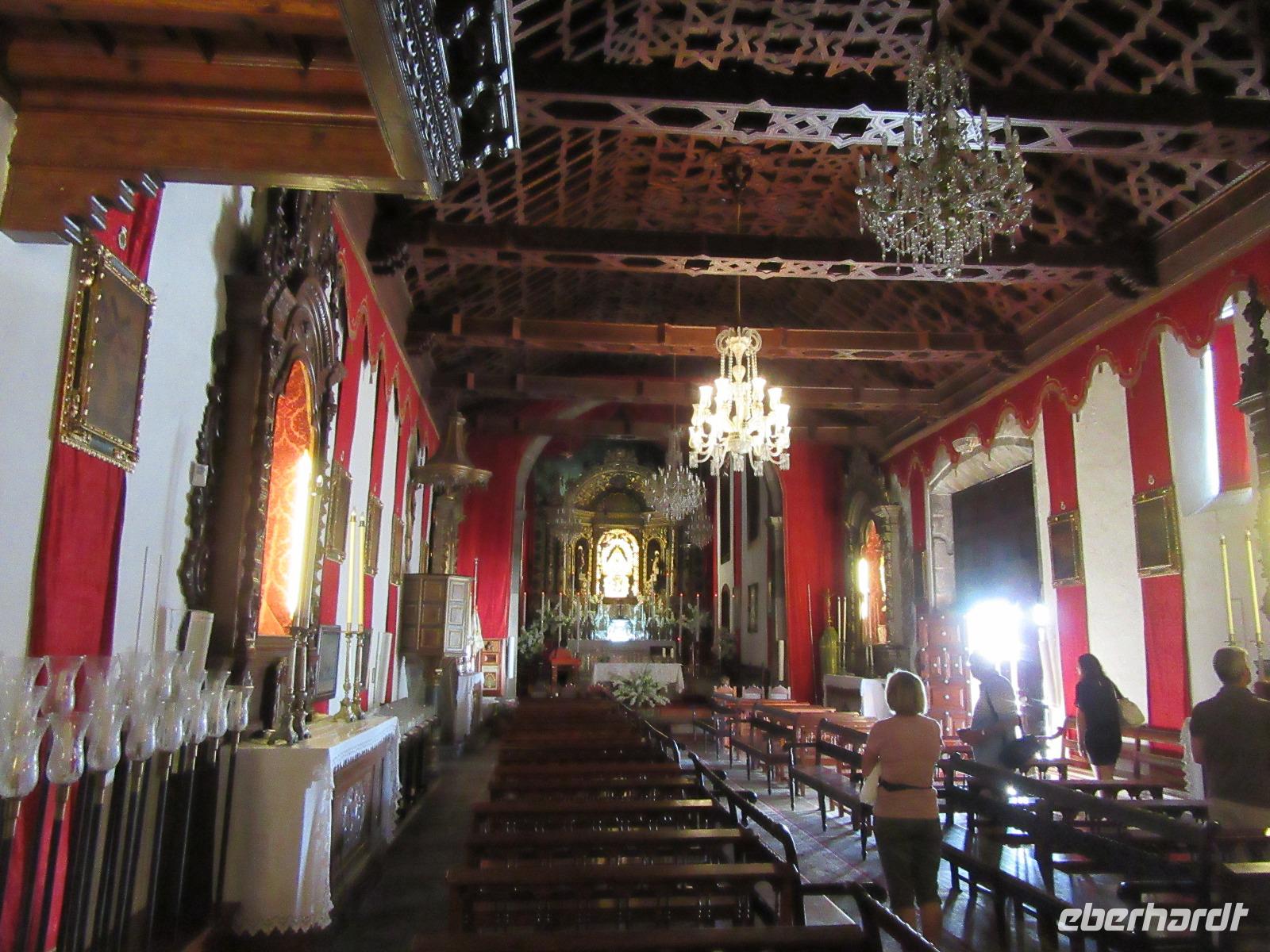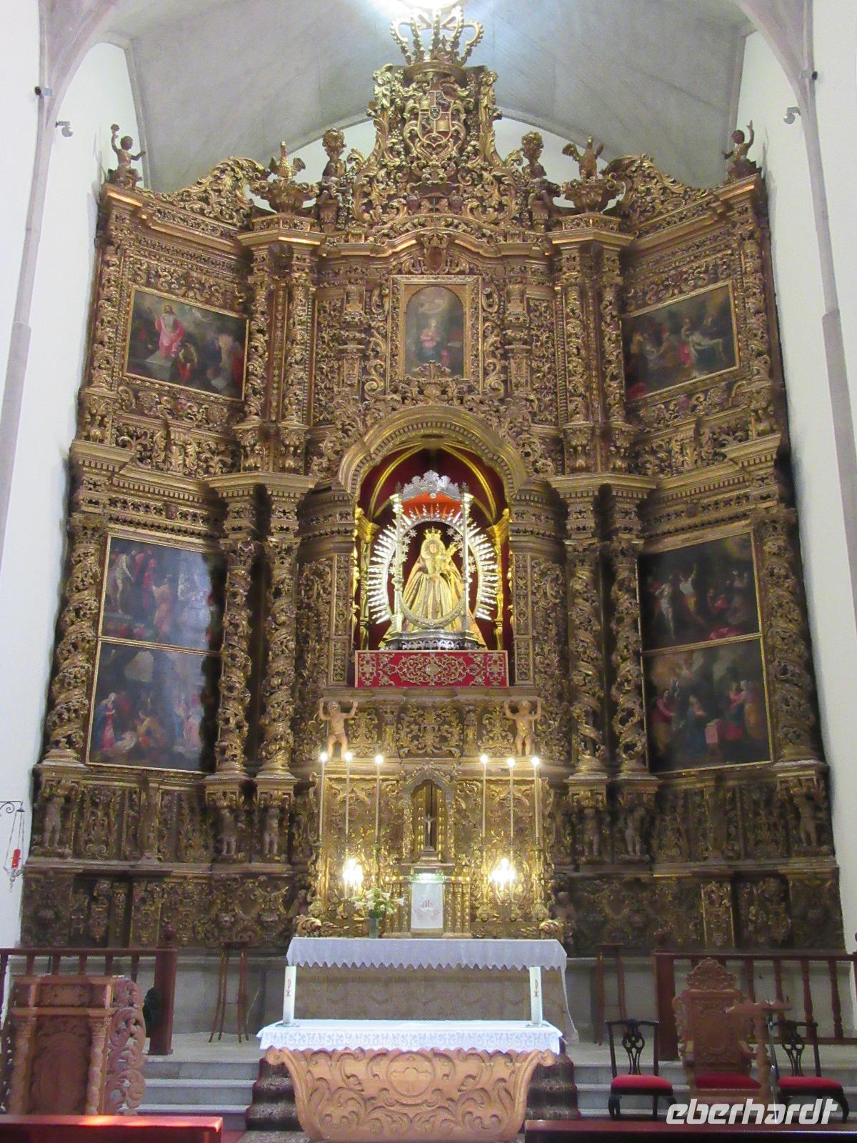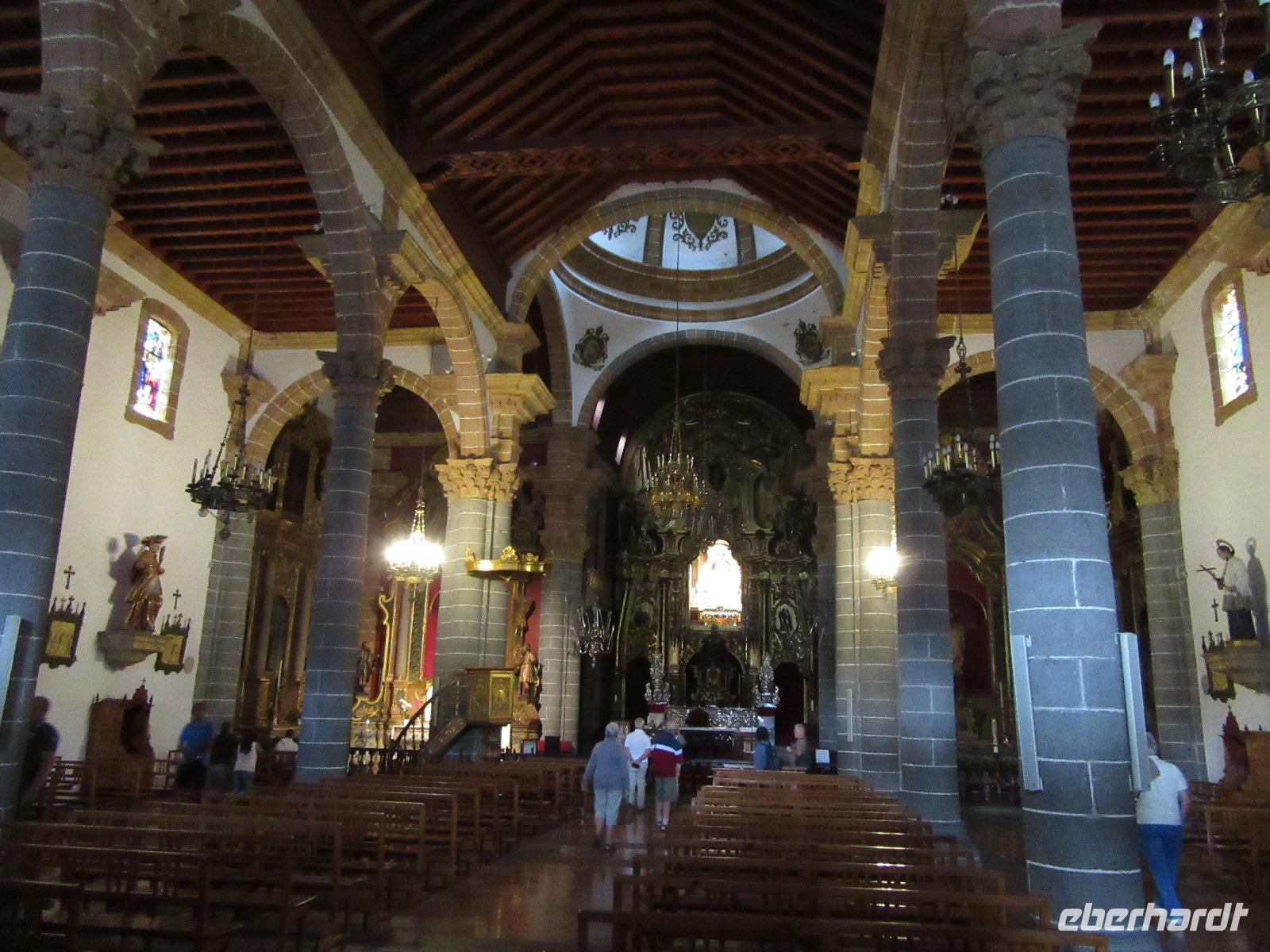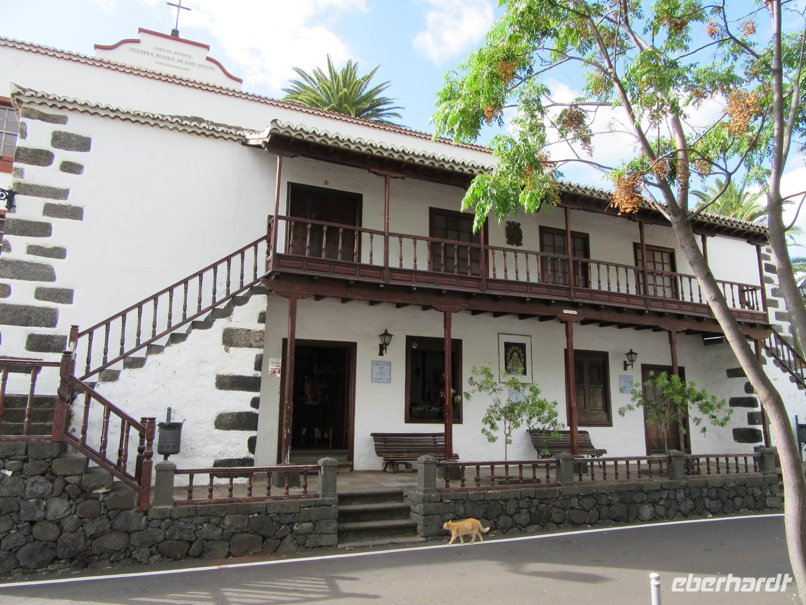 In der ruhige Lage von La Palma stehen wir auf und fangen einen neuen Tag an. Schon gefrühstückt treffen wir uns mit unserer örtlichen Reiseleiterin Gabrielle und versuchen die wichtigste Person der Insel kennen zu lernen: die Schutzheilige der Schneeberge, Nuestra Señora de las Nieves. Auf dem Weg haben wir die Geschichte von dieser besonderen Madonna und den 12 Zwergen, die zusammen bei dem Inselfest tanzen gehört. Die kleine Kirche ist wunderbar, den sie sieht wie ein kleiner Palast aus und an dem Altar befindet sich die Madonna aus Terrakota-Holz mit hübscher Kleidung und vielen Perlen, Silber und Gold überall. Hier kann man die Ruhe genießen und die typischen Holz-Balkone sehen.