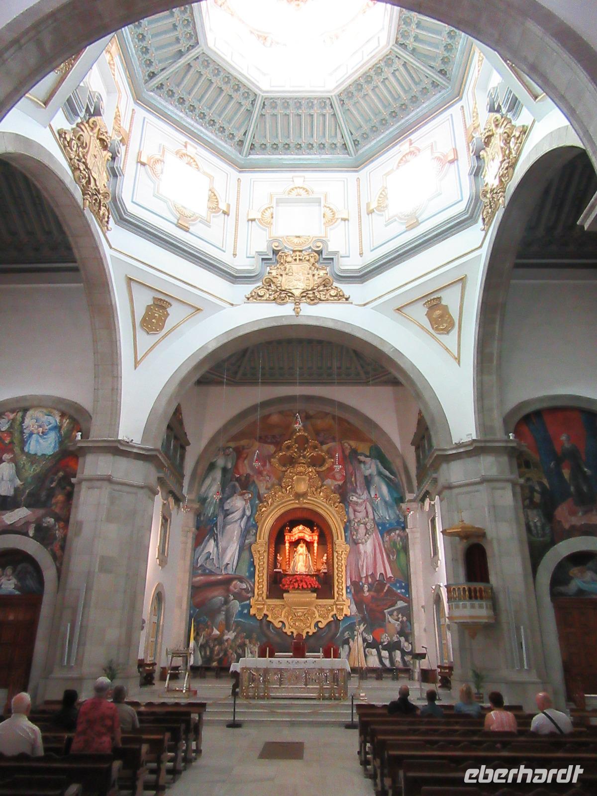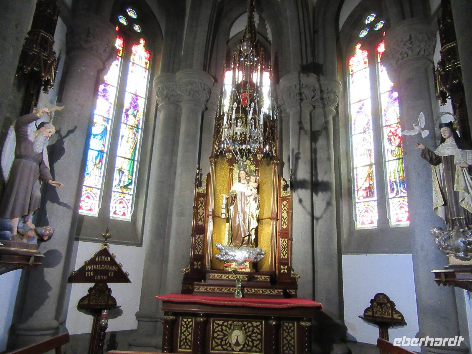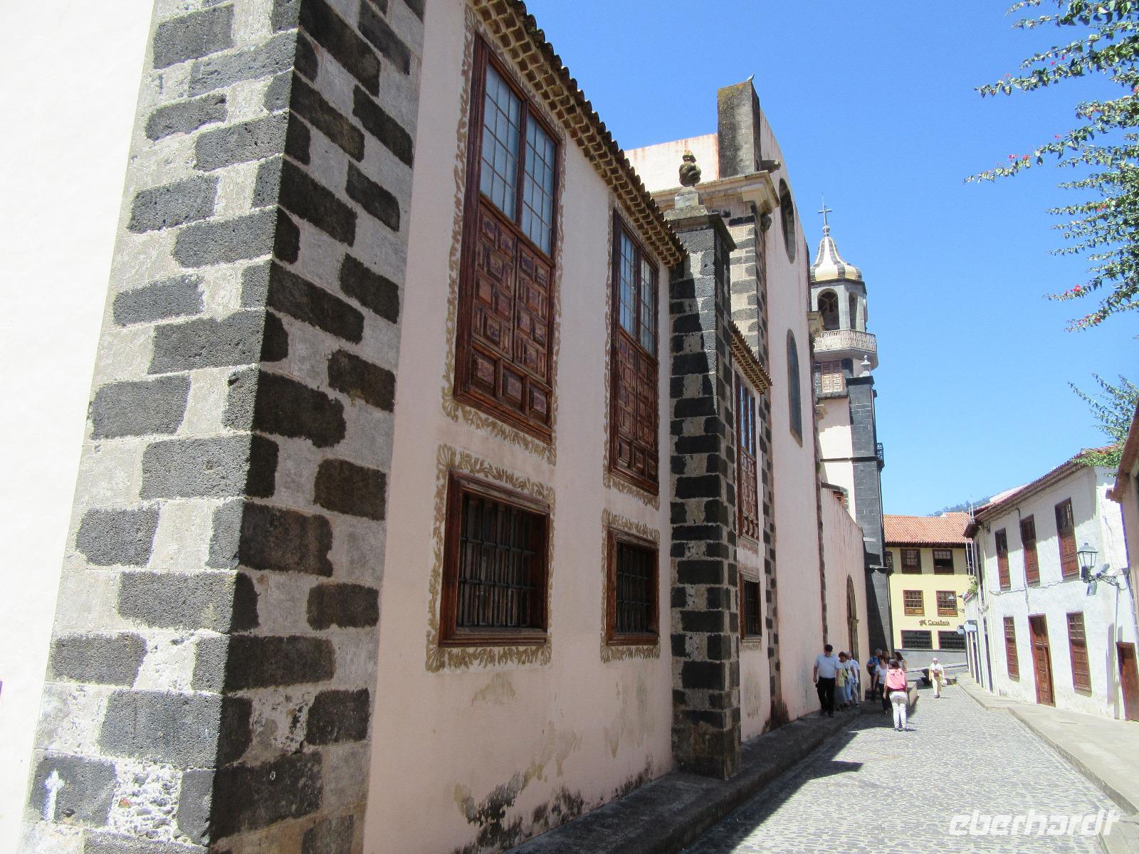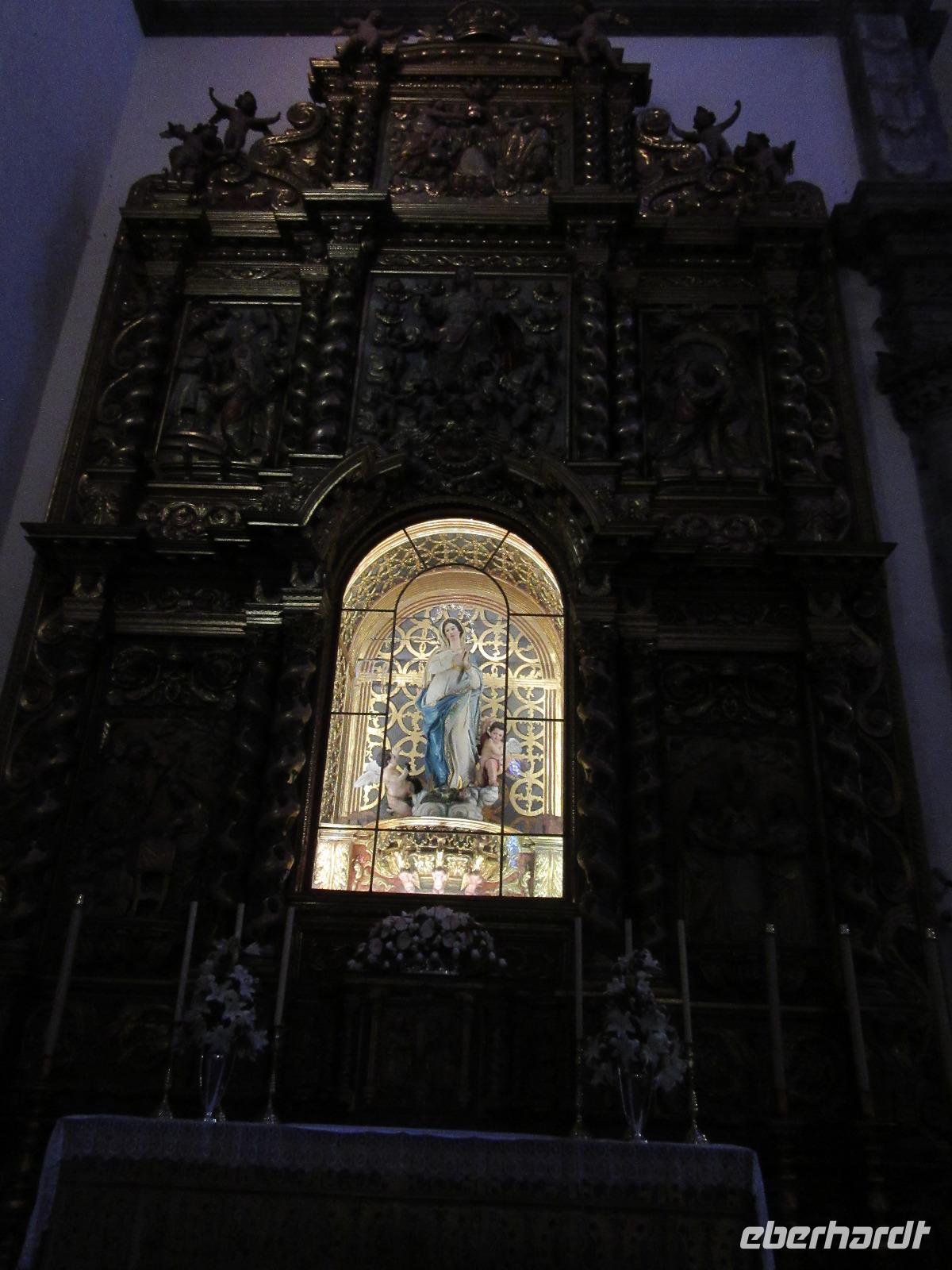 In der ruhige Lage von La Palma stehen wir auf und fangen einen neuen Tag an. Schon gefrühstückt treffen wir uns mit unserer örtlichen Reiseleiterin Gabrielle und versuchen die wichtigste Person der Insel kennen zu lernen: die Schutzheilige der Schneeberge, Nuestra Señora de las Nieves. Auf dem Weg haben wir die Geschichte von dieser besonderen Madonna und den 12 Zwergen, die zusammen bei dem Inselfest tanzen gehört. Die kleine Kirche ist wunderbar, den sie sieht wie ein kleiner Palast aus und an dem Altar befindet sich die Madonna aus Terrakota-Holz mit hübscher Kleidung und vielen Perlen, Silber und Gold überall. Hier kann man die Ruhe genießen und die typischen Holz-Balkone sehen.