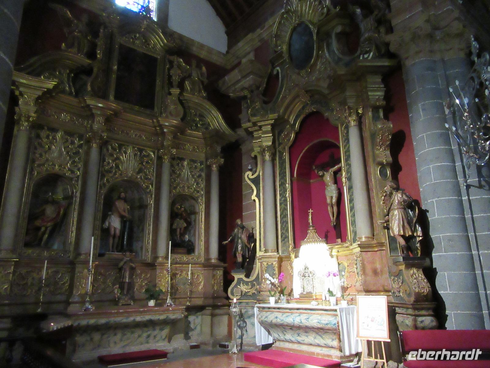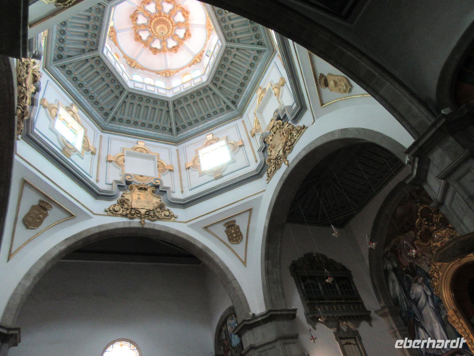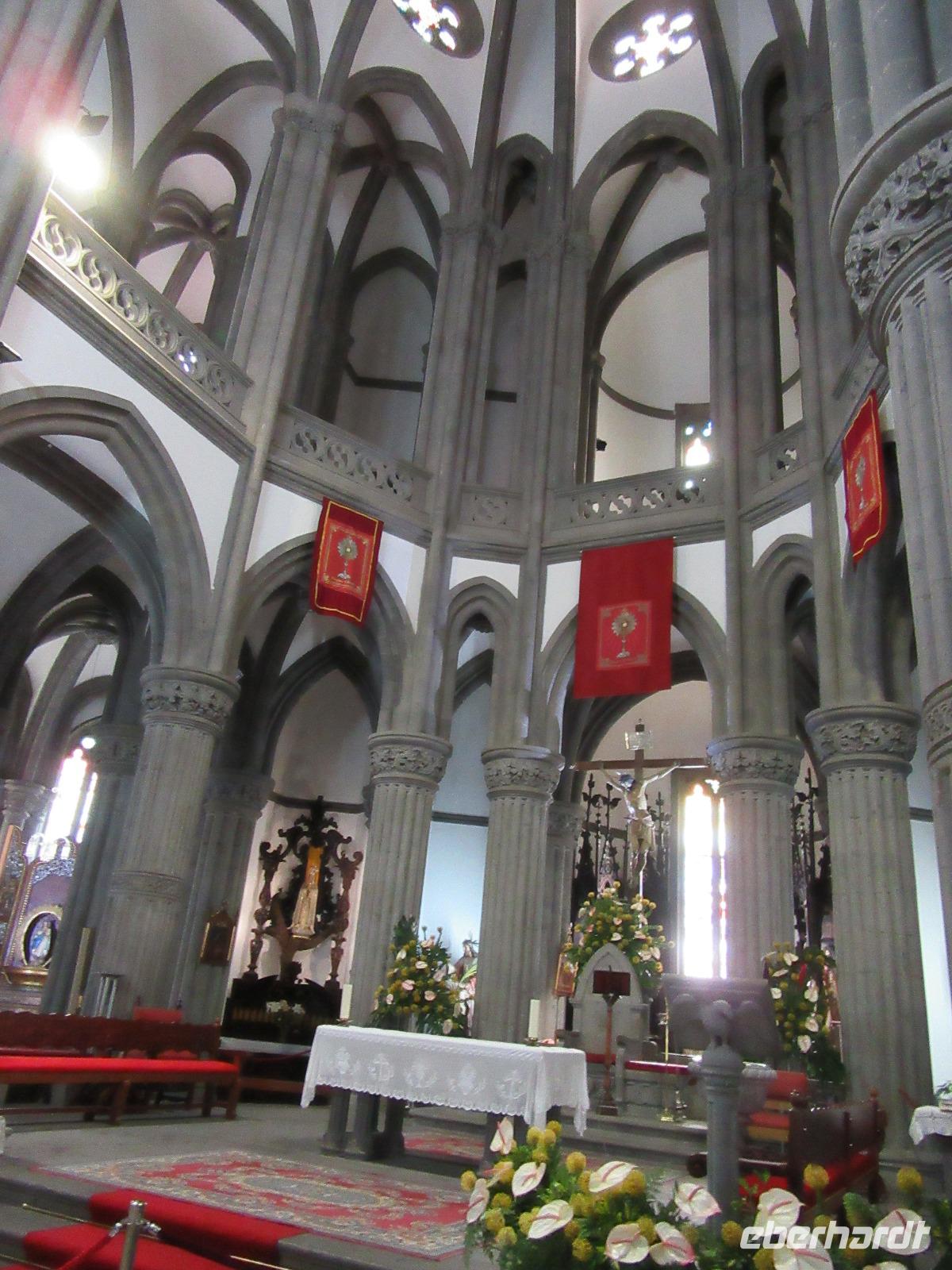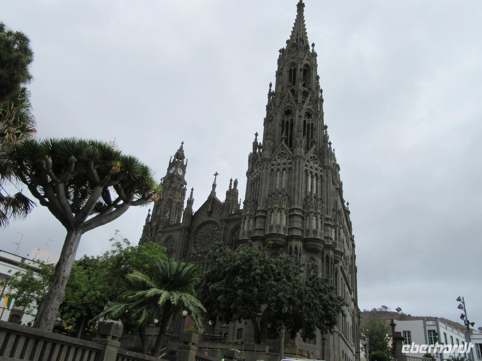 Dann fuhren wir weiter nach Arucas, bekannt für die hübsche Kirche San Juan im neogotische Stil erbaut, der uns an die Sagrada Familia von Gaudí in Barcelona denken ließ. Da gab es auch eine spektakuläre Christusstatue aus Holz, sowie ein paar Altäre für die Prozessionen.
