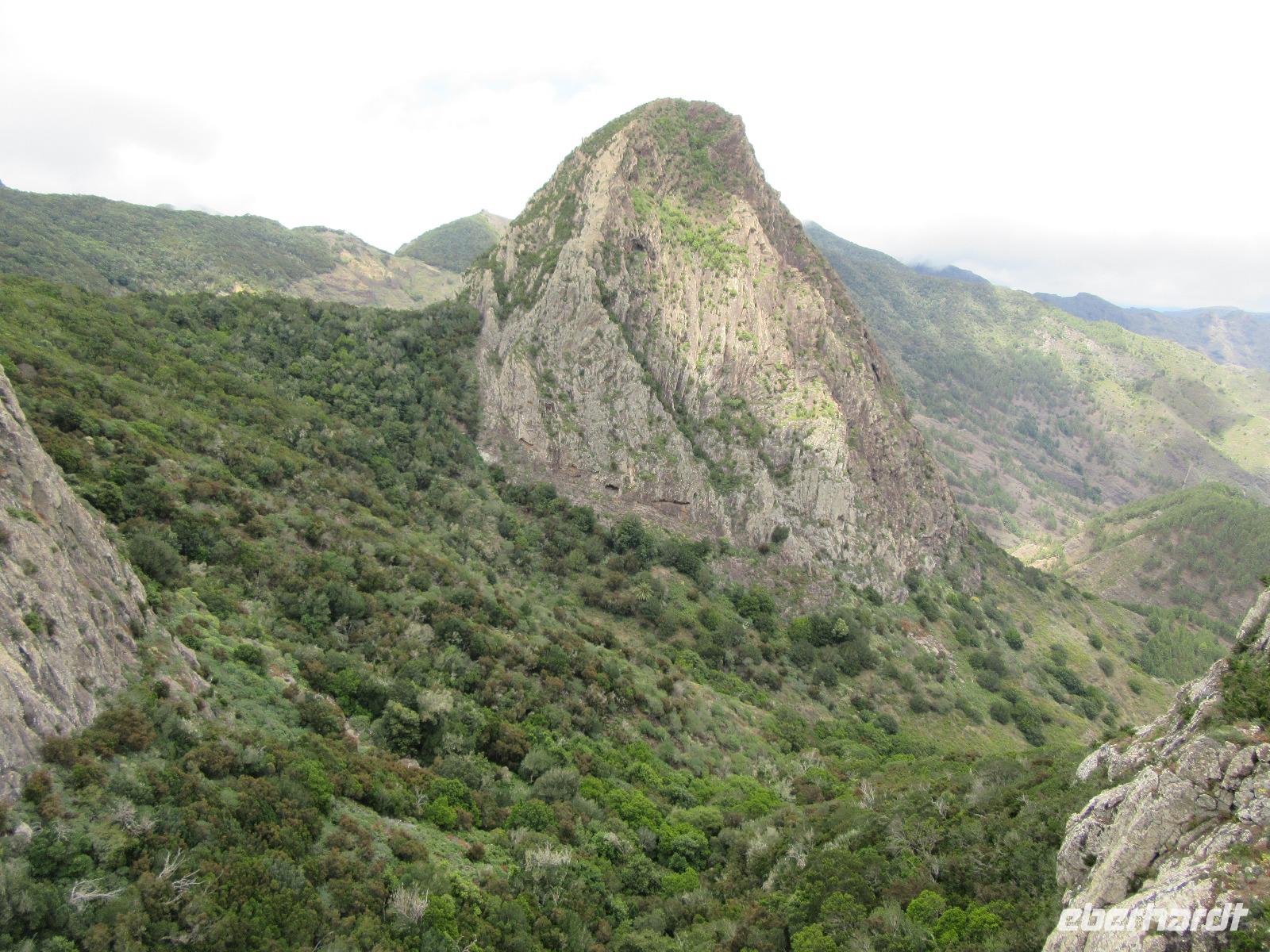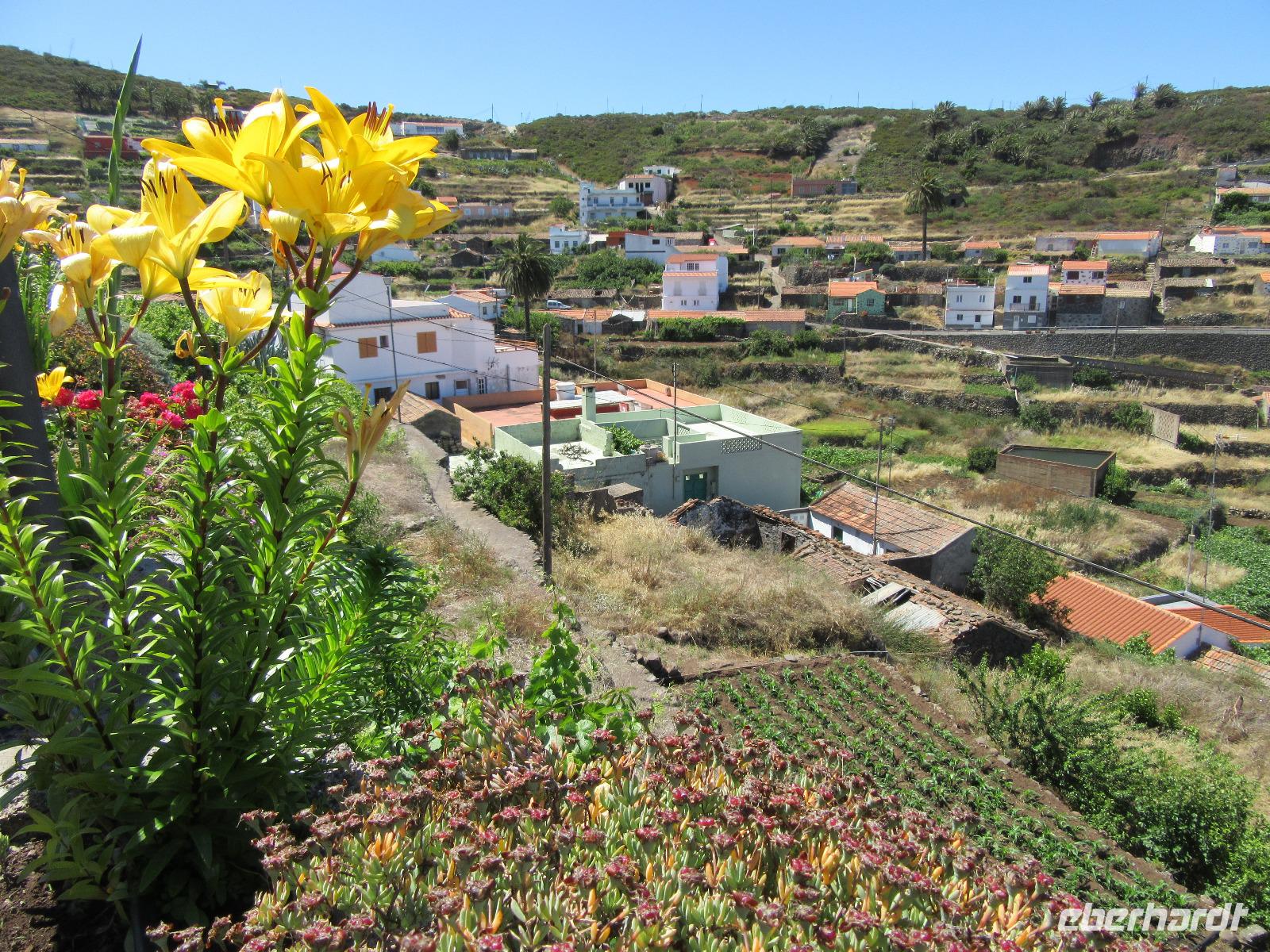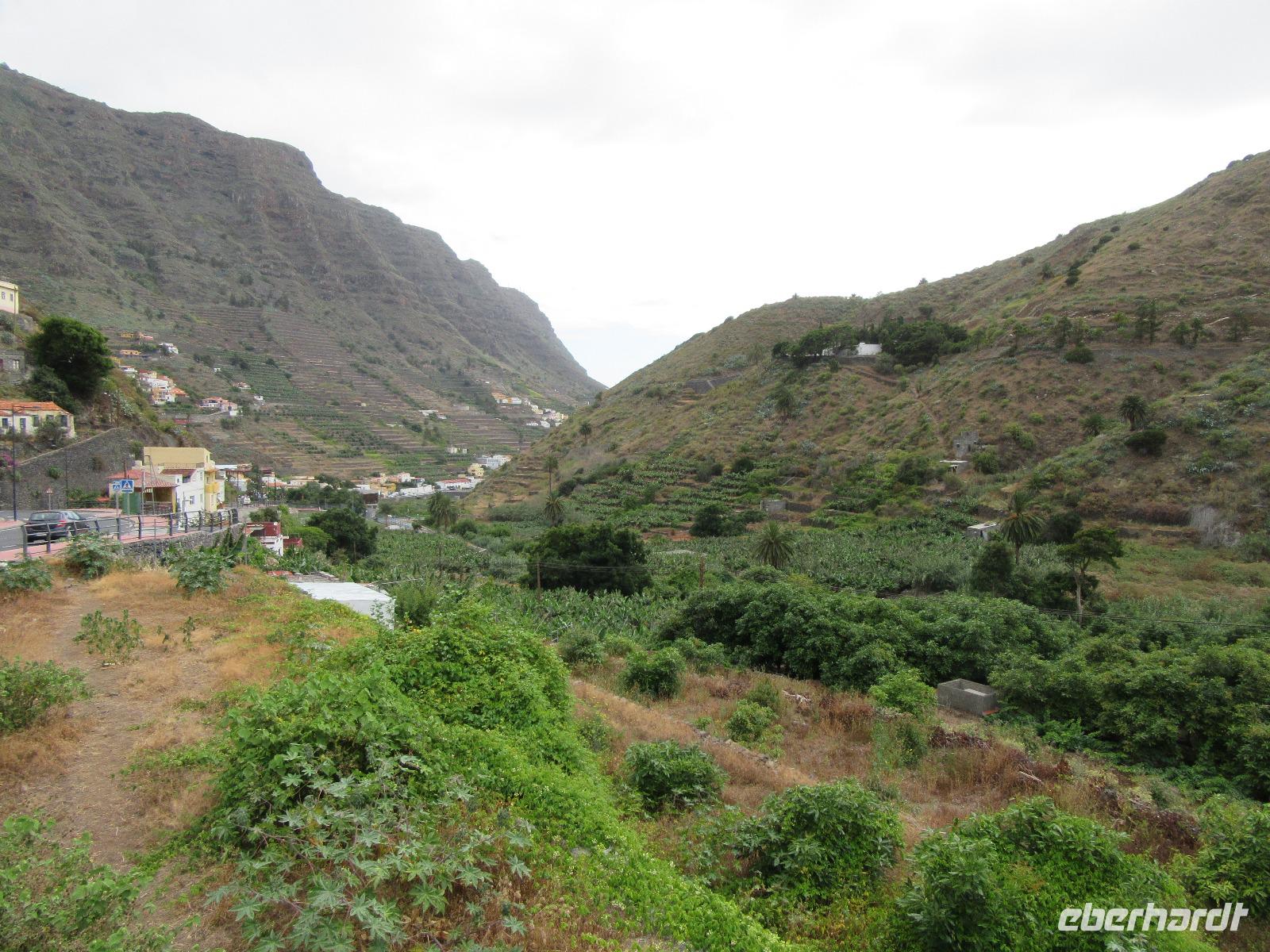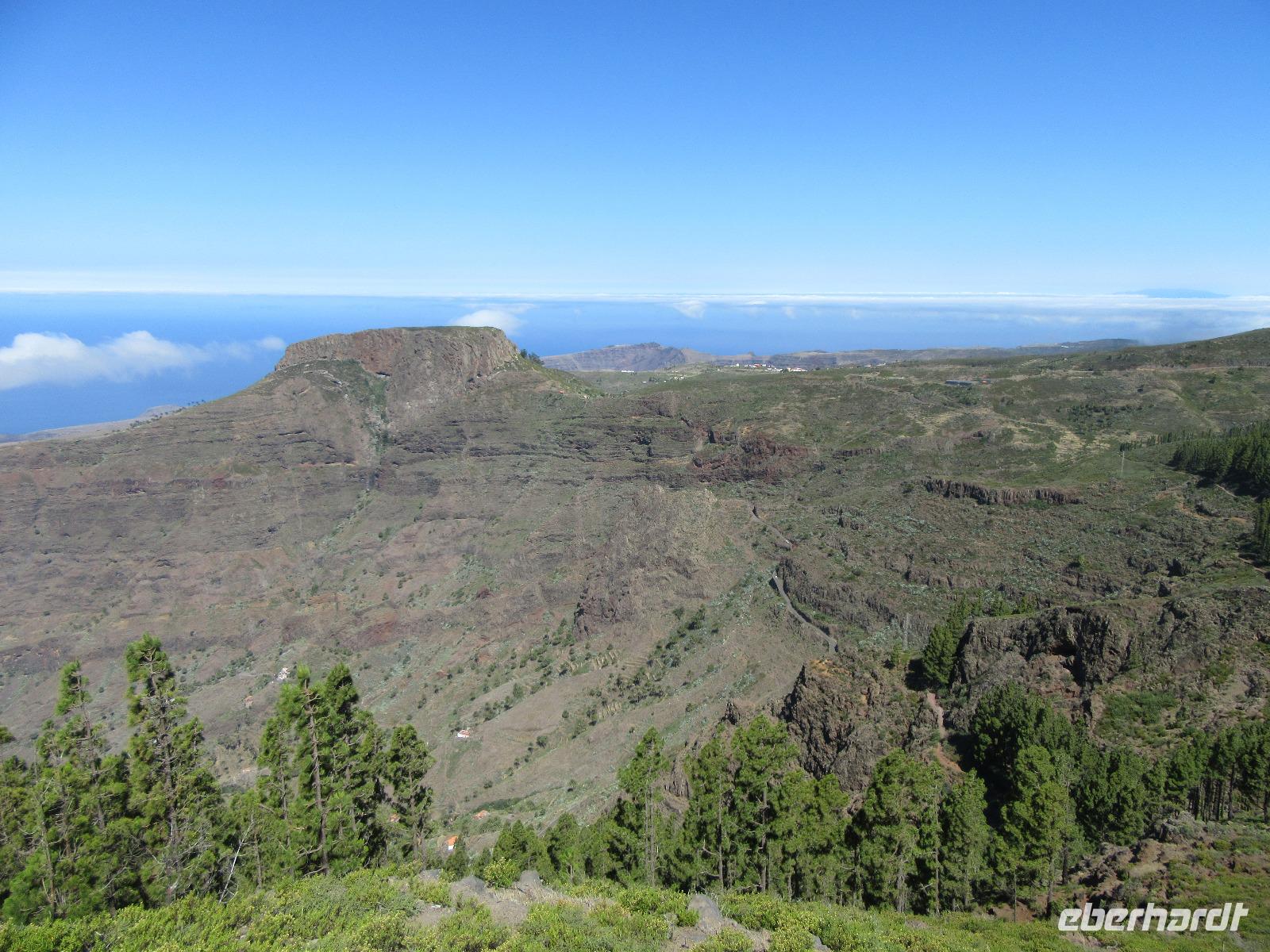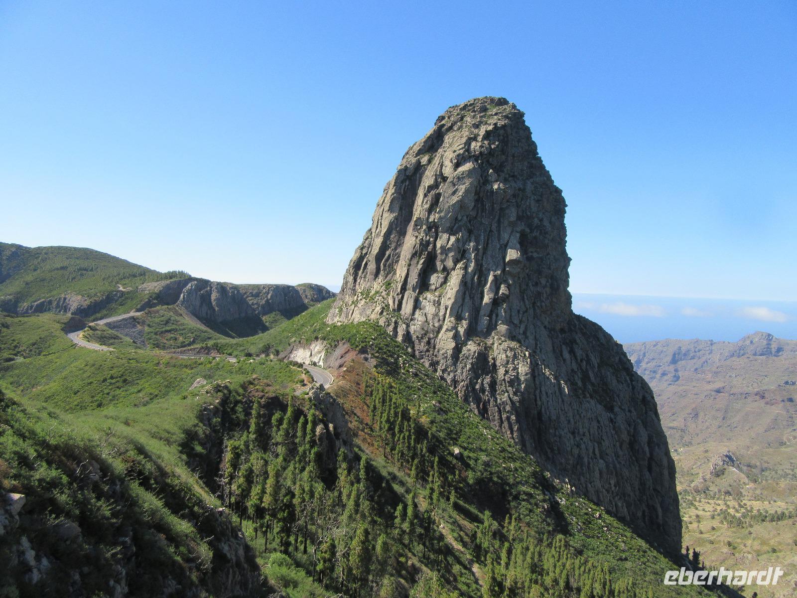 Wir fuhren bergauf und sahen die verschiedenen Schluchten (auf Spanisch Barrancos). Unser erster Stopp war an dem Aussichtspunkt Igualero, wo die San Francisco Kapelle sich befindet und das Denkmal zum Silbo Canario, der Pfeifsprache, welche zum Weltkulturerbe bei der UNESCO erklärt wurde. Von diesem Punkt bekamen wir schöne Ausblicke auf das Meer und konnten den Tafelberg sowie die Inseln El Hierro ganz klar sehen.