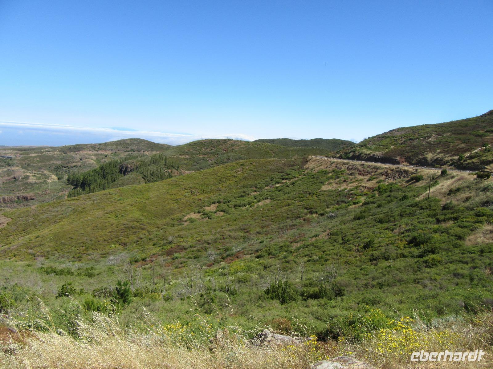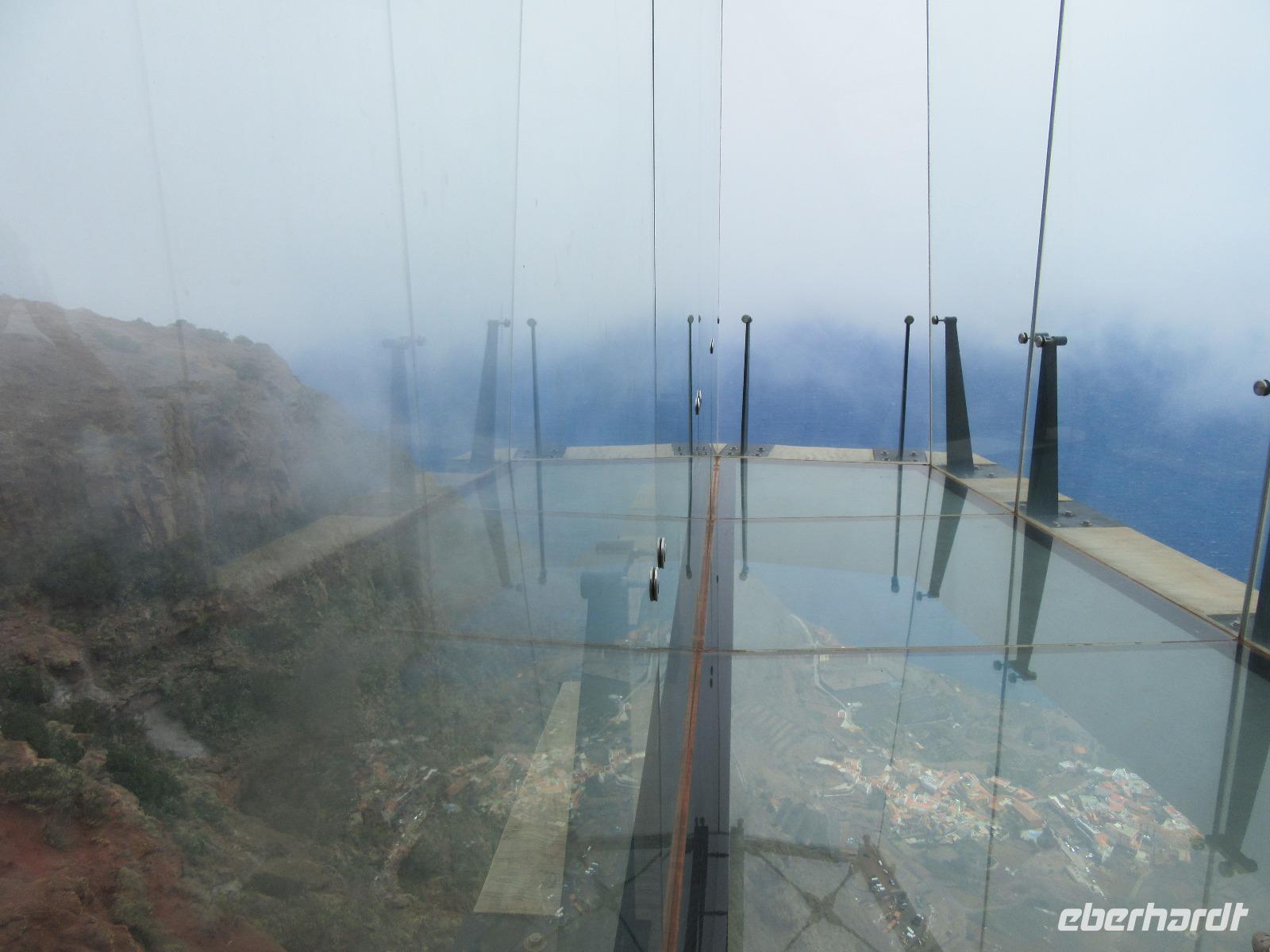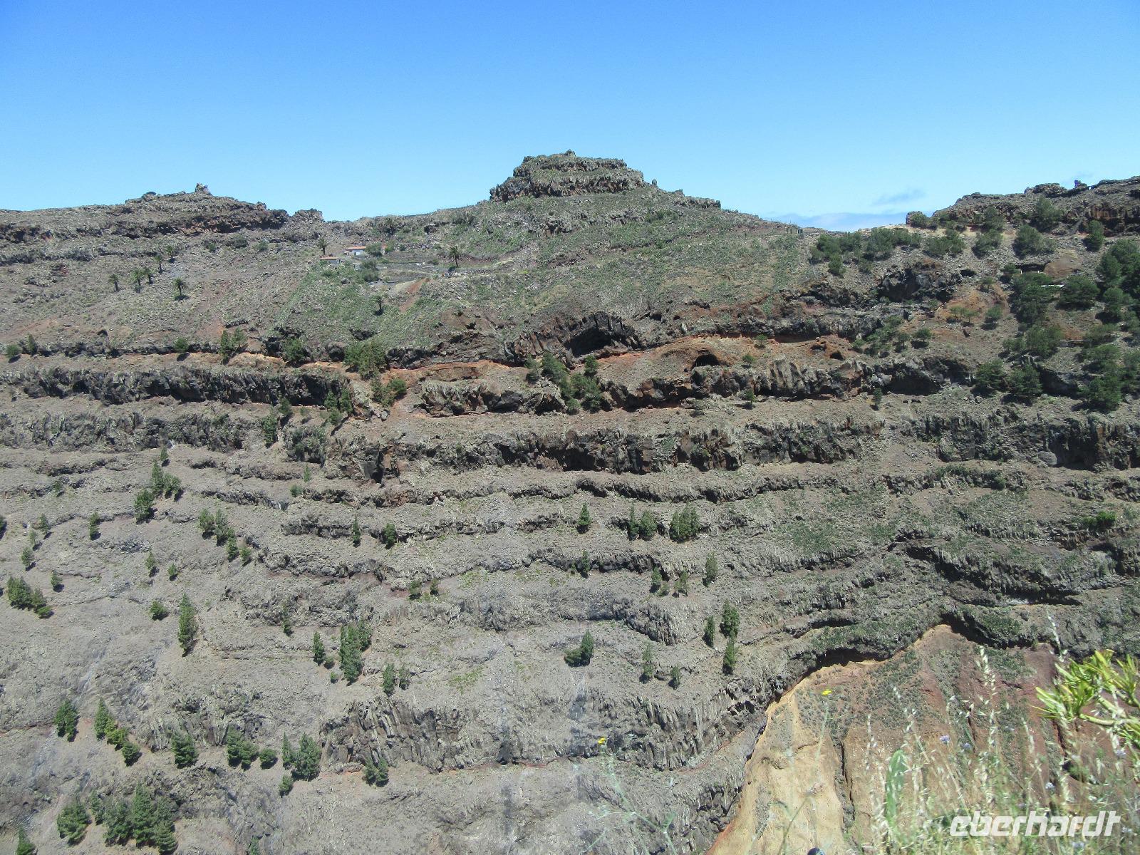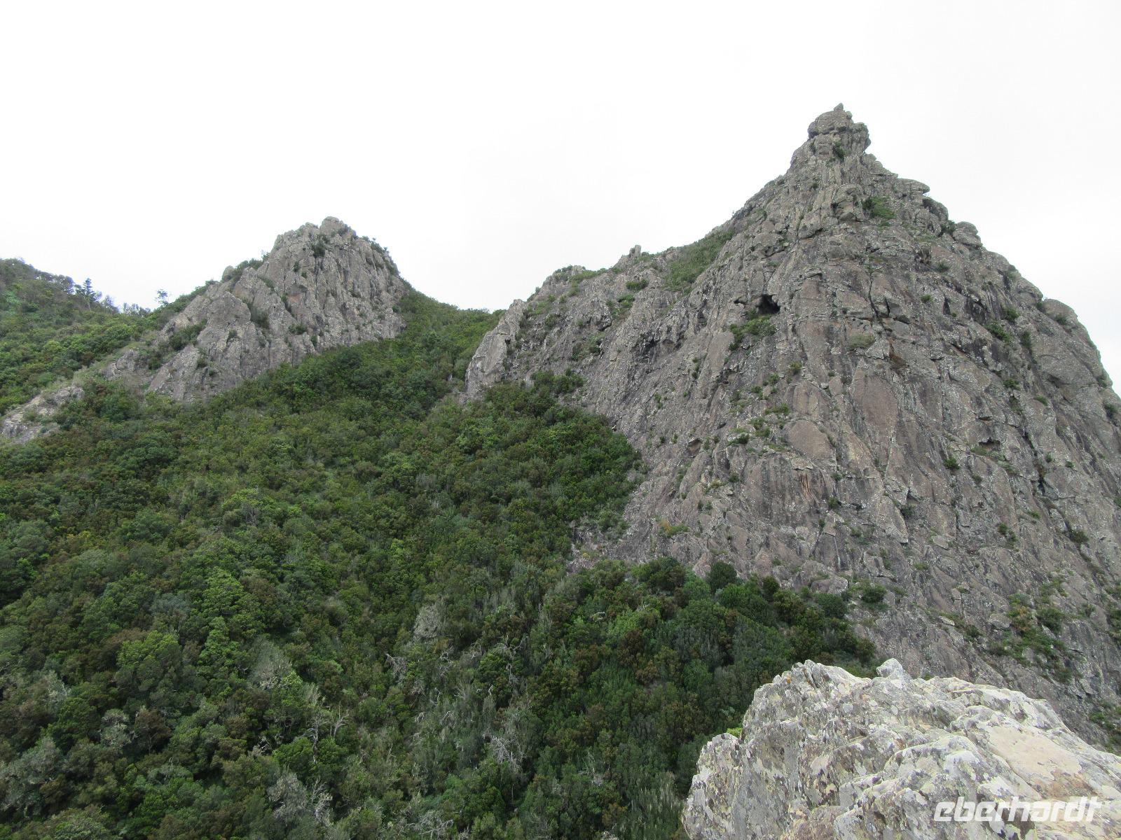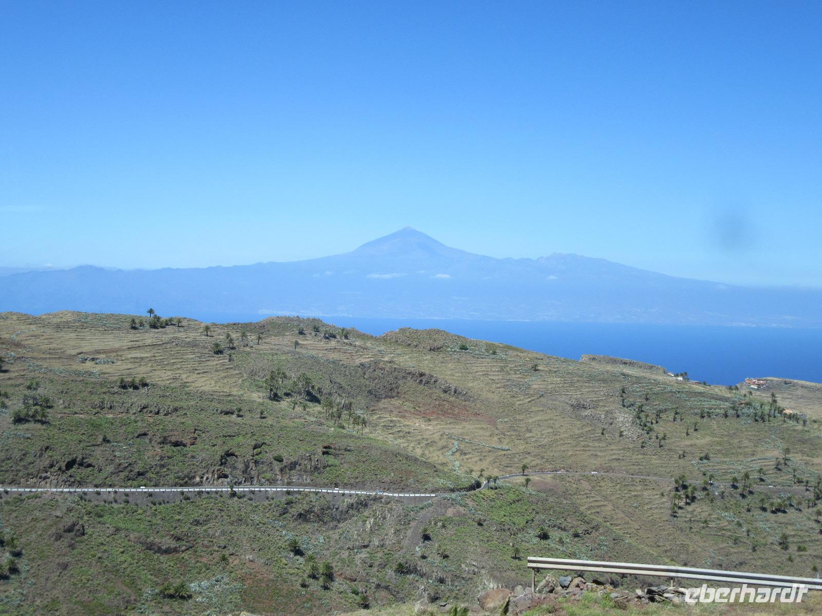Wir fuhren bergauf und sahen die verschiedenen Schluchten (auf Spanisch Barrancos). Unser erster Stopp war an dem Aussichtspunkt Igualero, wo die San Francisco Kapelle sich befindet und das Denkmal zum Silbo Canario, der Pfeifsprache, welche zum Weltkulturerbe bei der UNESCO erklärt wurde. Von diesem Punkt bekamen wir schöne Ausblicke auf das Meer und konnten den Tafelberg sowie die Inseln El Hierro ganz klar sehen.