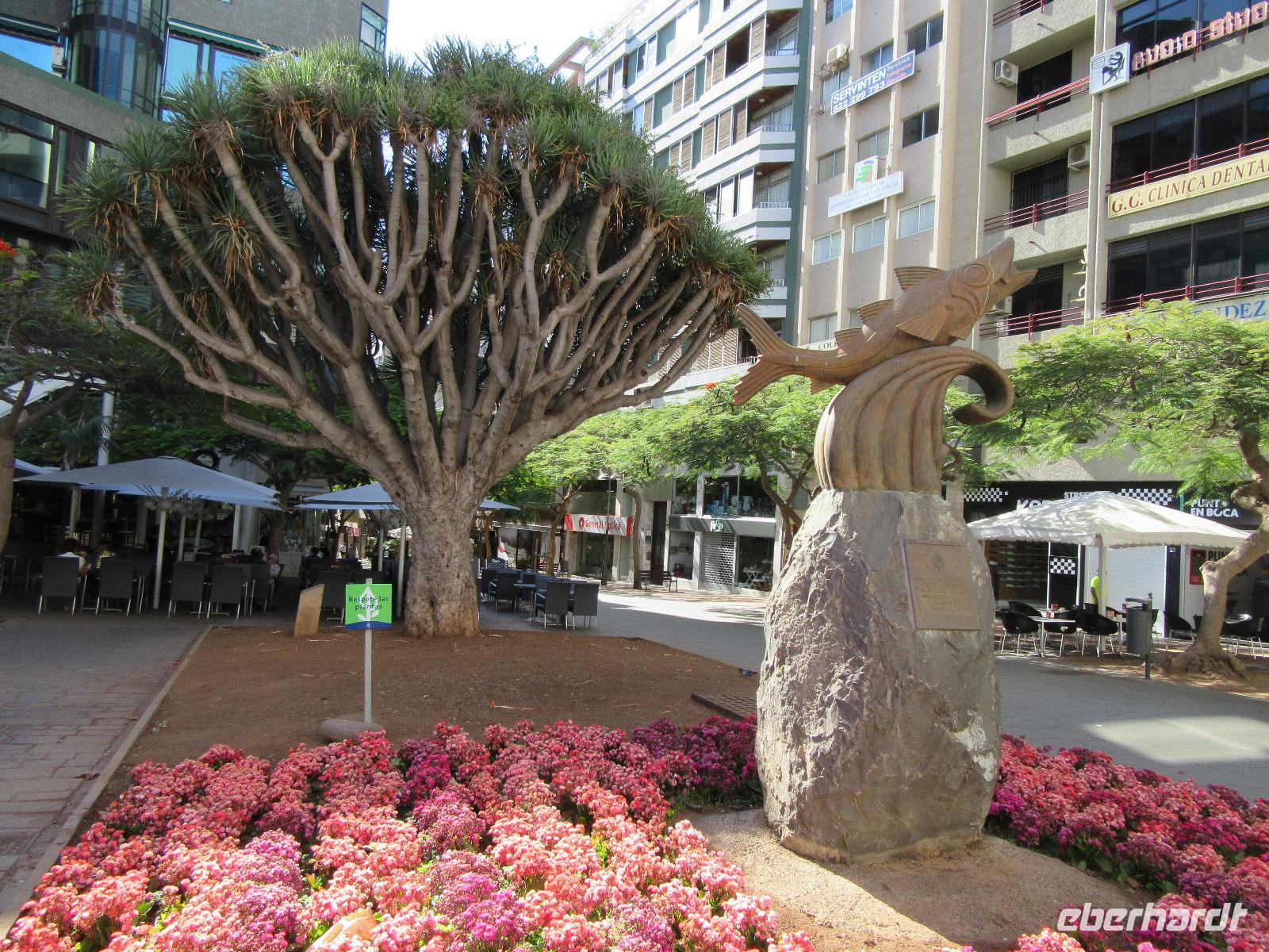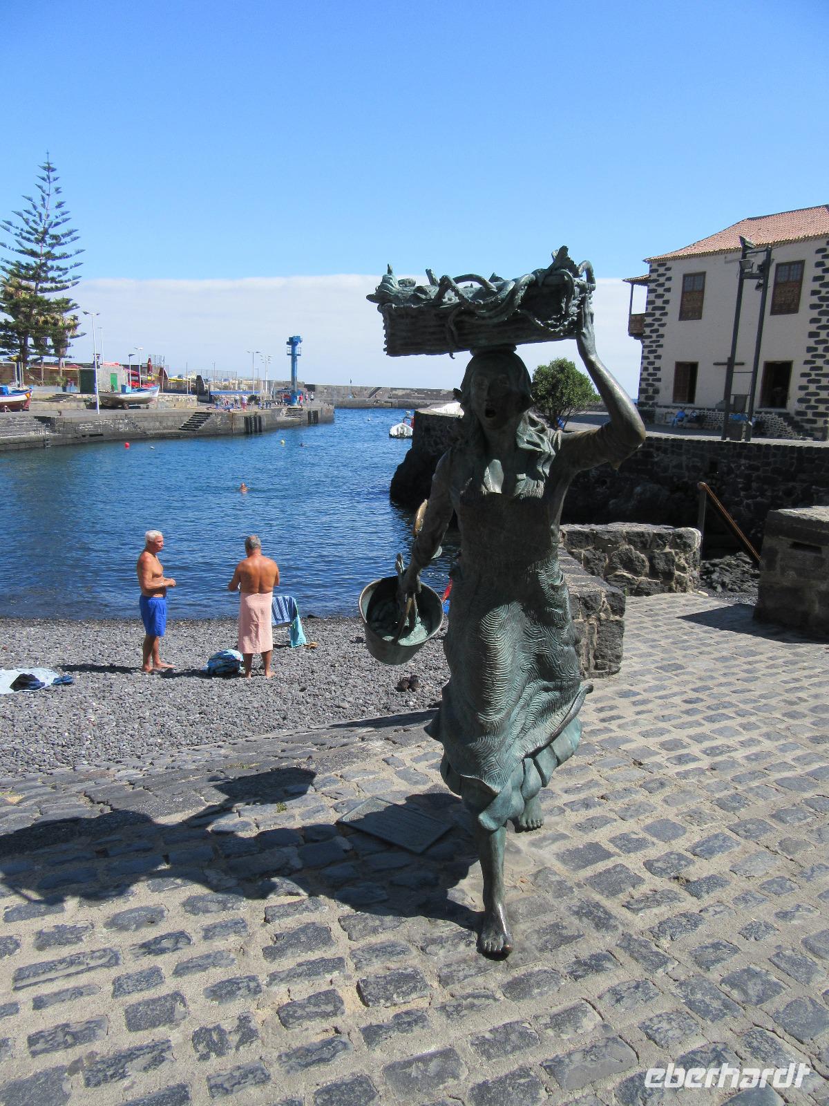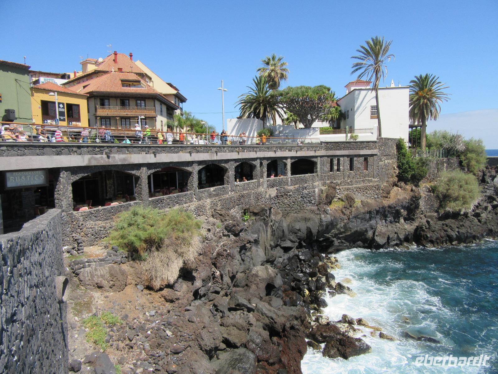 Dann fuhren wir weiter Richtung Nordwest zu einem anderen Urlaubsort der Insel, Puerto de la Cruz. Dort befindet sich der bekannte Loro Park, den wir aber nicht besucht haben. Sondern für uns ging es in das historische Zentrum. Vom Plaza del Charco liefen wir zum Fischerhafen, wo wir das Denkmal für die Fischerfrauen sahen, welche dort jeden Tag Fisch verkaufen. Entlang der verschiedenen typischen kanarischen Häuser mit den traditionellen Holzbalkons, lag die Promenade mit dem See auf einer Seite und die verschiedenen Geschäfte und Restaurants auf den andere Seite.