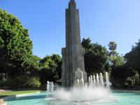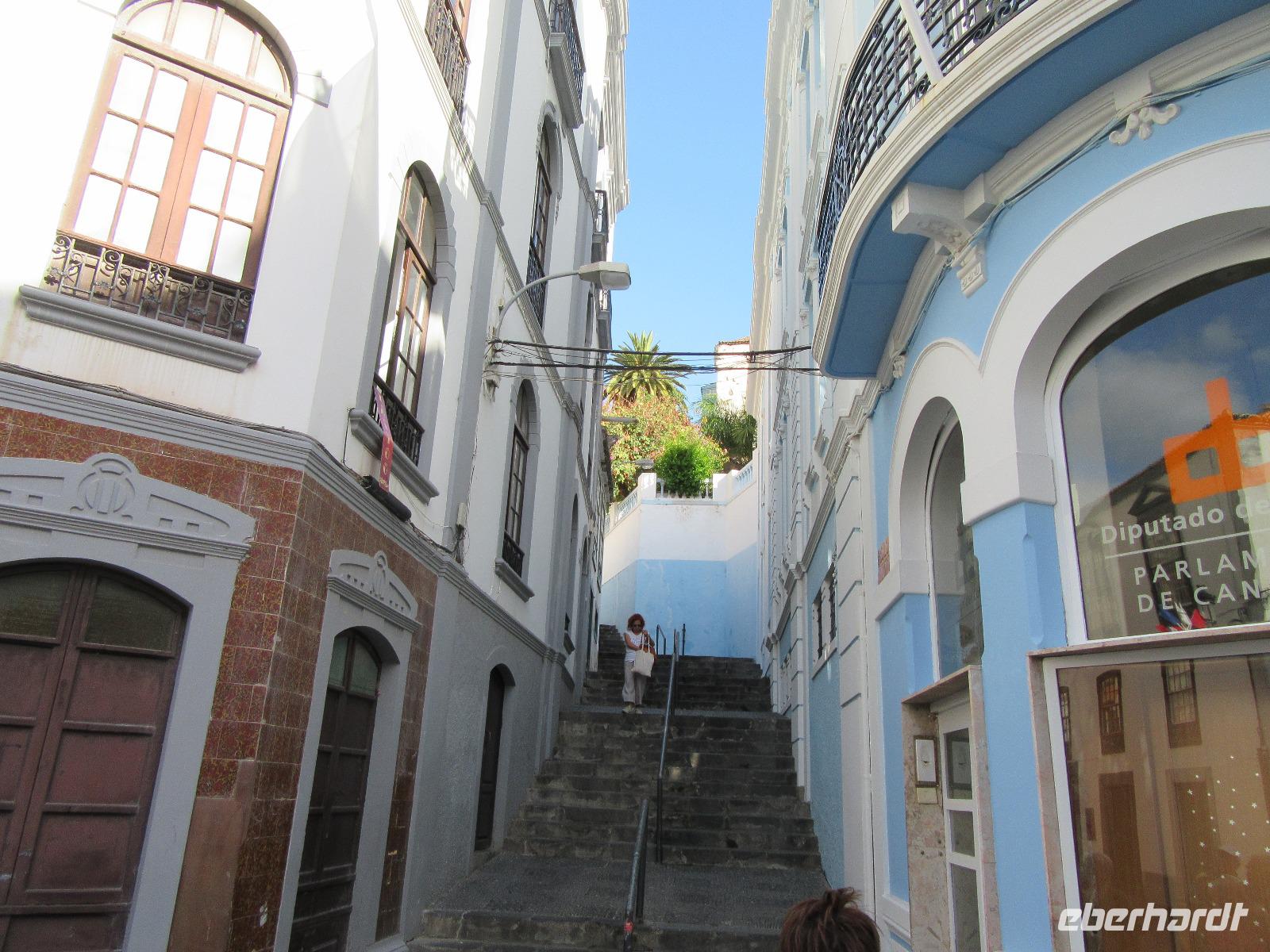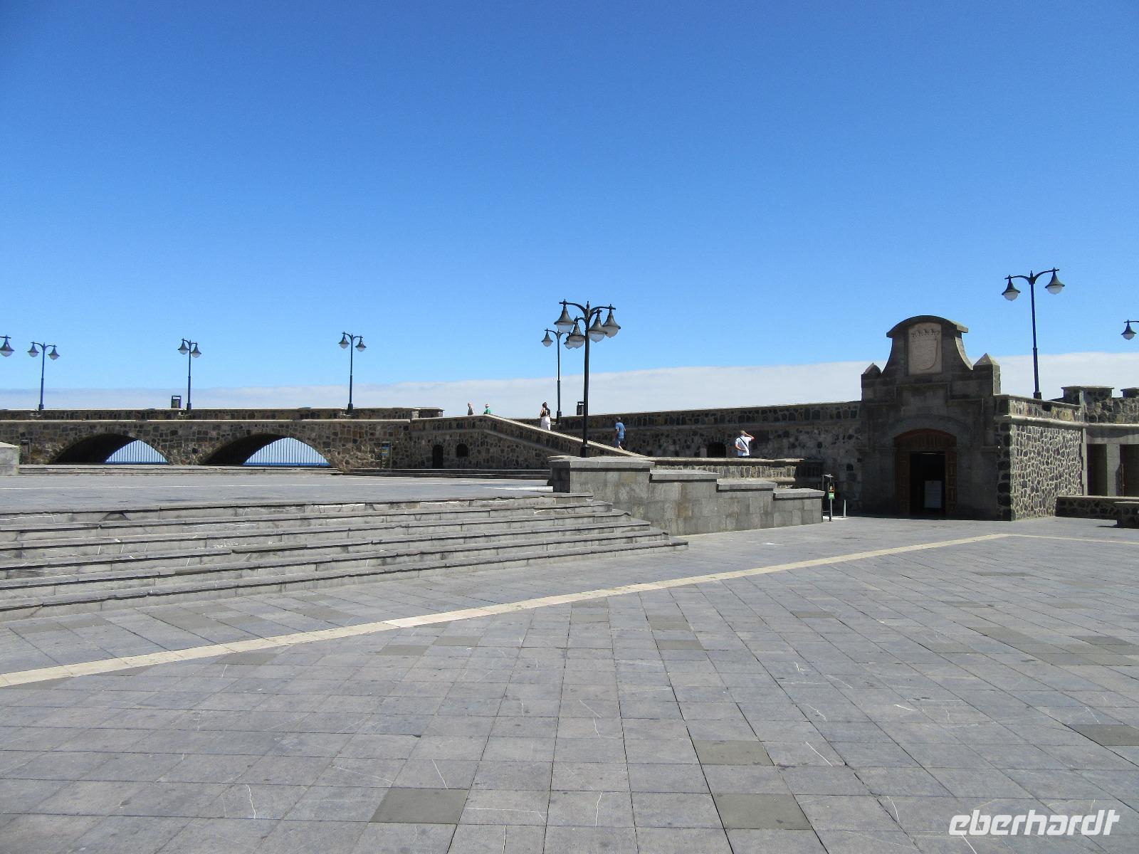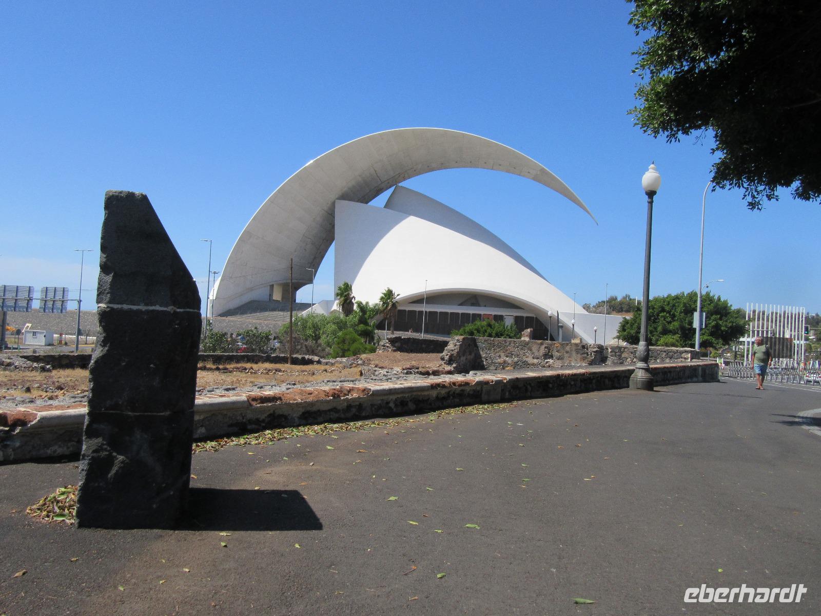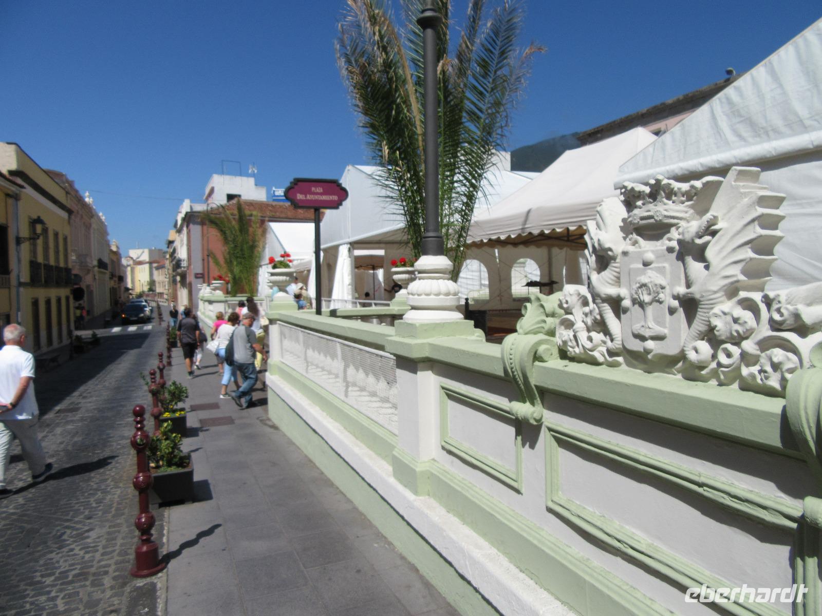 Dann gingen wir weiter, wobei wir am Museum und einem kleinen Markt vorbeikamen, bevor wir die Brücke über der Schlucht überquerten. Auf der anderen Seite sahen wir die Kirche und die verschiedenen Lokale, wo die Leute für den Karneval üben. Ein Stück weiter erreichten wir den Spanien-Platz mit dem See und das Denkmal der Gefallenen. Aufgrund eines Radtages an dieser Stelle, mussten wir zu Fuß zum Auditorium laufen und erhielten eine gutes Fotomotiv.
