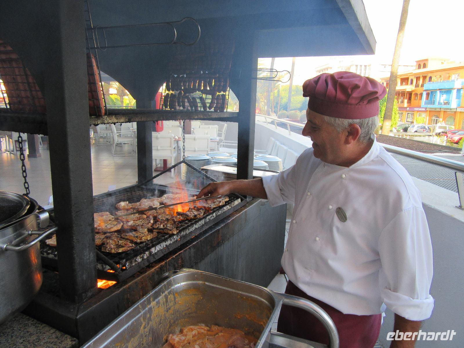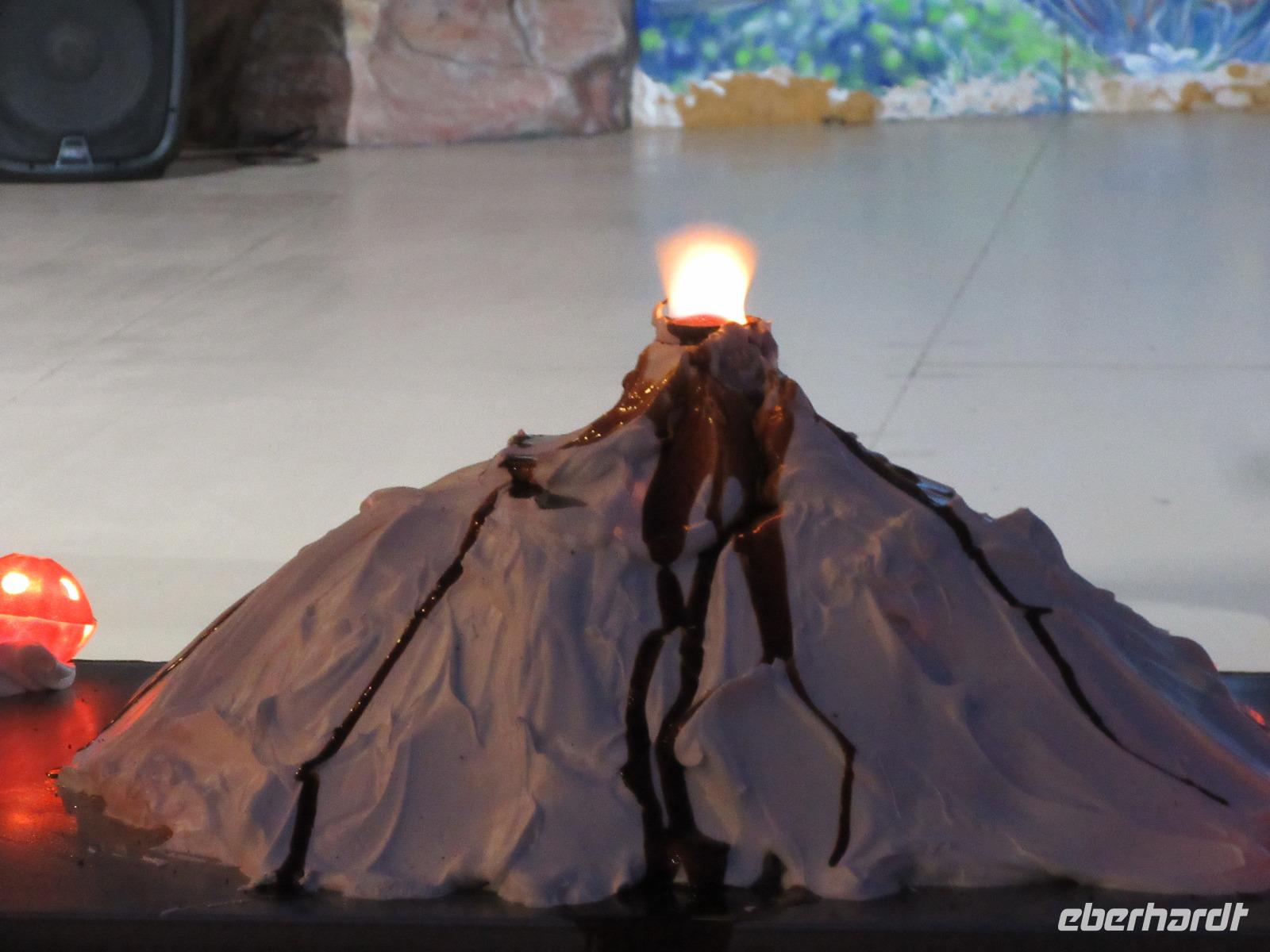 Zum Abendessen wartet auf uns ein schöner Grill an der Terrasse mit einer leckeren heißen Überraschung. Im Hintergrund erblickten wir den Vulkan.