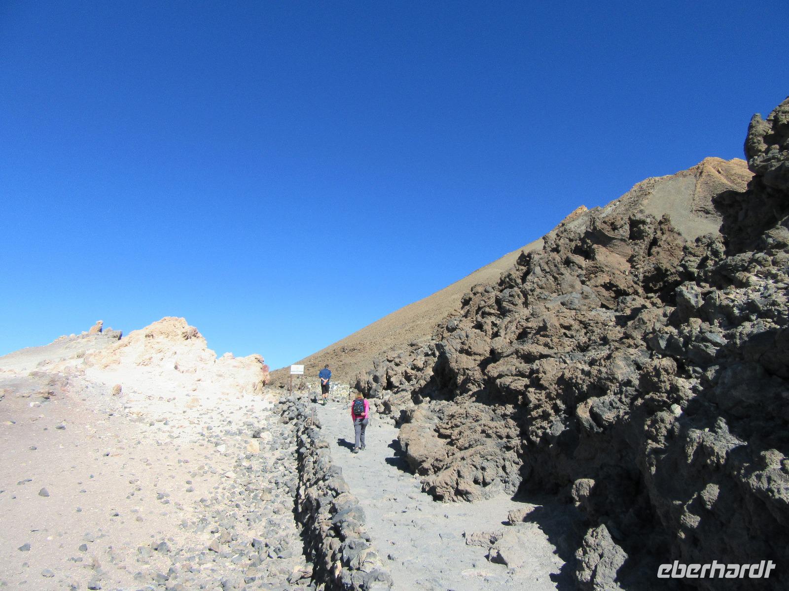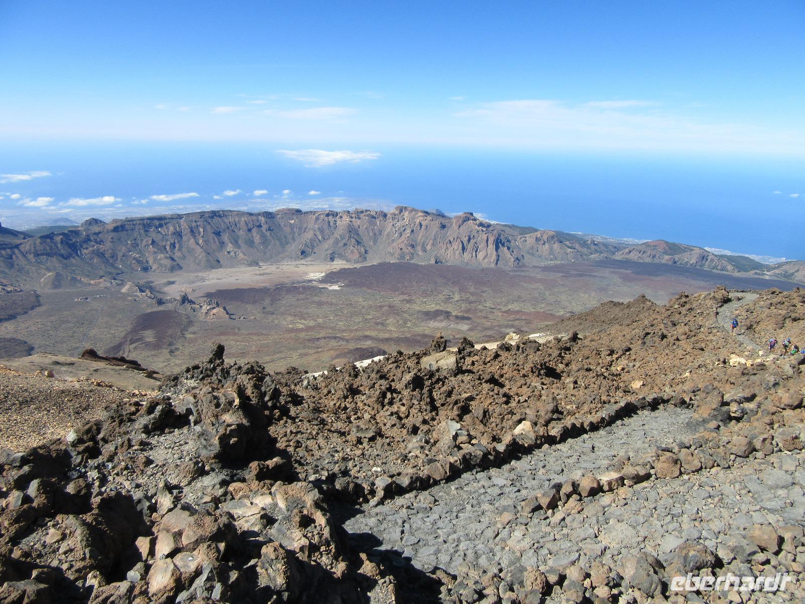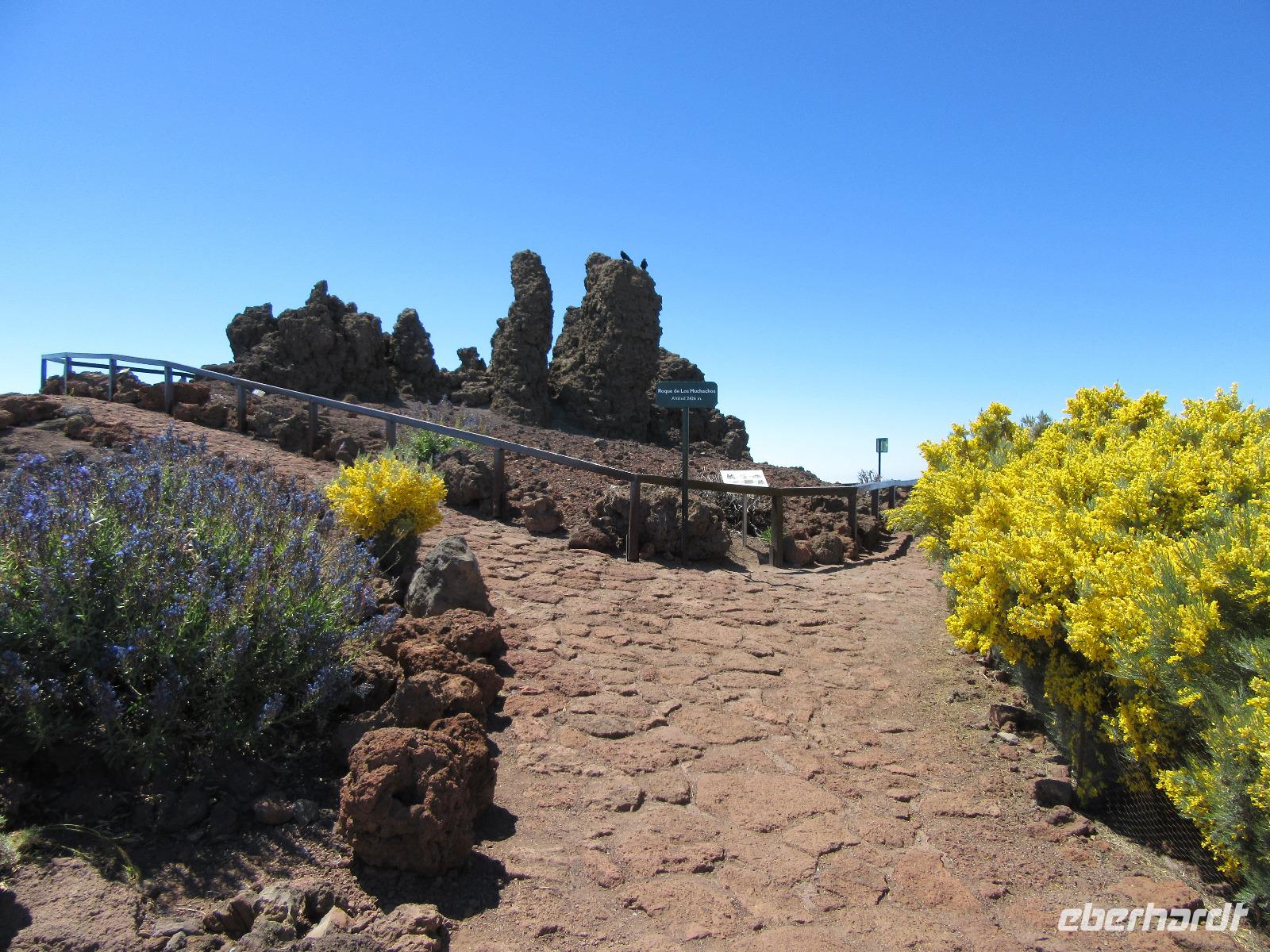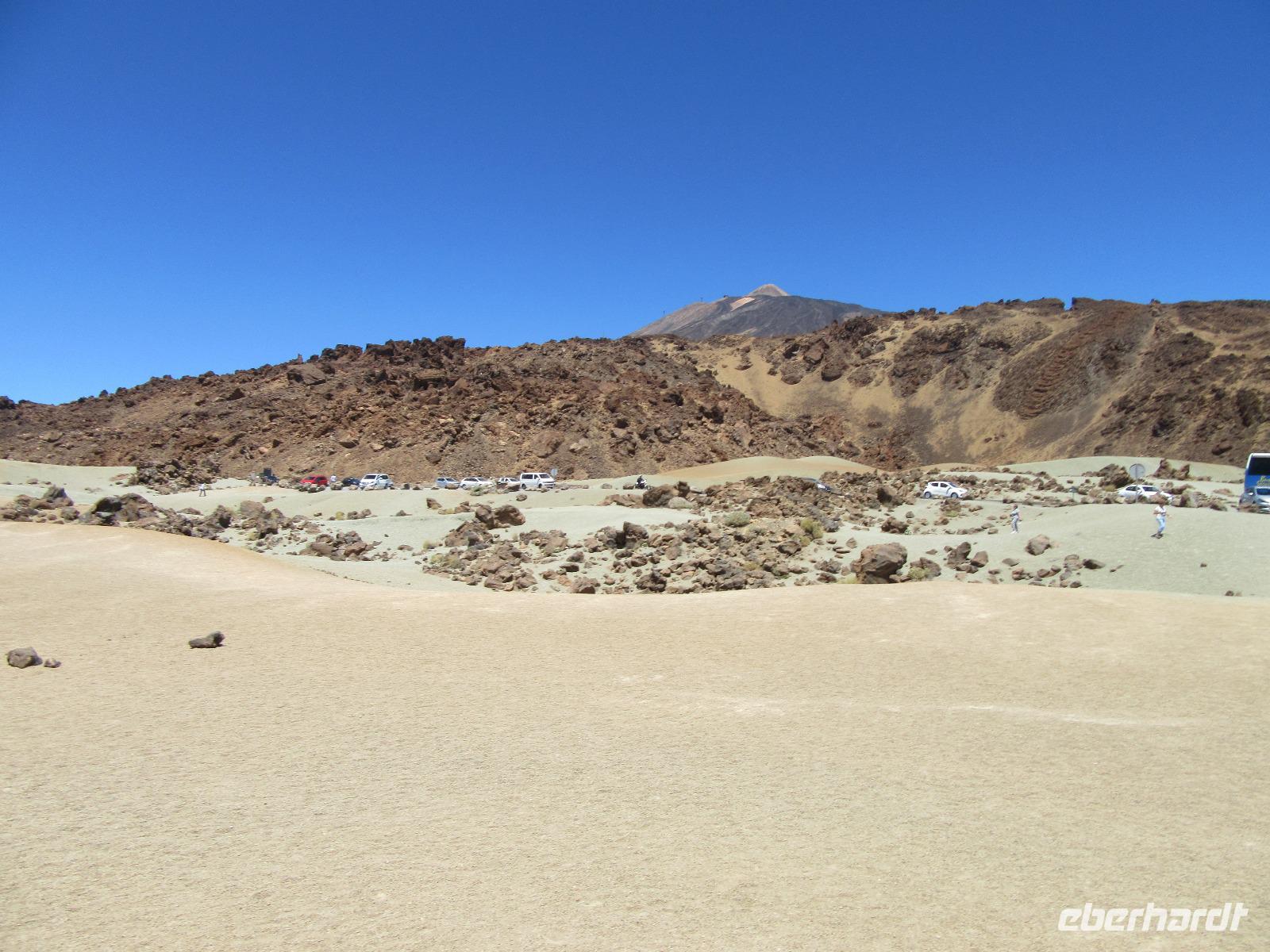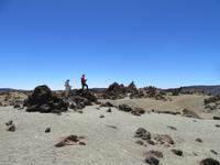 Auf diesem Weg sahen wir den berühmten Königin-Schuh aus Stein und die Roques de García gegenüber dem Parador und erreichten wenig später die Seilbahn. In nur 8 Minuten ging es von einer Höhe von 2300 Meter auf 3545 Meter Höhe. Oben hatten die Möglichkeit die verschiedenen Krater zu sehen und sahen die Strecke des Blue Trail, auf dem jedes Jahr eine Vielzahl von Läufern die ganze Insel von Los Cristianos über El Teide nach Puerto de la Cruz kreuzen.