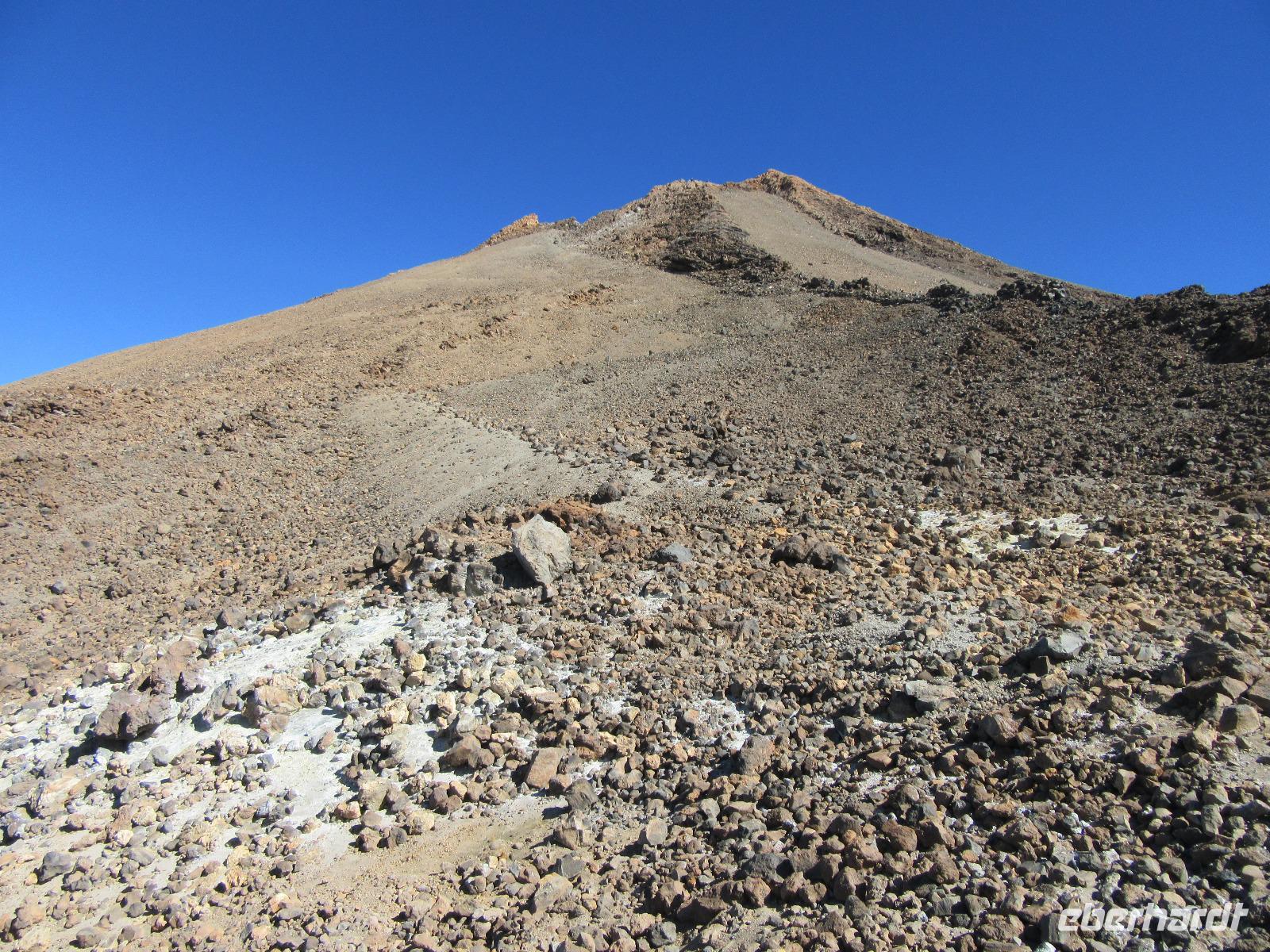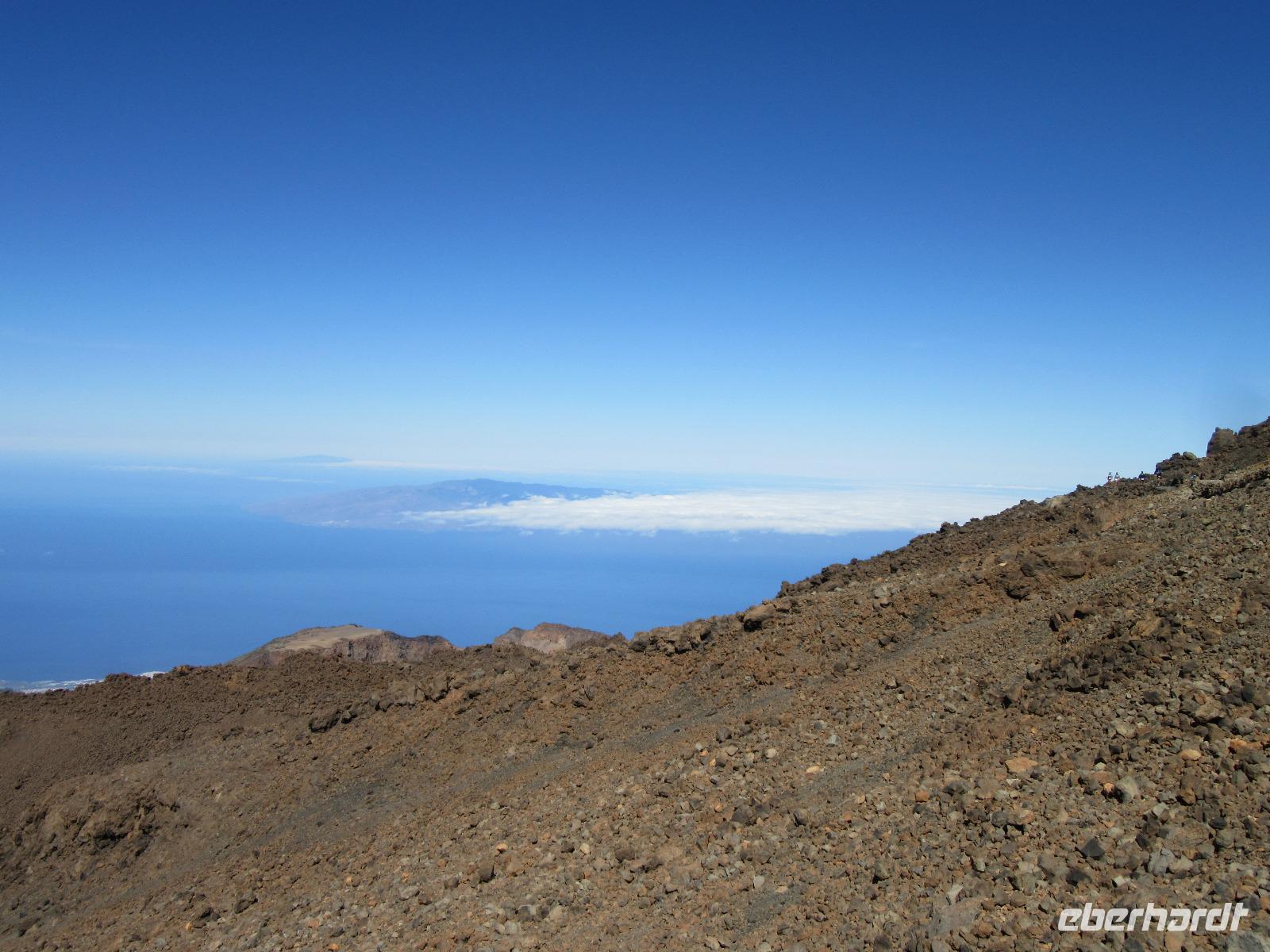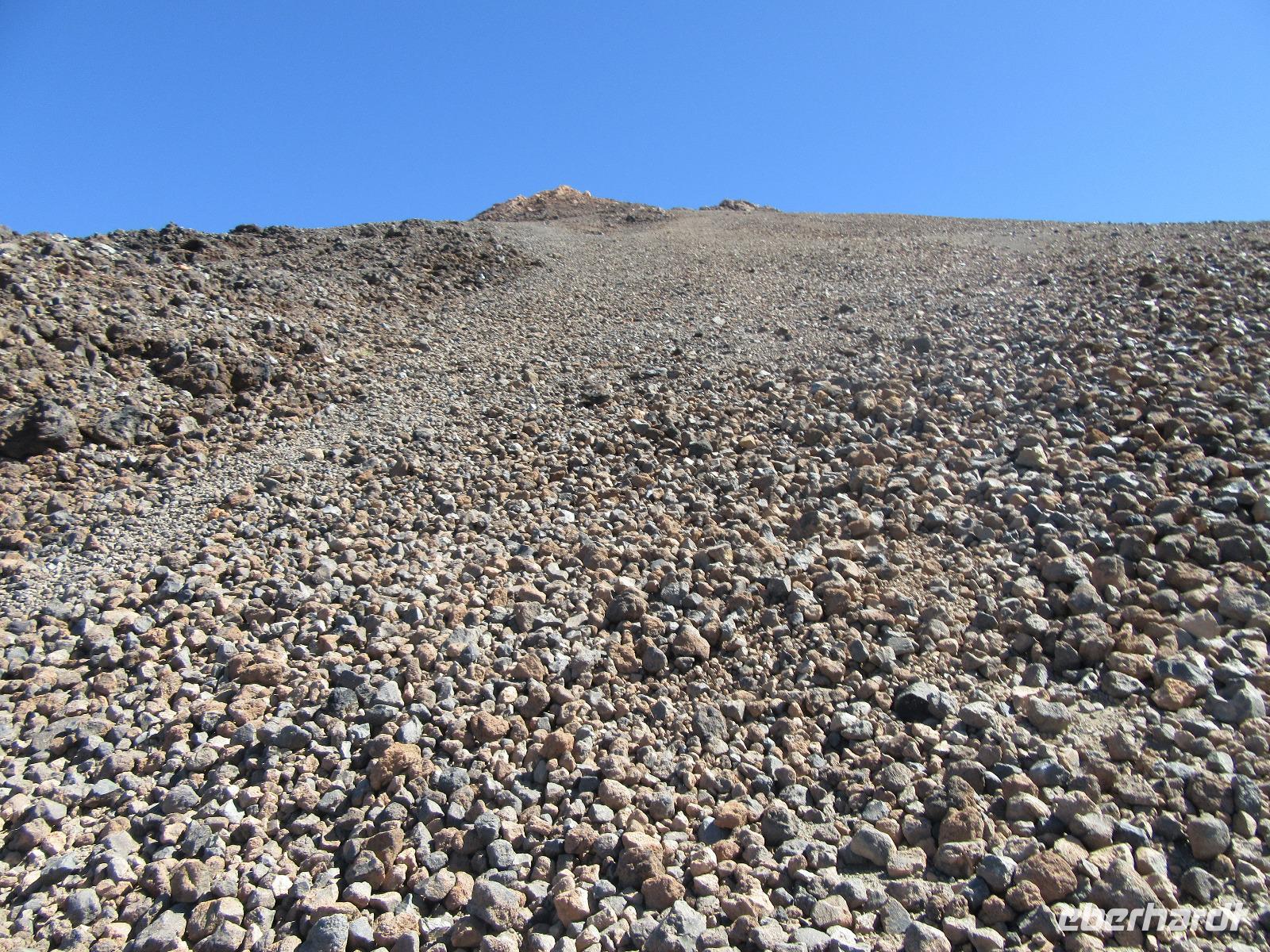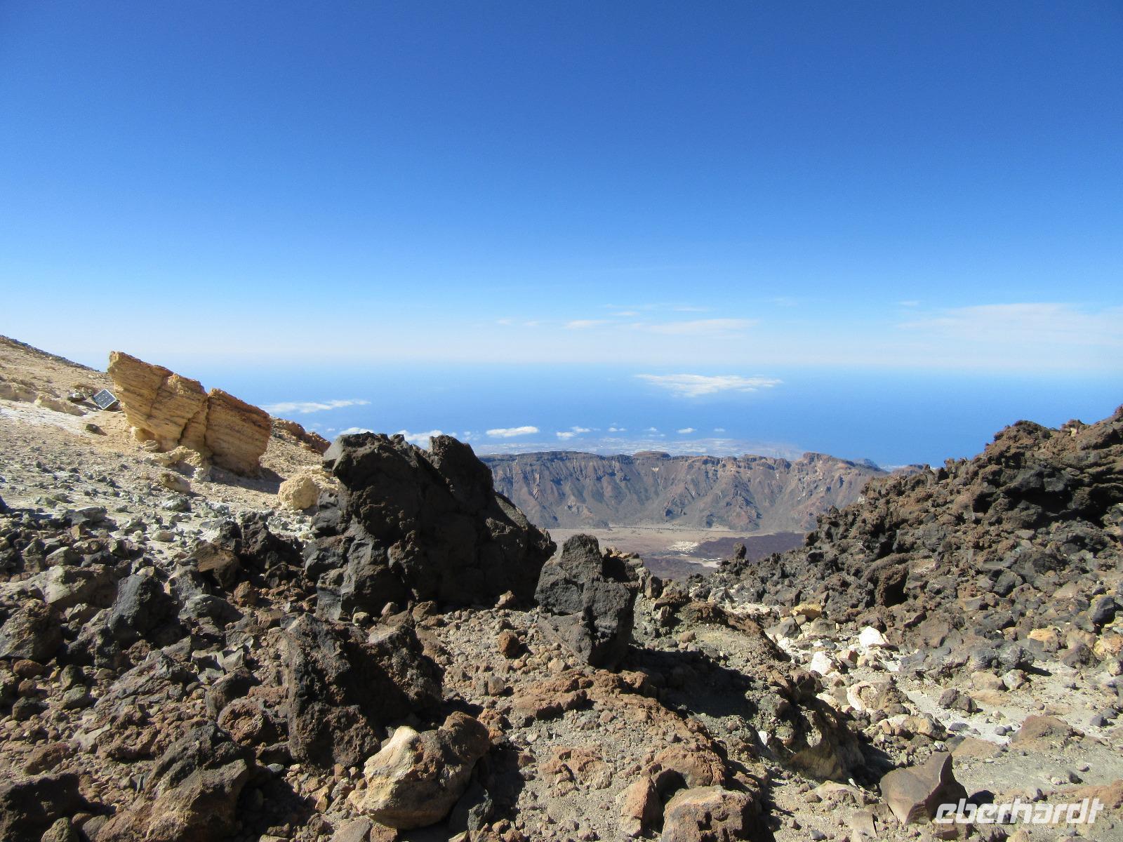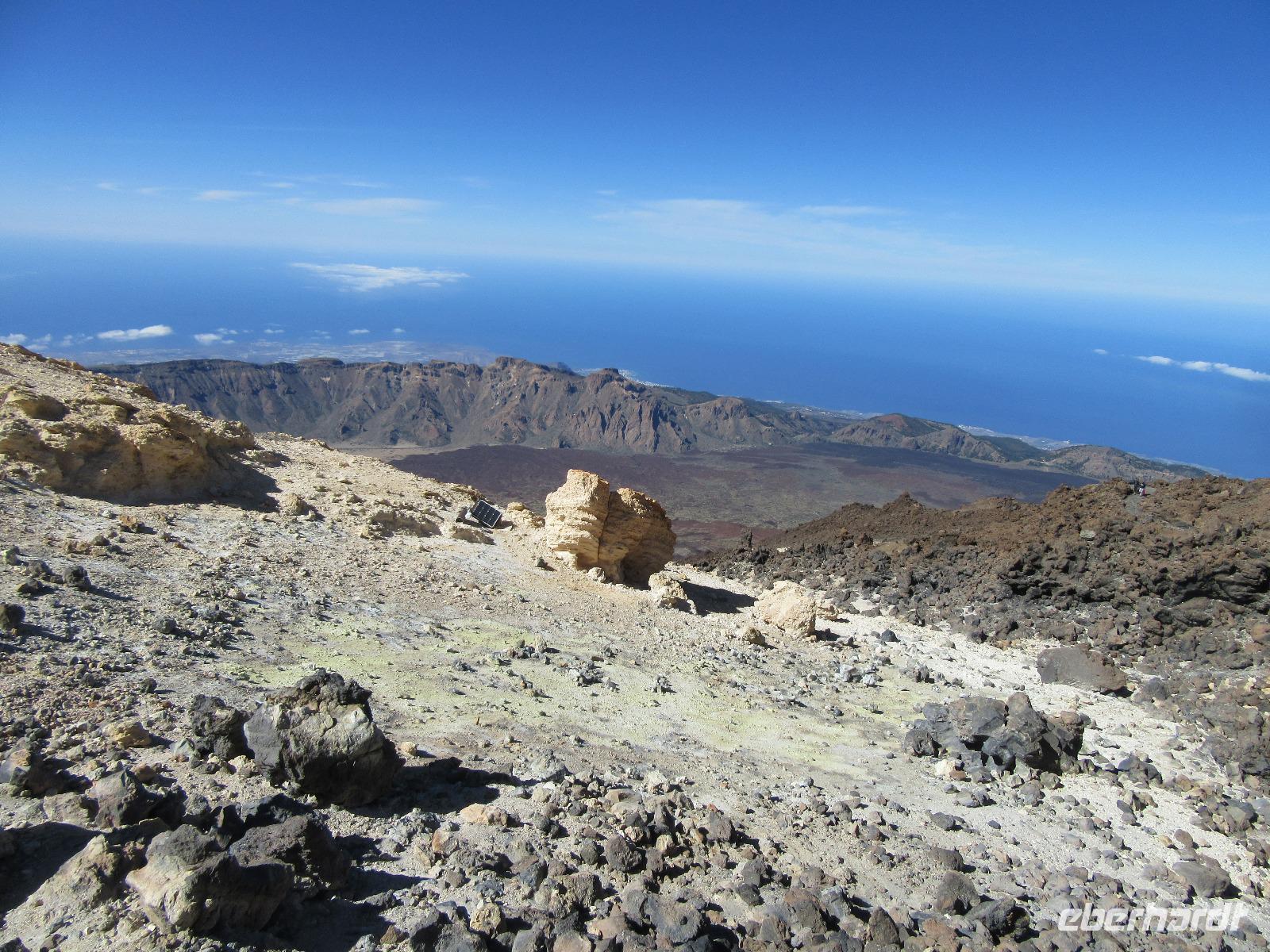 Auf diesem Weg sahen wir den berühmten Königin-Schuh aus Stein und die Roques de García gegenüber dem Parador und erreichten wenig später die Seilbahn. In nur 8 Minuten ging es von einer Höhe von 2300 Meter auf 3545 Meter Höhe. Oben hatten die Möglichkeit die verschiedenen Krater zu sehen und sahen die Strecke des Blue Trail, auf dem jedes Jahr eine Vielzahl von Läufern die ganze Insel von Los Cristianos über El Teide nach Puerto de la Cruz kreuzen.