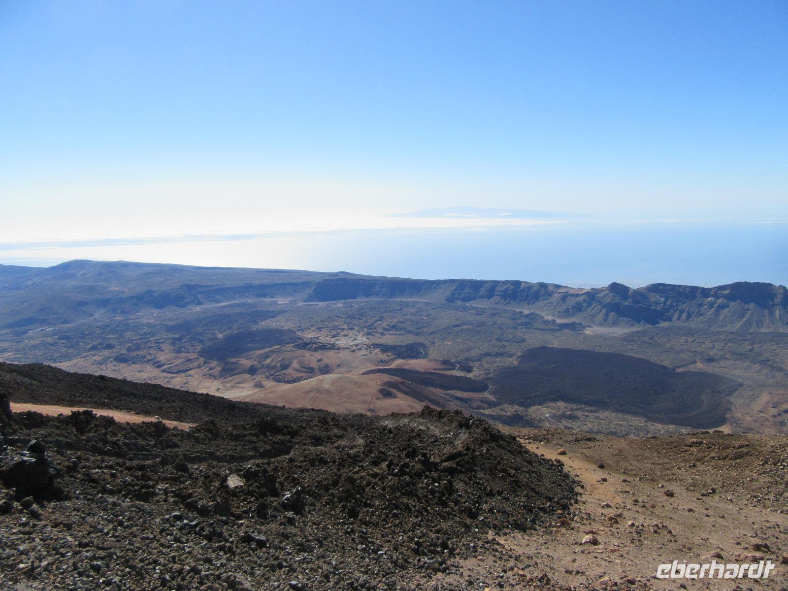 Dann fuhren wir ein Stück weiter und erreichten den Nationalpark El Teide und kamen langsam in La Caldera (Kessel) an. Außerdem war der Tag ganz klar und wir konnten die Inseln La Gomera, El Hierro und La Palma sehen, sowie etwas später auf der anderen Seite des Kessels die Inseln Gran Canarias. In dem Nationalpark haben wir ein spektakuläres Panorama aus Lavastein in verschiedenen Farben und die einheimische Vegetation gesehen.