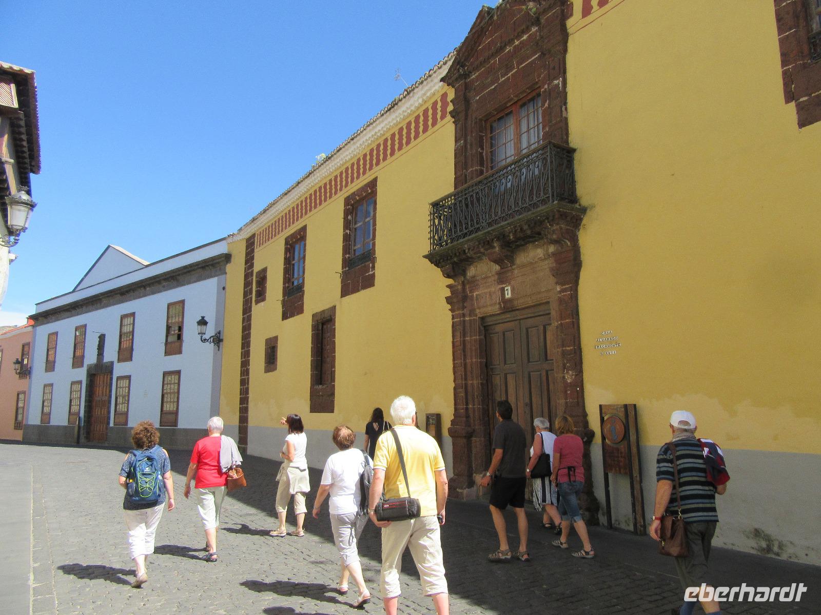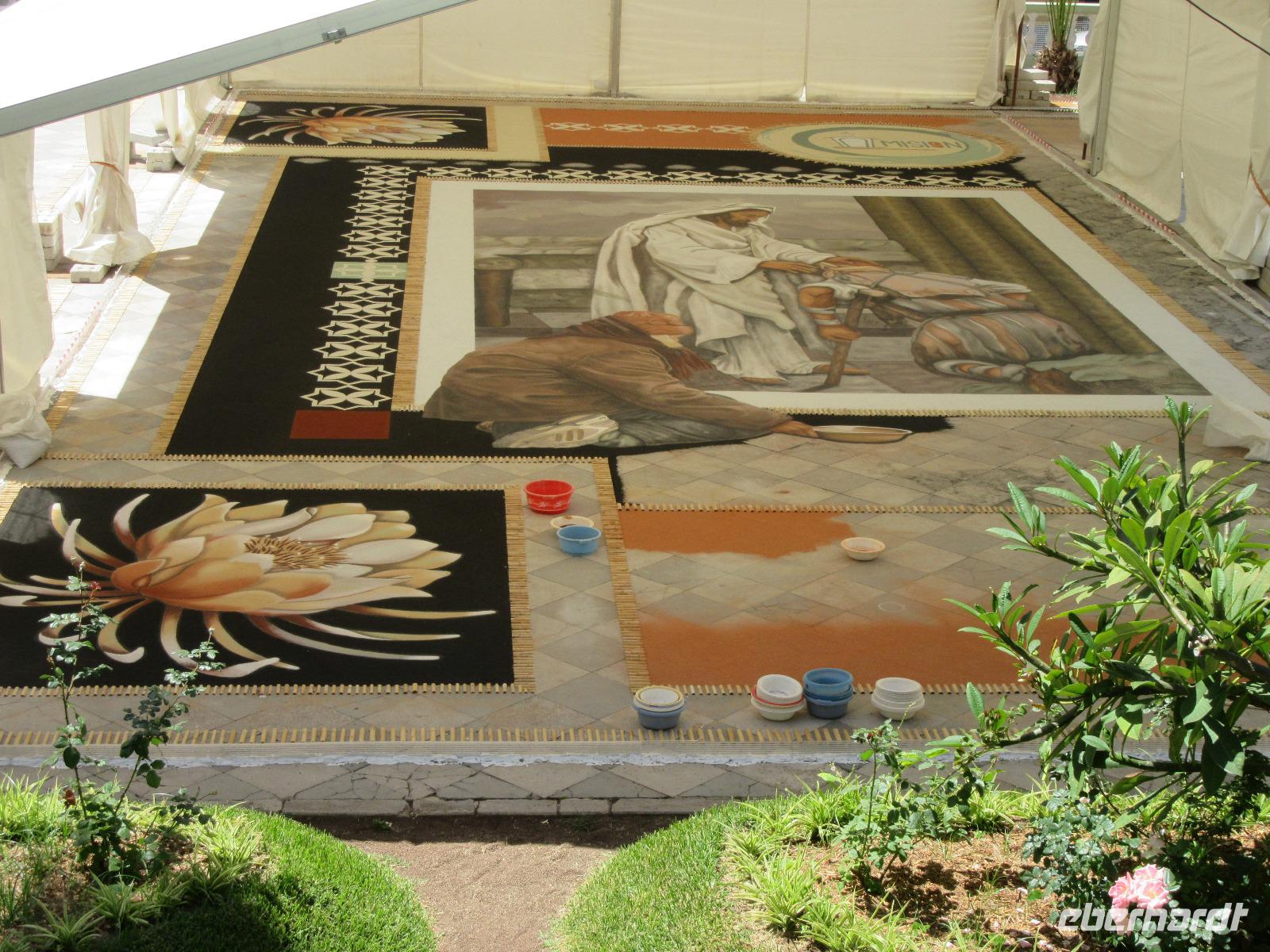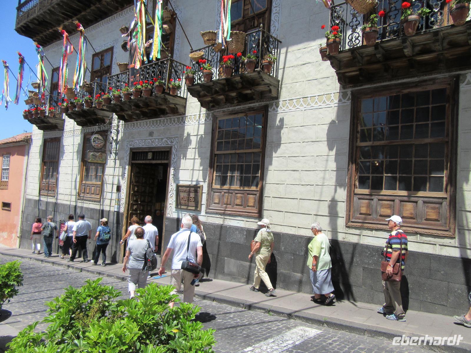 Danach fuhren wir nach La Orotava, wo wir Balkon-Häuser und Menschen in typischer Kleidung antrafen. Wir spazierten durch die Straßen und konnten die Vorbereitungsarbeit für die typischen Sandbilder mit den Motiven von Corpus Christi beim Rathaus beobachten. Anschlißend ging es für uns zur Hauptkirche und genossen eine typische Sangría in einem traditionellen Haus.