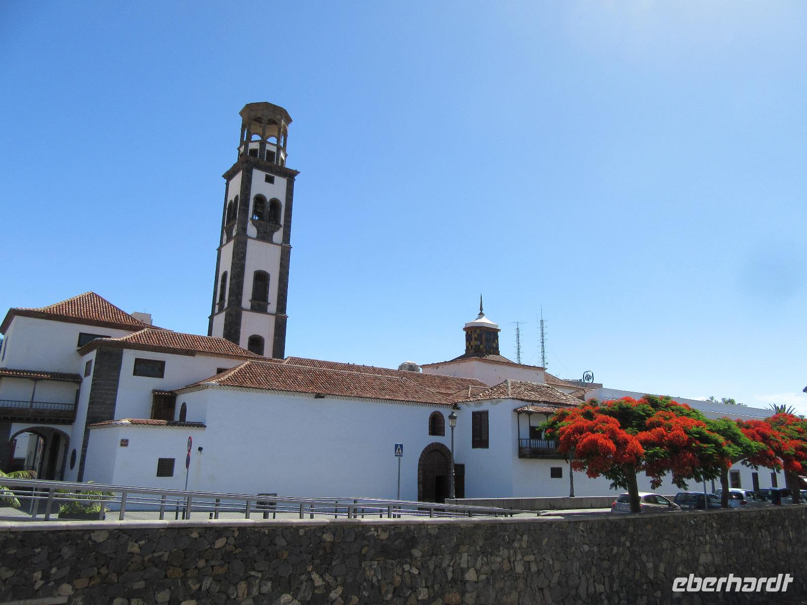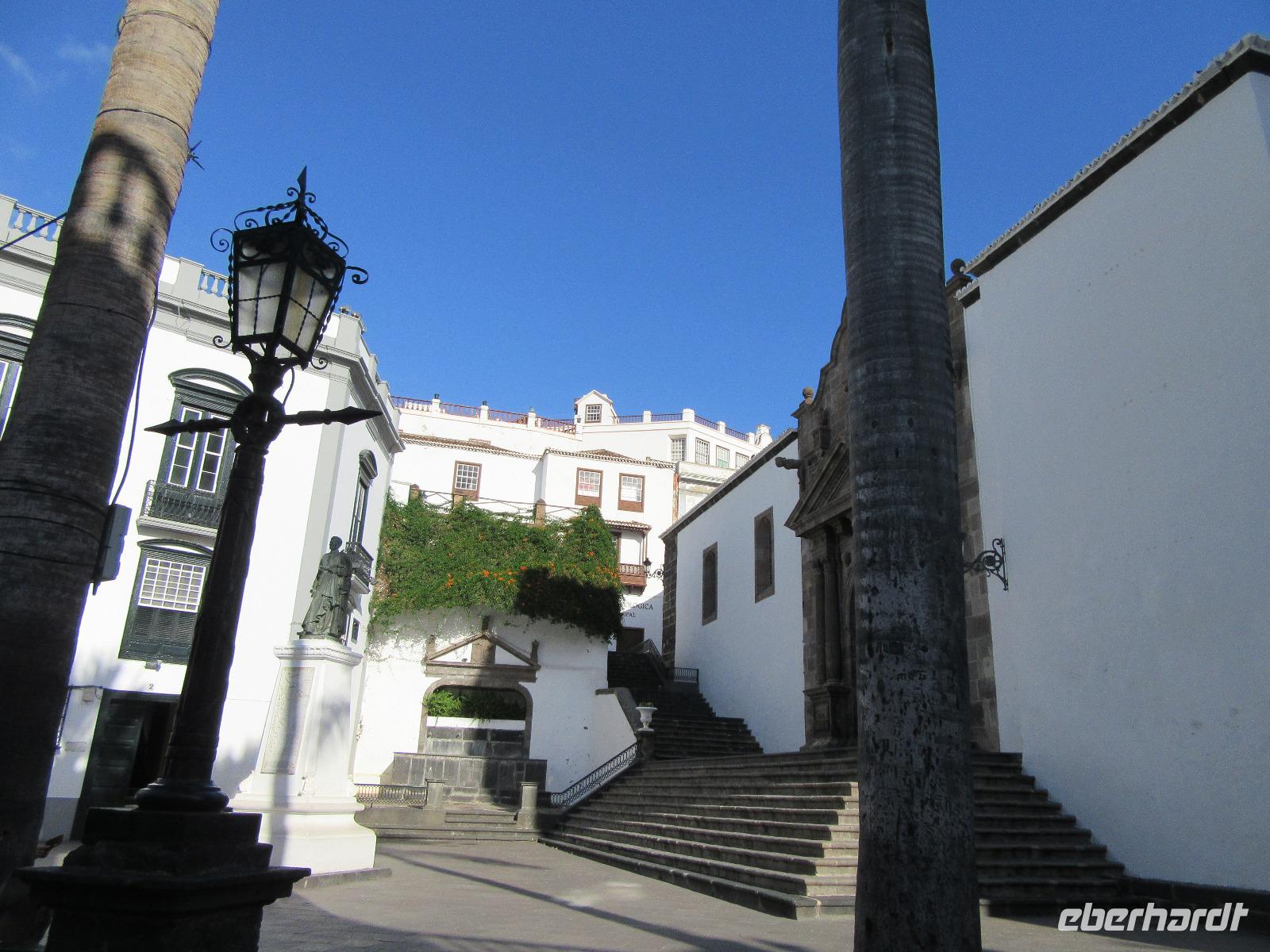 Die Temperatur war ganz angenehm und deswegen genossen wir die kurze Freizeit am Strand Las Teresitas an diesem schönen weißen Strand zu haben. Jetzt hieß es wieder den Berg hoch über die Serpentinien-Straße und wieder auf der anderen Seite runter, wobei wir den Erika- und Löwerwald bis Roque Las Boegas durchquerten. Da bekamen wir ein leckeres Essen beim Casa Africa mit einem Obstsalat und frischen Fisch. Es war ein besonderer Tag und wir haben auch die typischen Kanarische Lieder gehört. Danach fuhren wir wieder den Berg hinauf bis zum Aussichtspunkt Cruz del Carmen, wo man einen wunderschönen Ausblick über die Stadt La Laguna mit El Teide am Ende bekomen hat. Aber wir konnten dort leider nicht bleiben und fuhren direkt in die Stadt La Laguna. Da liefen wir durch die Altstadt mit ihren historischen Häusern und besuchten die Kathedrale Los Remedios.