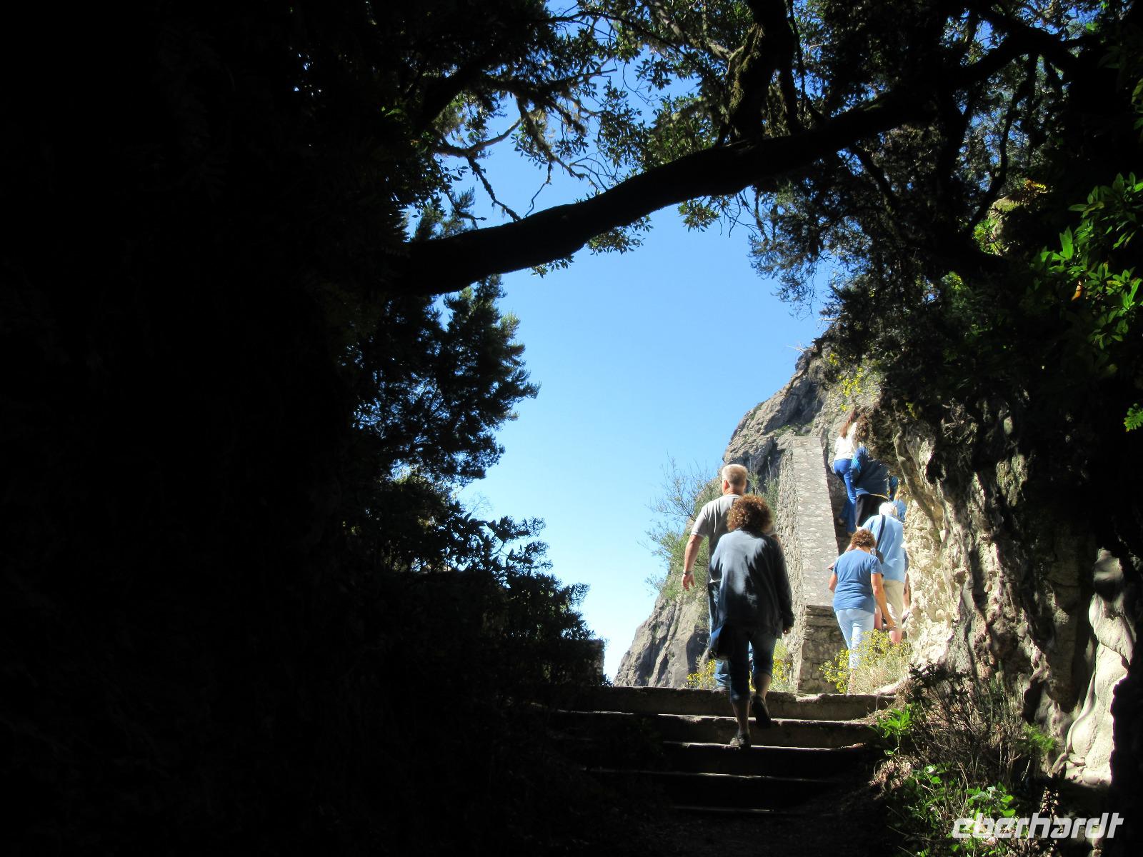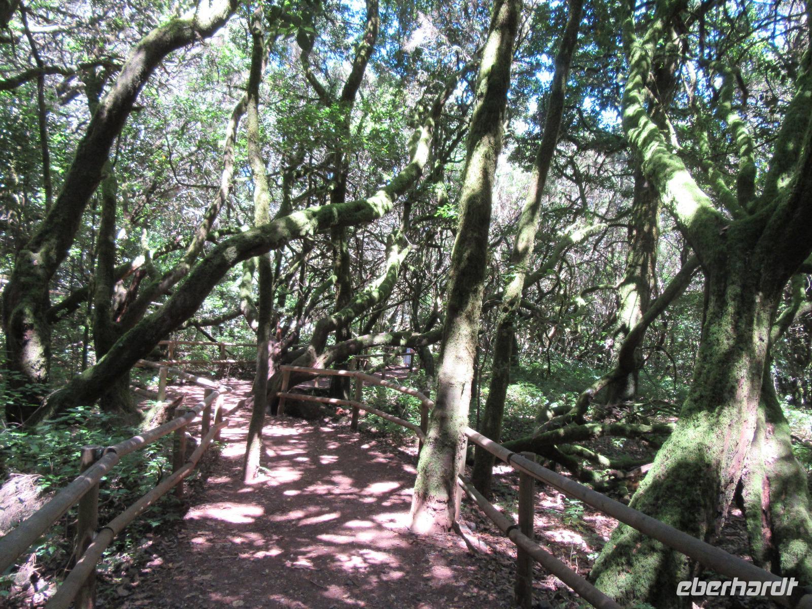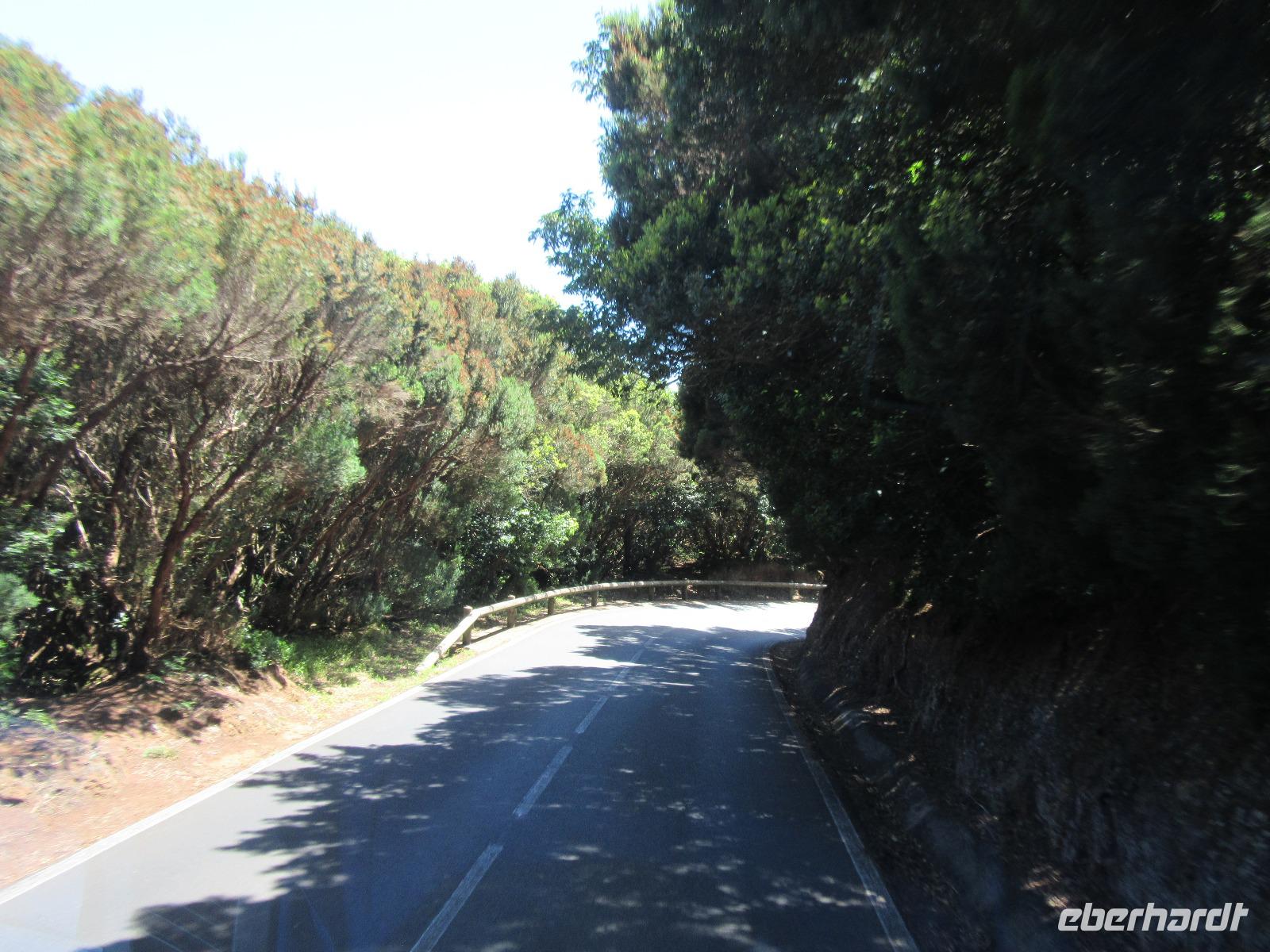Berg ab erreichten wir die Stadt Valle Gran Rey, direkt am Ufer des Meeres, wo wir etwas Freizeit für ein Mittagessen und ein kleinen Spaziergang hatten, bevor es auch schon wieder entlang der Linienküste bis zum Hafen weiter ging. Ab diesem Punkt fuhren wir zurück bergauf und fuhren zum Laguna Grande, direkt in den Nationalpark Garajonay, wo wir einen angenehmen Spaziergang durch den Löberwald machten und von da aus auf die Lagune sehen konnten.
