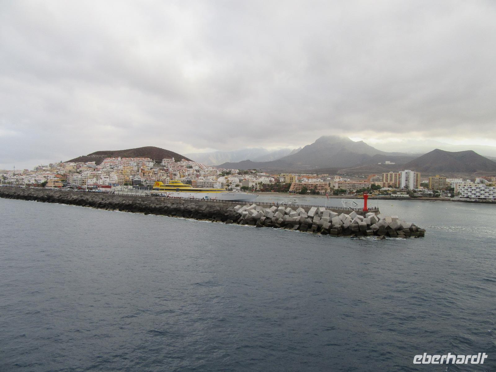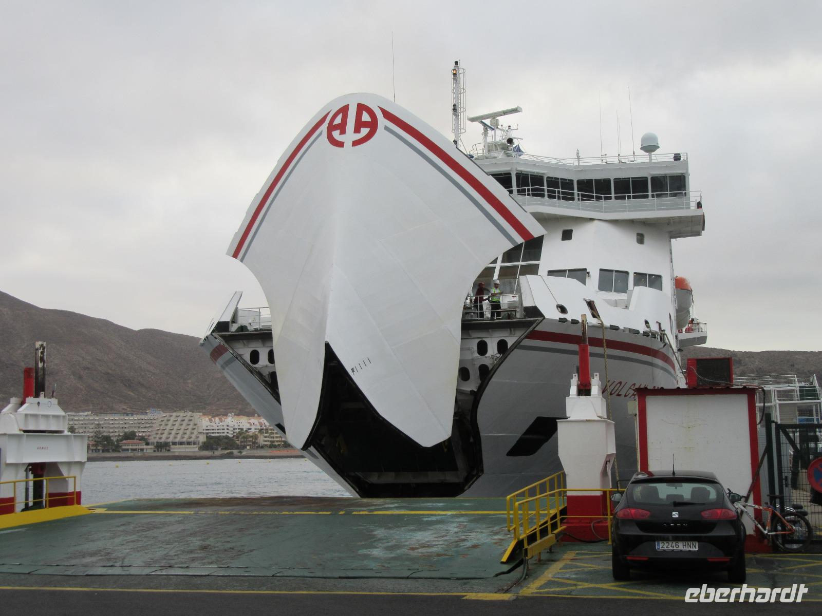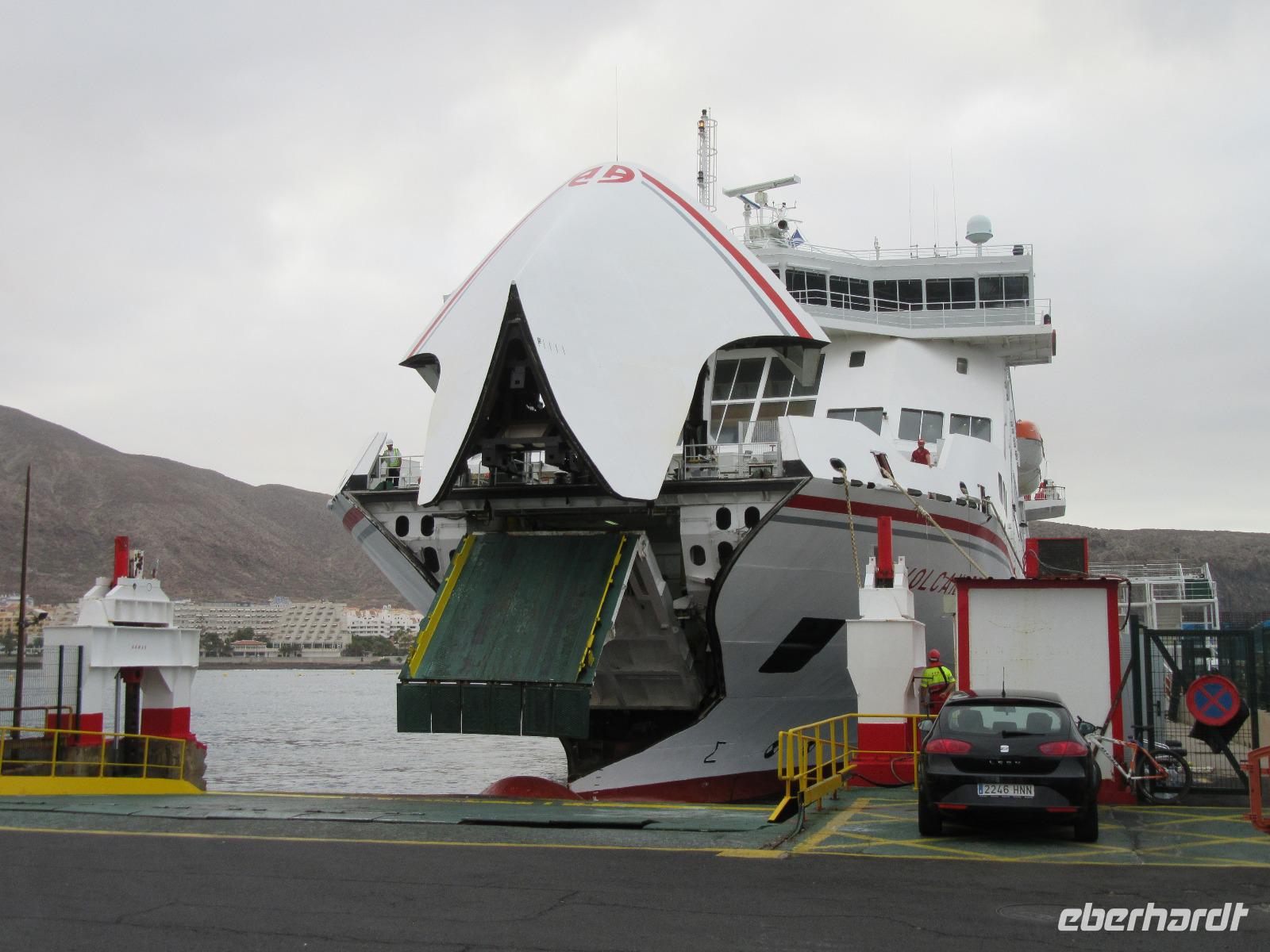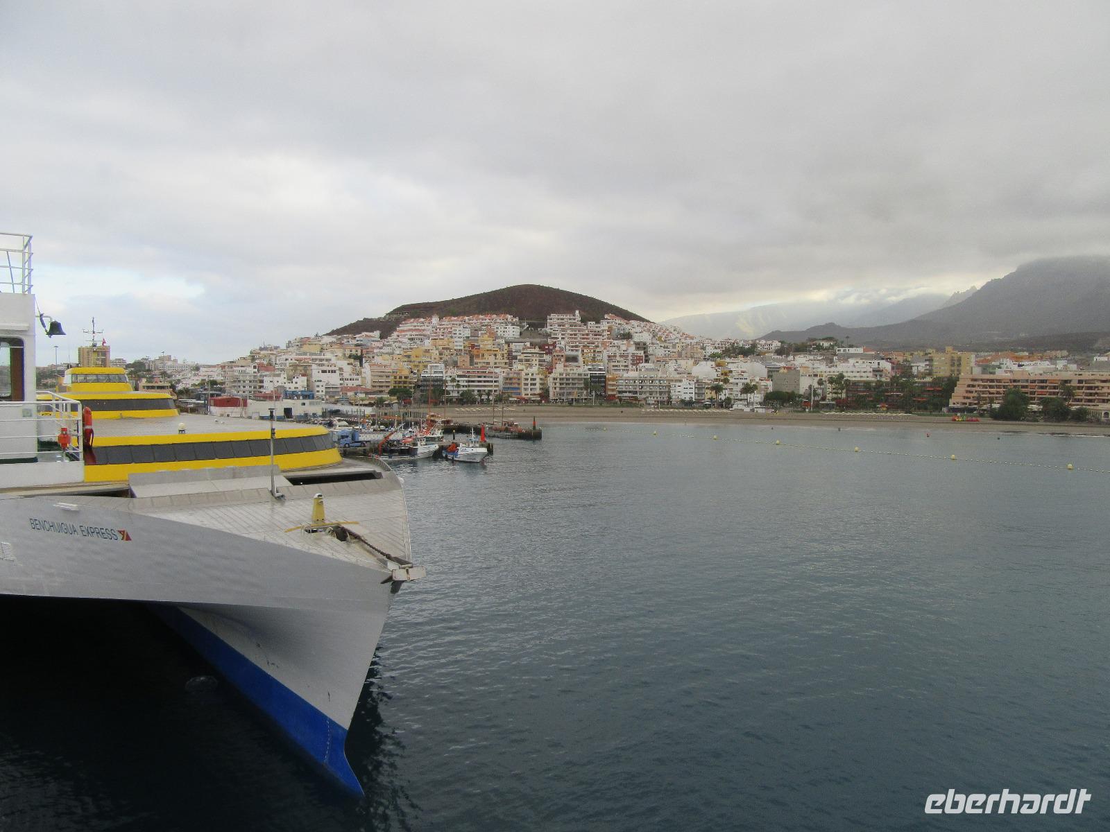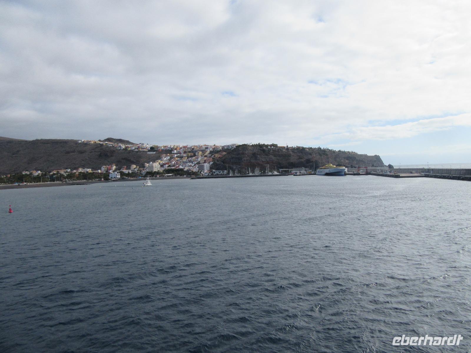 An diesen Tag verließen wir den Ort Playa Las Américas und fuhren zum Hafen Los Cristianos, wo unsere Fähre nach La Gomera ablegte. Innerhalb einer Stunde erreichten wir unsere zweite Insel und haben unsere Busfahrer Juan Pedro und örtliche Reiseleiterin Anahi kennen gelernt. Erst sind wir zum Hotel gefahren, weil einige von uns in San Sebástian de La Gomera blieben und der Rest in Richtung Norden zum Königstal Valle Gran Rey fuhr.