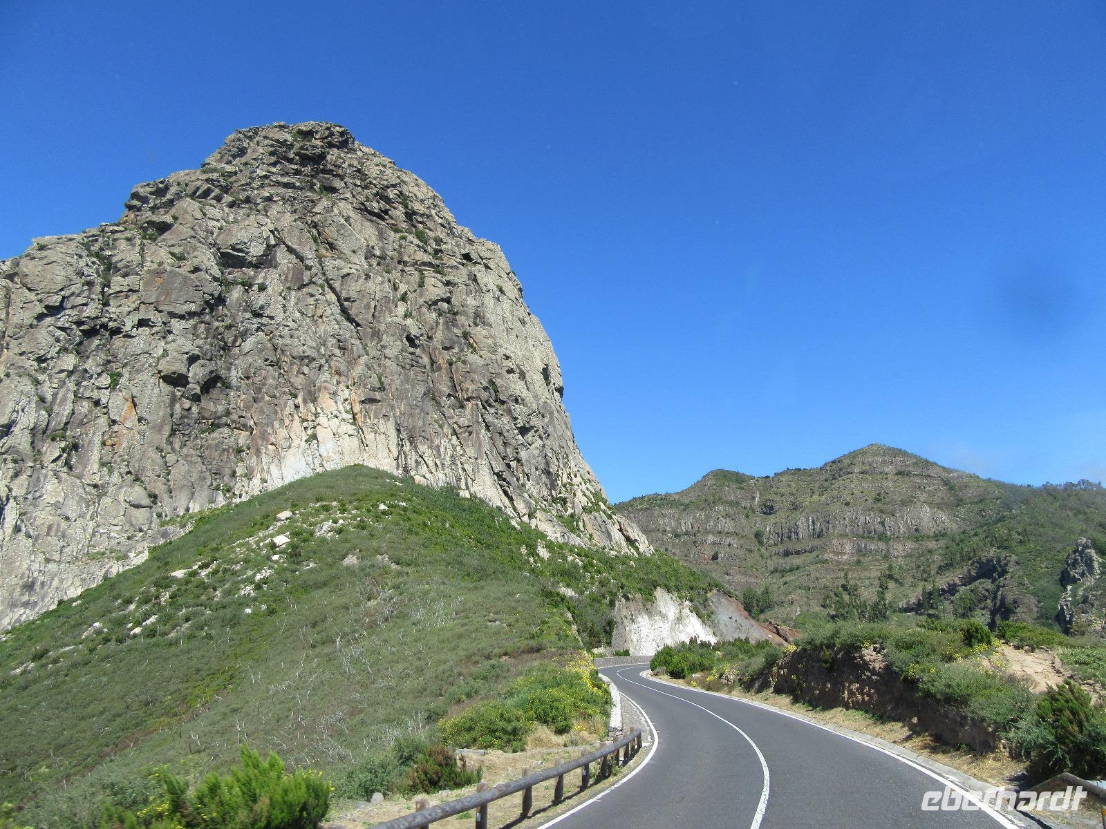 Anschließend machten wir verschiedene Stopps an den unterschiedlichen Aussichtspunkten, wie in Vallehermoso, Tajaque und Los Roques, wo wir in beide Richtungen gingen, um alle Roques zu sehen. Der Mirador von El Cabrito und Degollada de Peraza waren unsere letzten Aussichtspunkt vor San Sebastián. Schon wieder in der Stadt spazierten wir durch die Stadt und sahen den Torre del Conde, die Hauptkirche und das Kolumbus-Haus.