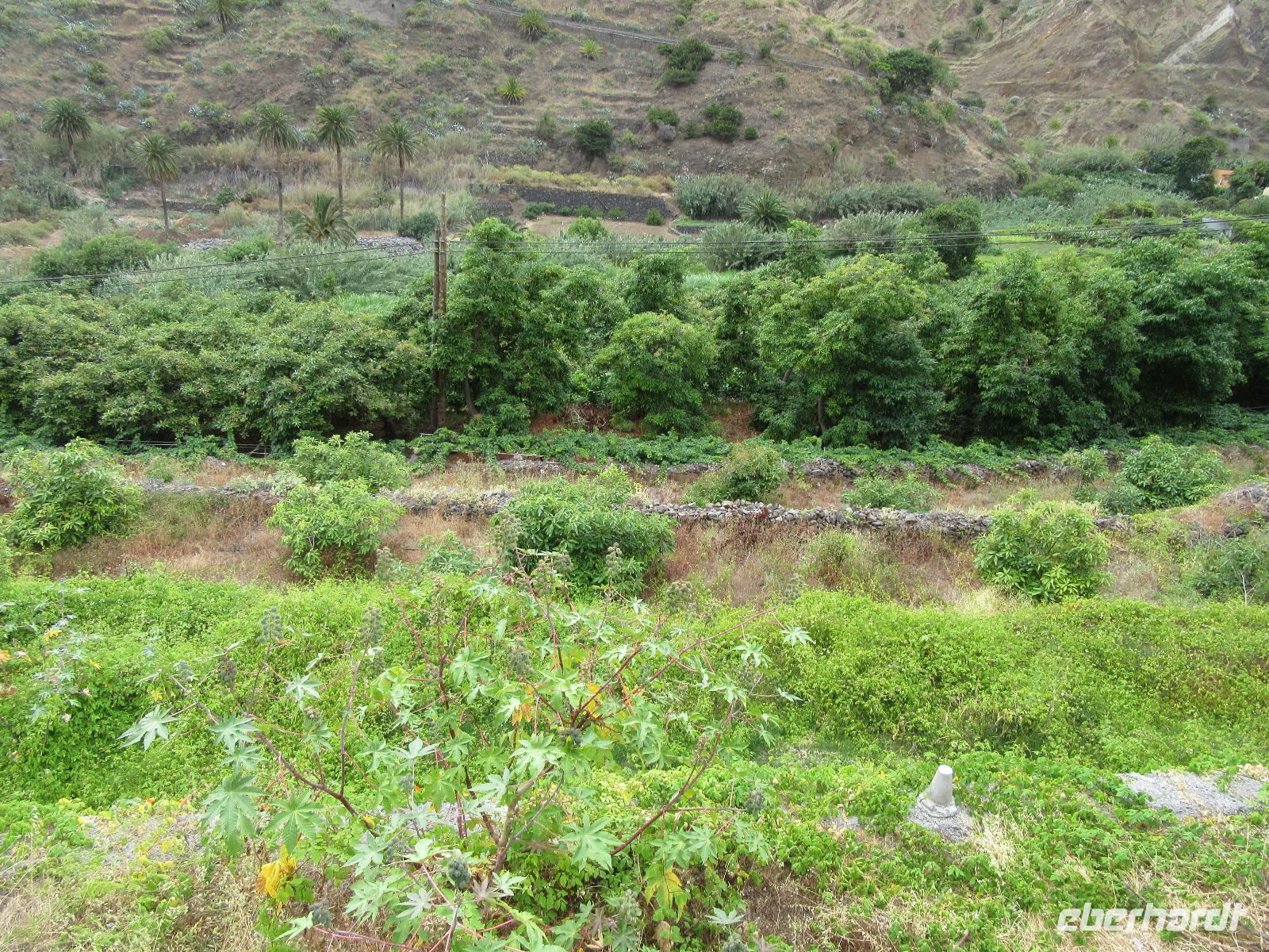 Am Morgen traffen wir unseren Busfahrer für heute namens Nicolás und unserer Anahi. Alle zusammen fuhren wir wieder einmal den Berg hoch, Richtung Nordost nach Hermigua. Bei der ersten Schlucht, die wir heute sahen und den verschiedenen Kakteen mussten wir einen Fotostopp einlegen. In Hermigua besuchten wir eine typische Bäckerei, wo wir die leckeren Almendrados, die Mandel-Kekse probierten. Da haben wir einige Avocado- und Bananenbäume gesehen.