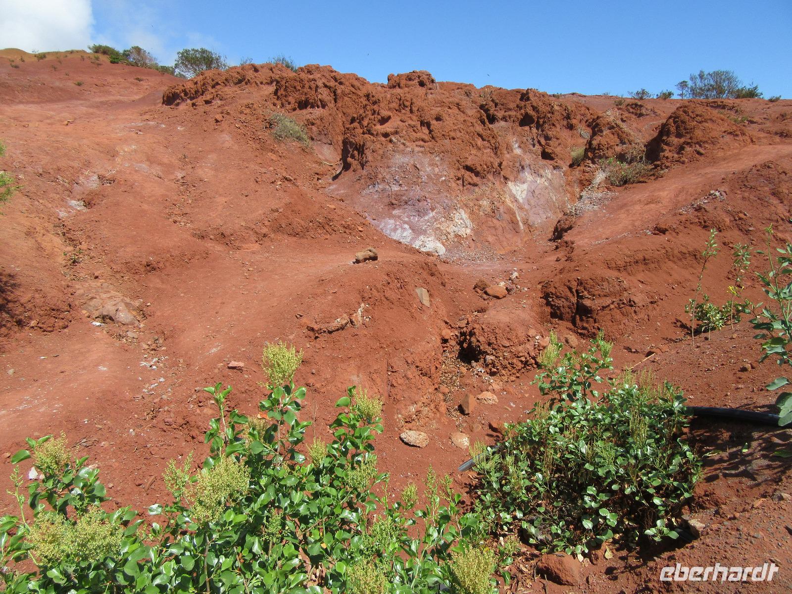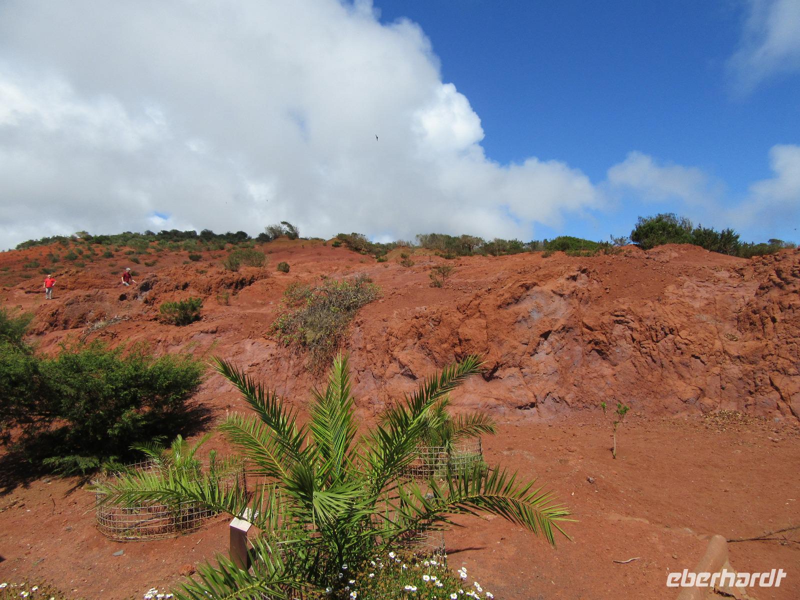 Nach diesem Bummeln, fuhren wir weiter berghoch, wo wir unsere Mittagspause machen würden. Hier in Mirador de Abrante, direkt an der Spitze des Berges mit der tollen Skywalkecke. Hier sieht die Landschaft wie auf dem Mars aus, so rot ist die Erde. In diesem Restaurant-Aussichtspunkt Mirador de Abrante konnten wir auch einem Gespräch zwischen den Kellnern Oscar und Marcos belauschen, die über die Pfeifsprache kommunizierten, um verschiedene sachen zu finden.