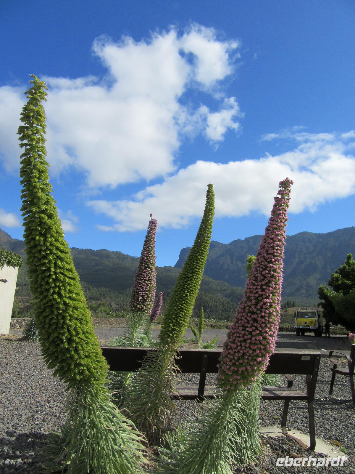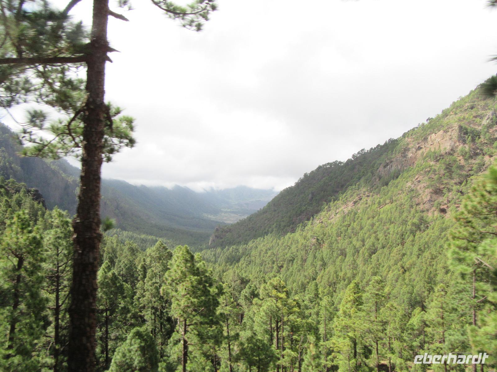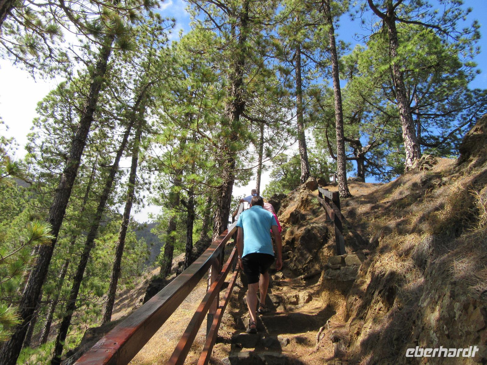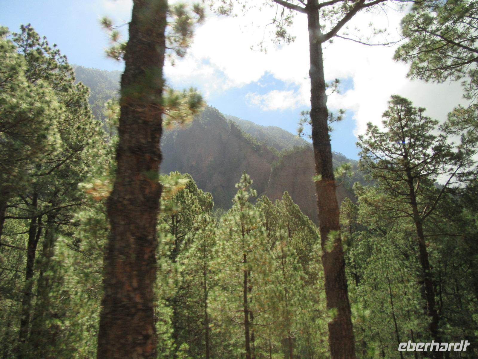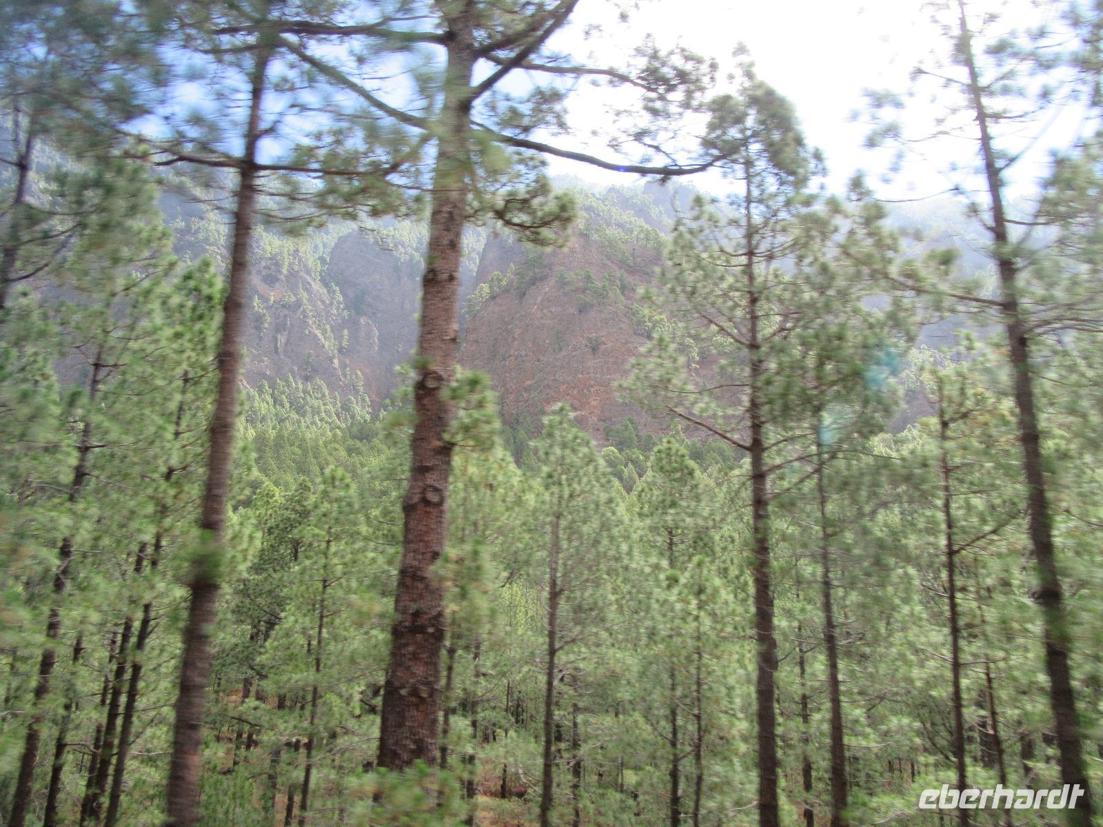 Dann fuhren wir weiter ins Herz der Insel: die Caldera de Taburiente. Die Kessel von diesem alten Krater ist ein Nationalpark, wo man den Kanarischen Kiefernwald sehen kann. Da, ein angenehmes Strecke auf eine Seite als La Cumbrecita gennant, gemacht haben nach unsere Besichtigung in den Besuchzentrum, wo die Struktur und die verschiedenen Vulkane der Insel sehen konnten.
