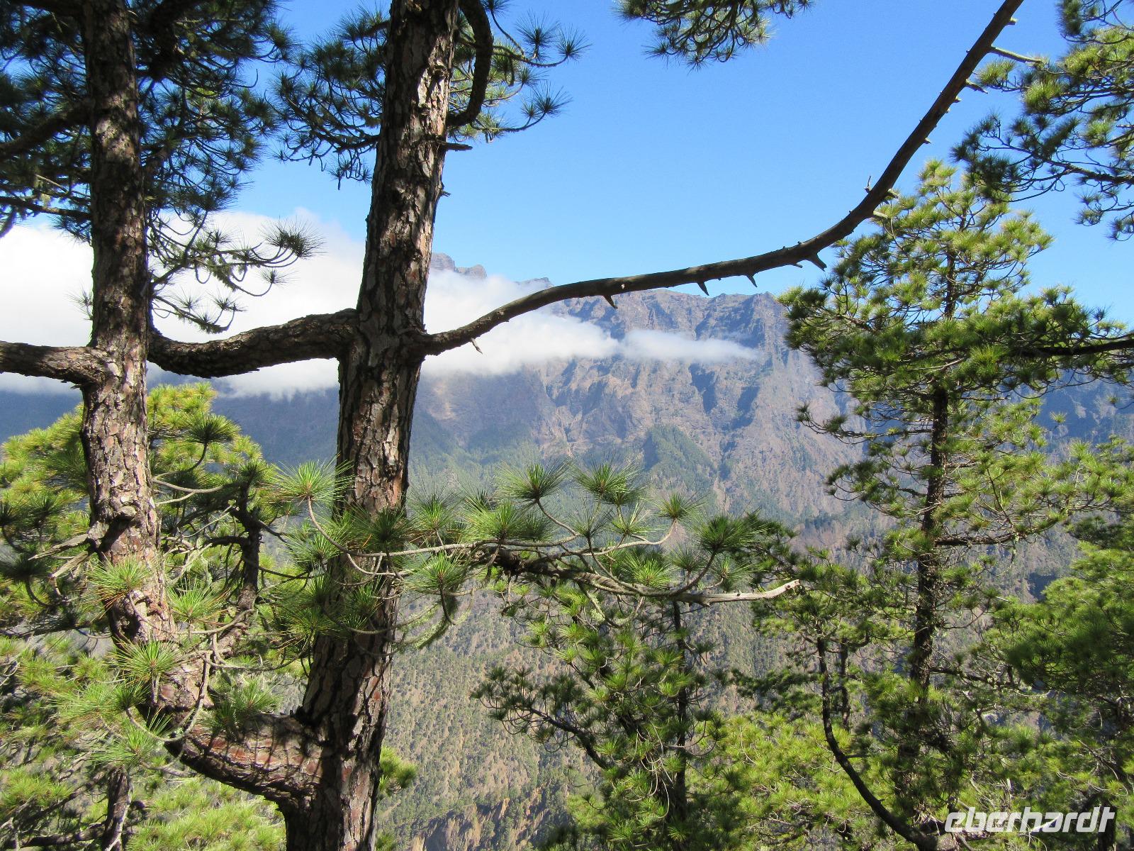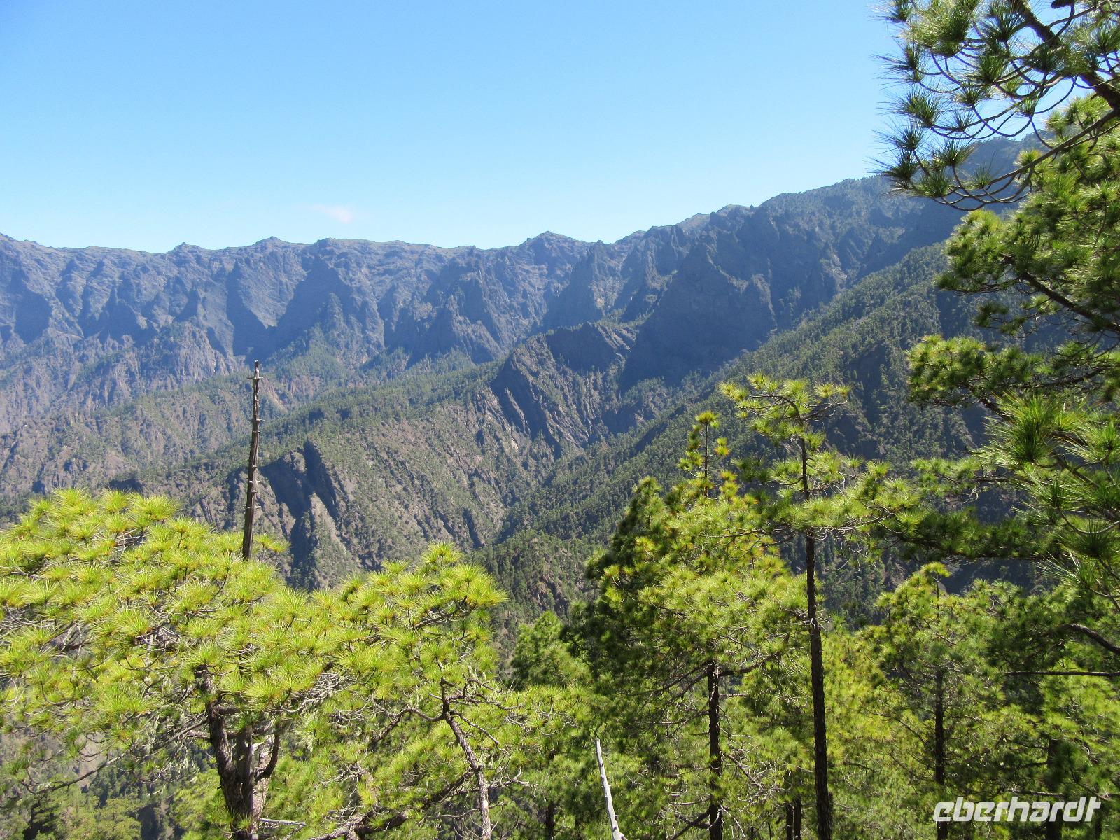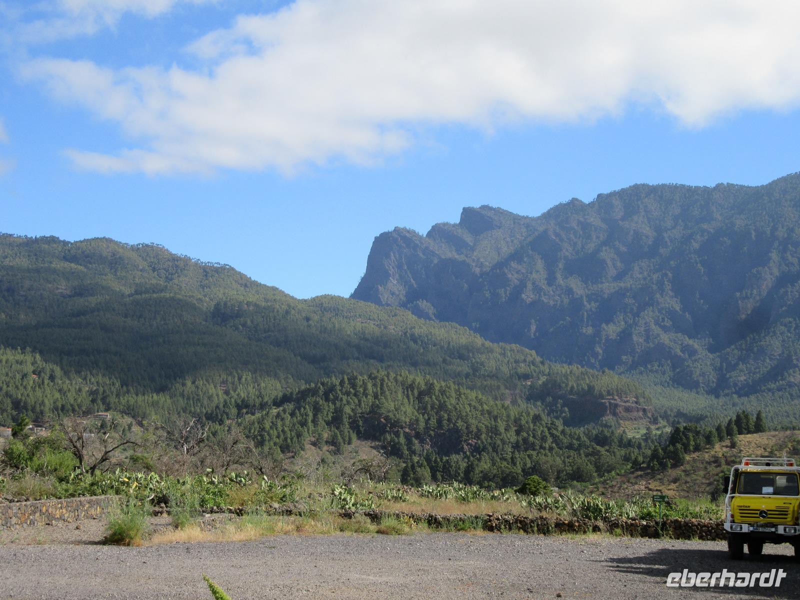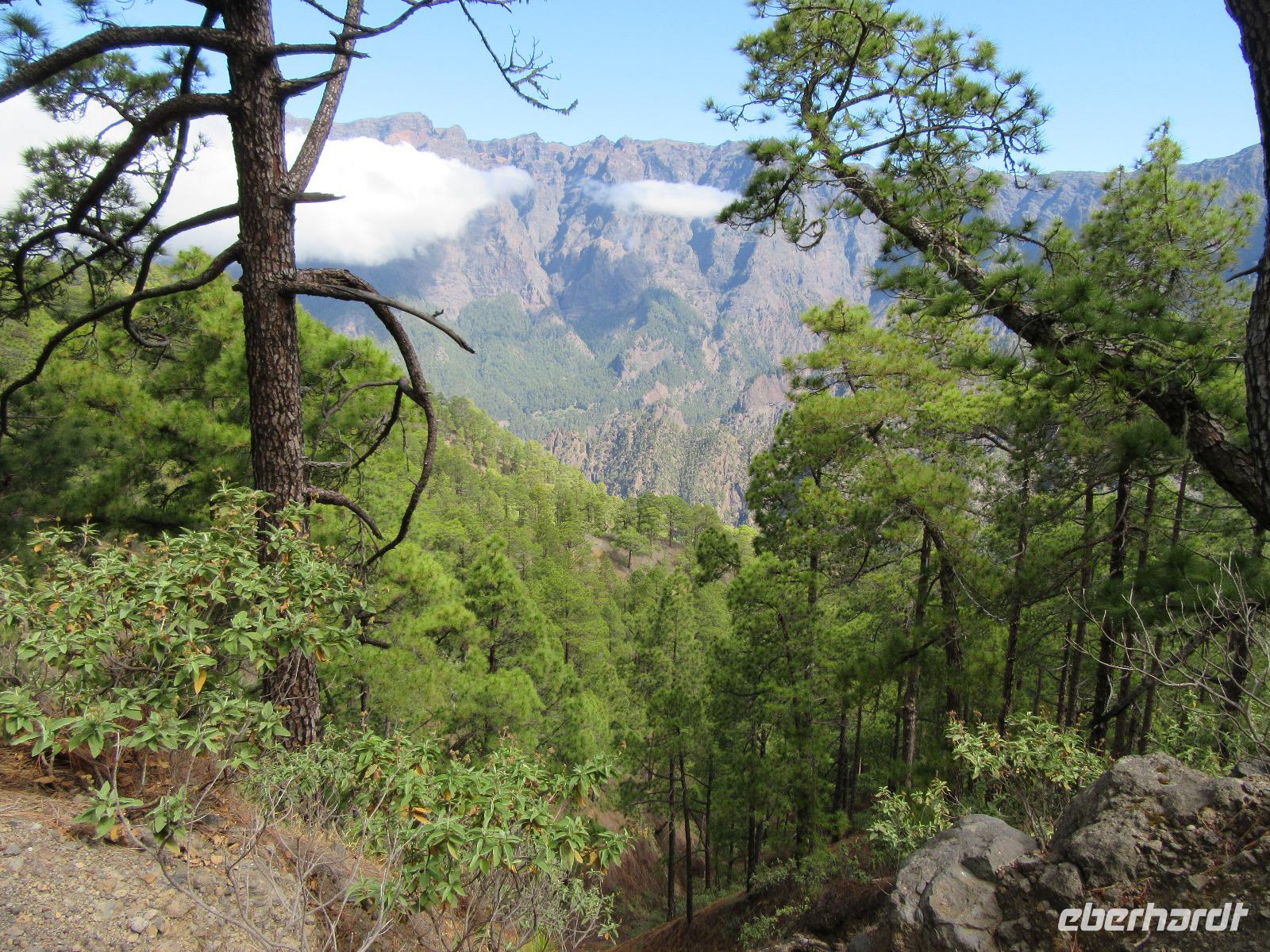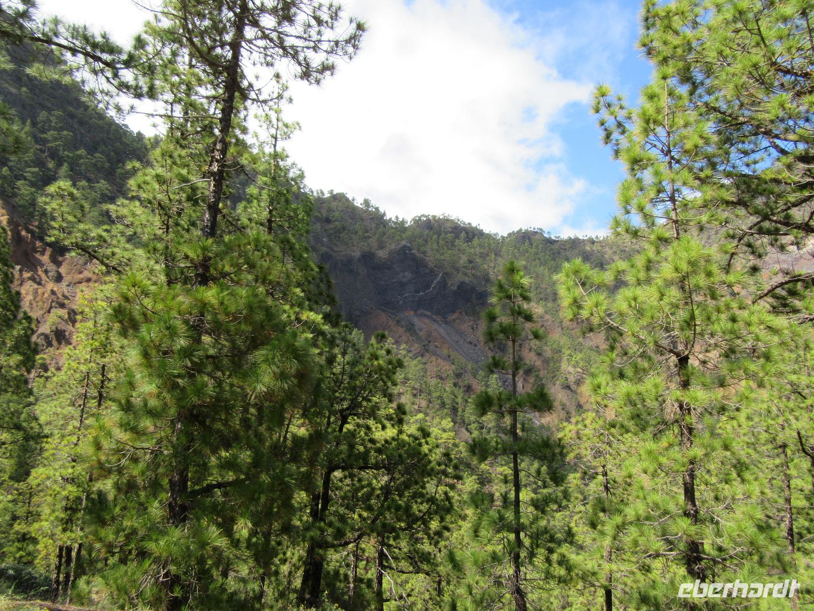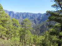 Dann fuhren wir weiter ins Herz der Insel: die Caldera de Taburiente. Die Kessel von diesem alten Krater ist ein Nationalpark, wo man den Kanarischen Kiefernwald sehen kann. Da, ein angenehmes Strecke auf eine Seite als La Cumbrecita gennant, gemacht haben nach unsere Besichtigung in den Besuchzentrum, wo die Struktur und die verschiedenen Vulkane der Insel sehen konnten.