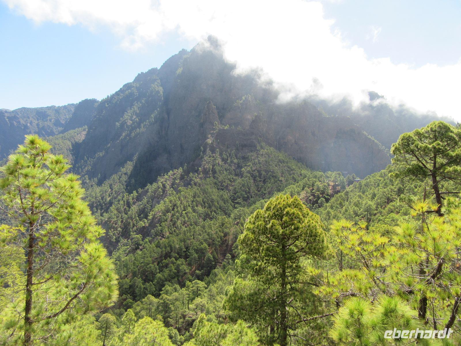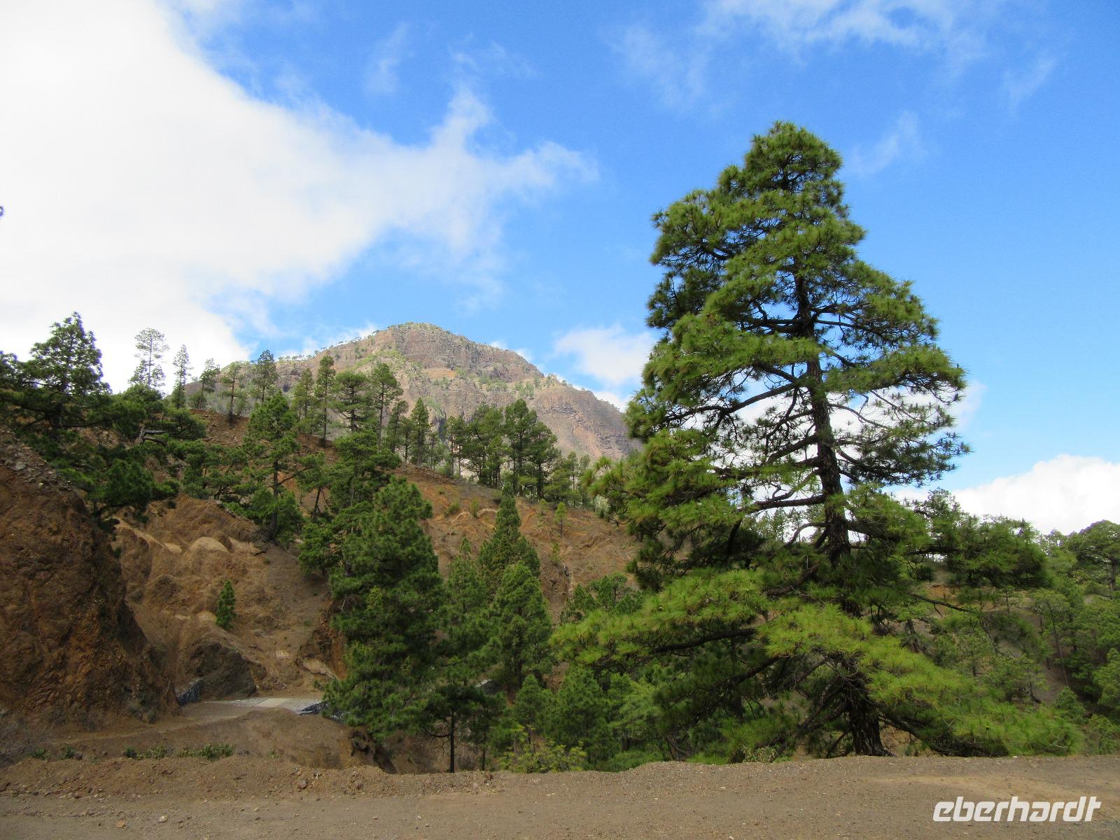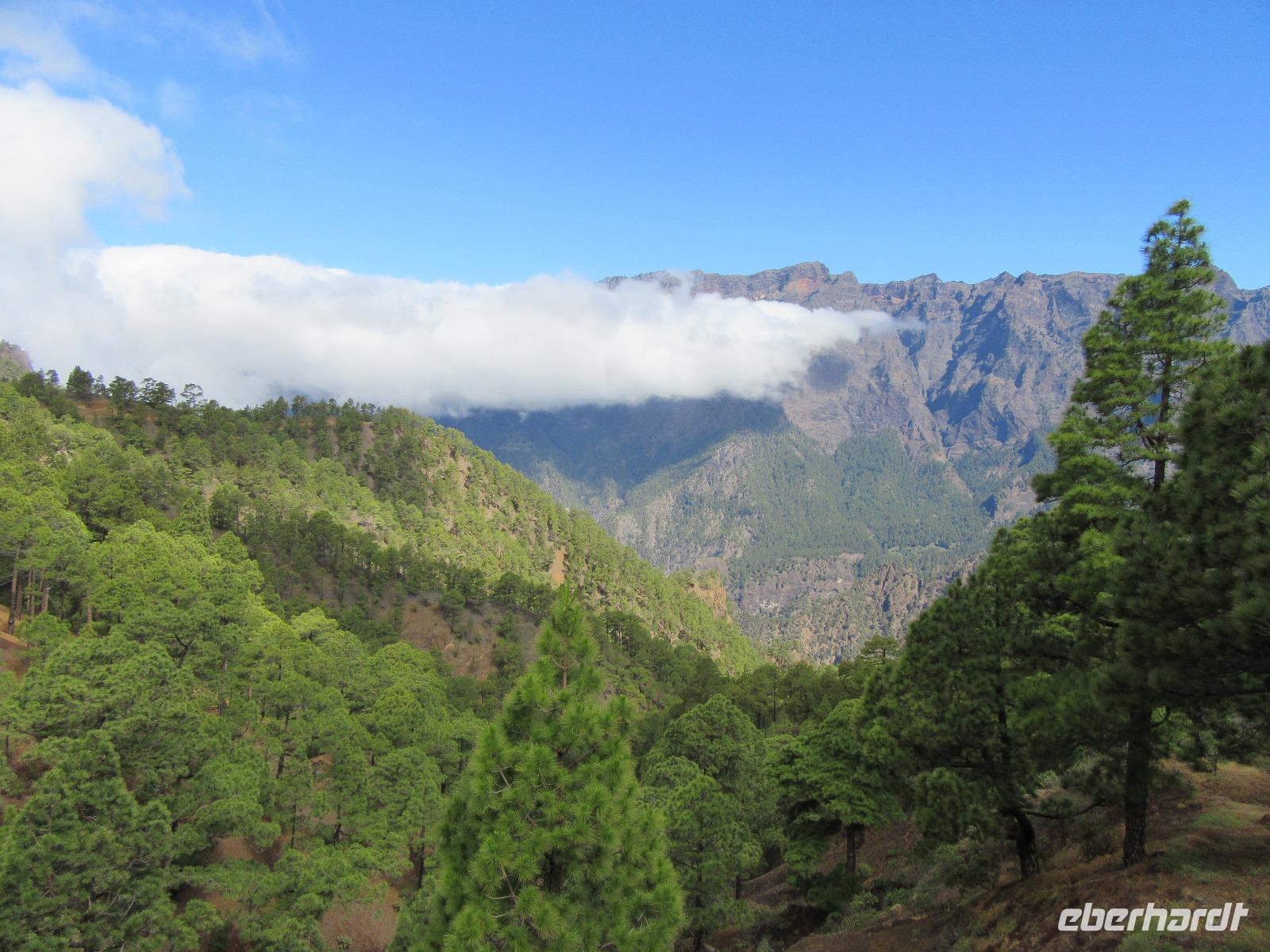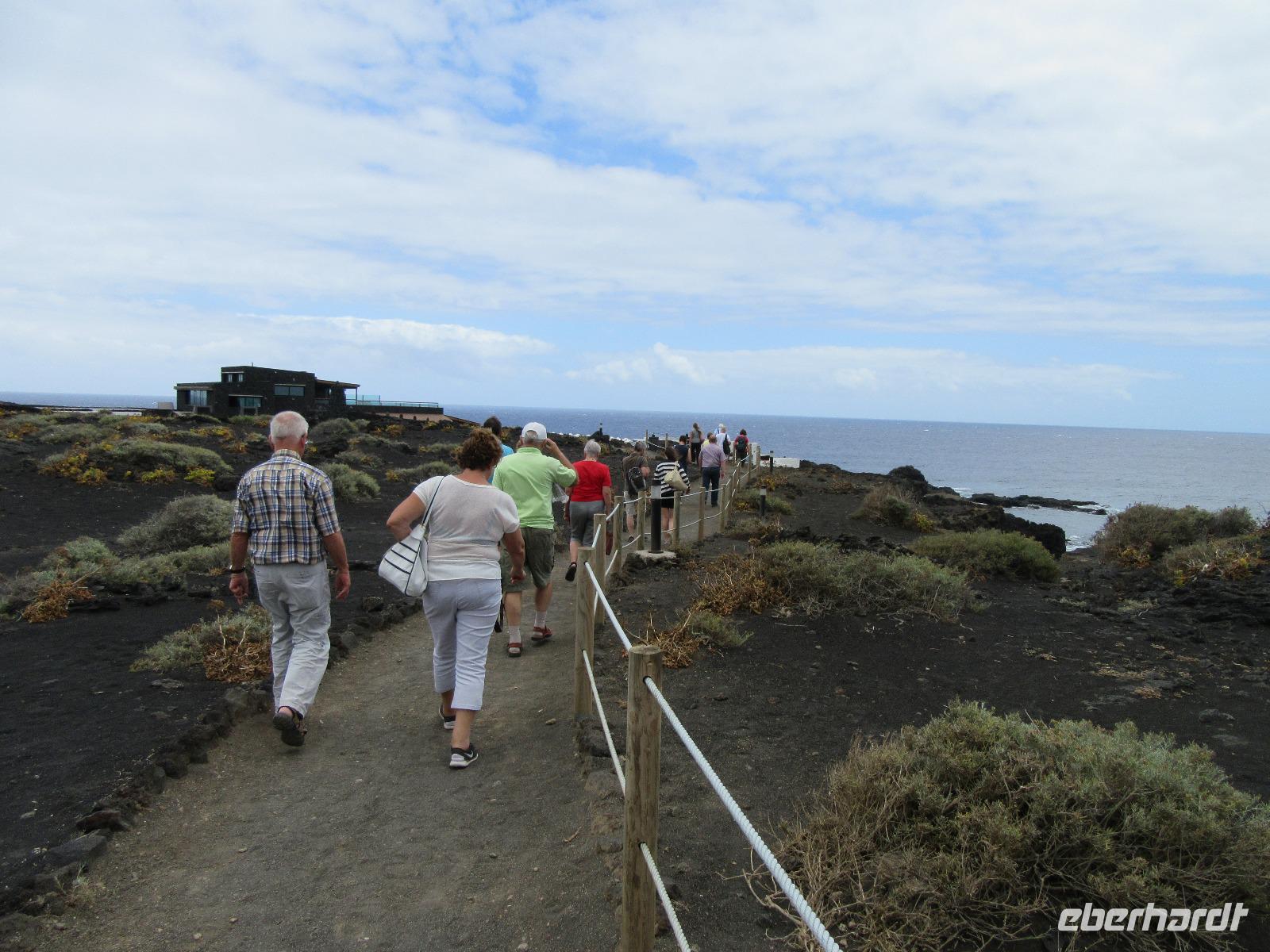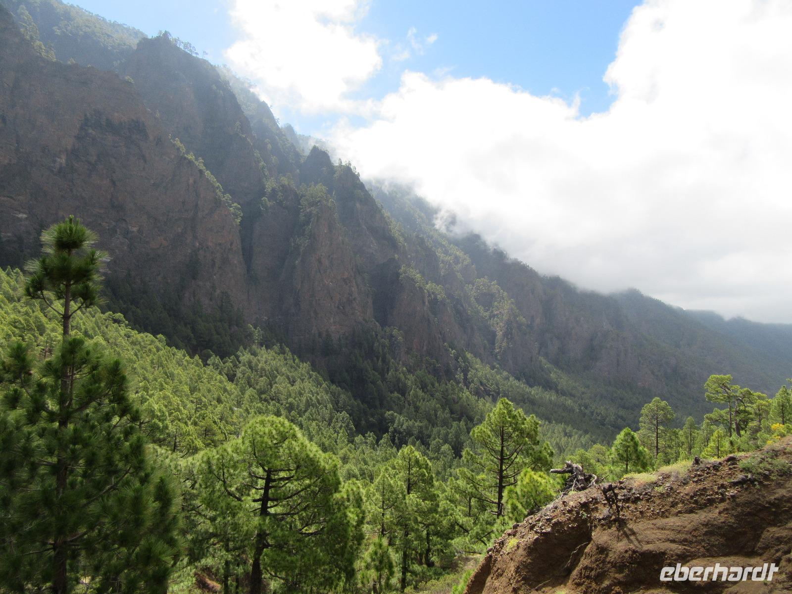 Dann fuhren wir weiter ins Herz der Insel: die Caldera de Taburiente. Die Kessel von diesem alten Krater ist ein Nationalpark, wo man den Kanarischen Kiefernwald sehen kann. Da, ein angenehmes Strecke auf eine Seite als La Cumbrecita gennant, gemacht haben nach unsere Besichtigung in den Besuchzentrum, wo die Struktur und die verschiedenen Vulkane der Insel sehen konnten.