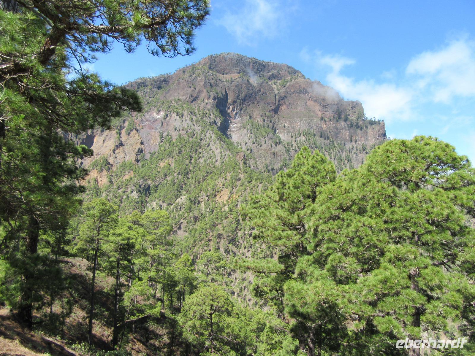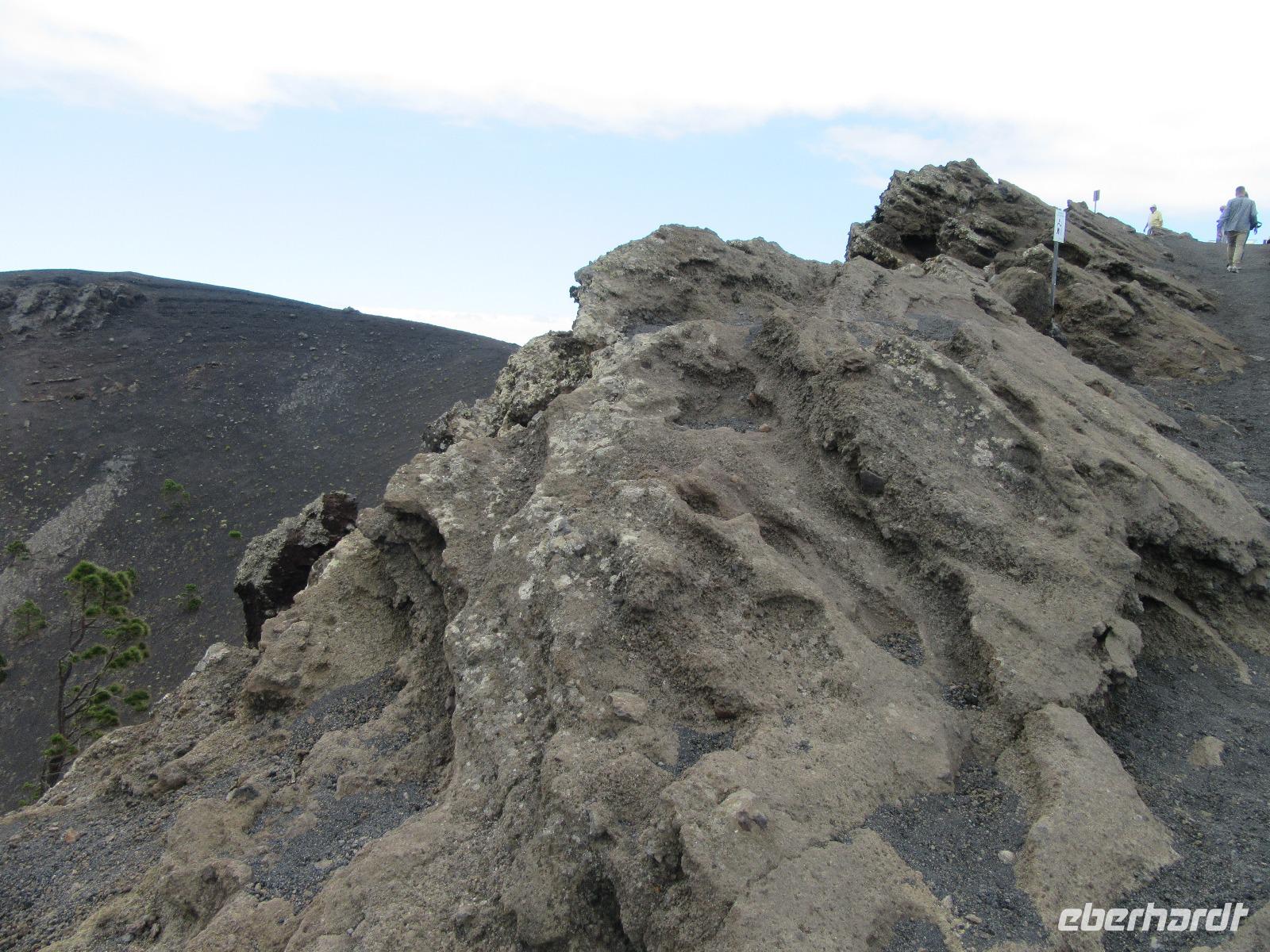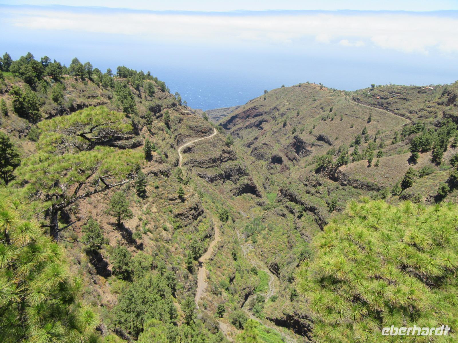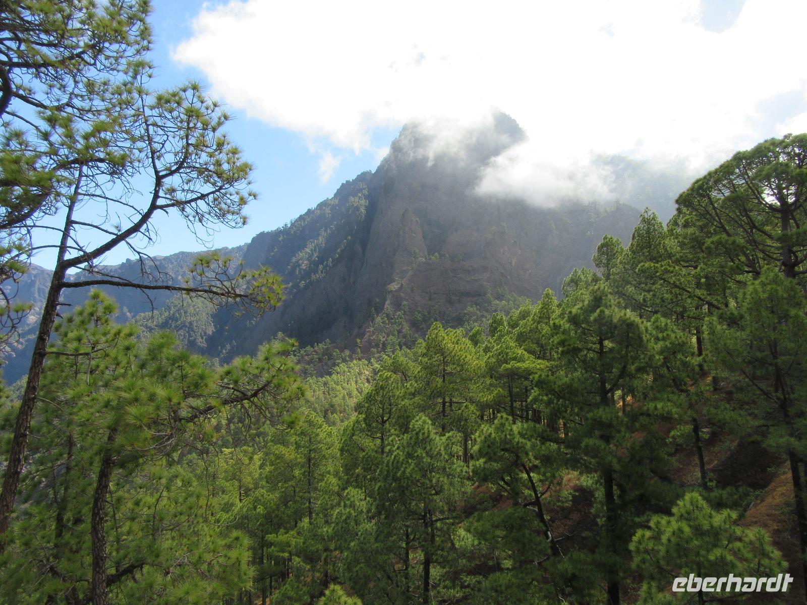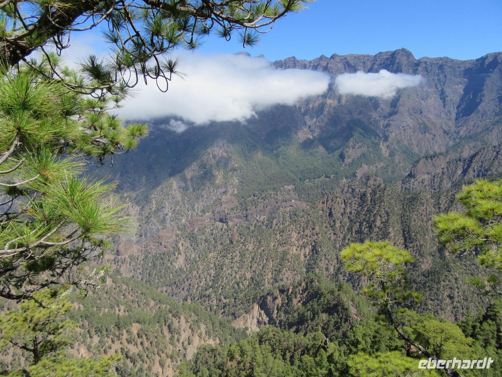 Dann fuhren wir weiter ins Herz der Insel: die Caldera de Taburiente. Die Kessel von diesem alten Krater ist ein Nationalpark, wo man den Kanarischen Kiefernwald sehen kann. Da, ein angenehmes Strecke auf eine Seite als La Cumbrecita gennant, gemacht haben nach unsere Besichtigung in den Besuchzentrum, wo die Struktur und die verschiedenen Vulkane der Insel sehen konnten.