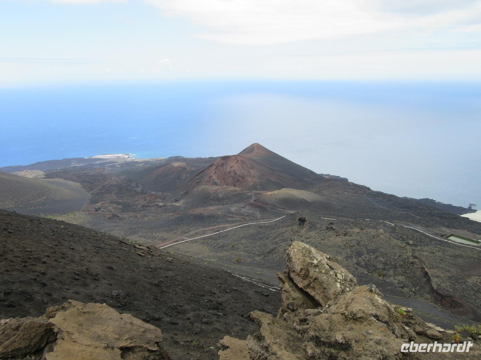 Nach diesem angenehmen kleinen Spaziergang in der Natur, fuhren wir weiter zum Vulkan San Antonio, wo wir ein Erklärungsvideo gesehen haben und auf der Spitze des Kraters rum gelaufen sind. Da gibt es einen Aussichtspunkt, wo man ein herrliches Panorama auf die Weingutterrassen und auf den letzten Vulkan der Insel "Teneguia" hatte.
