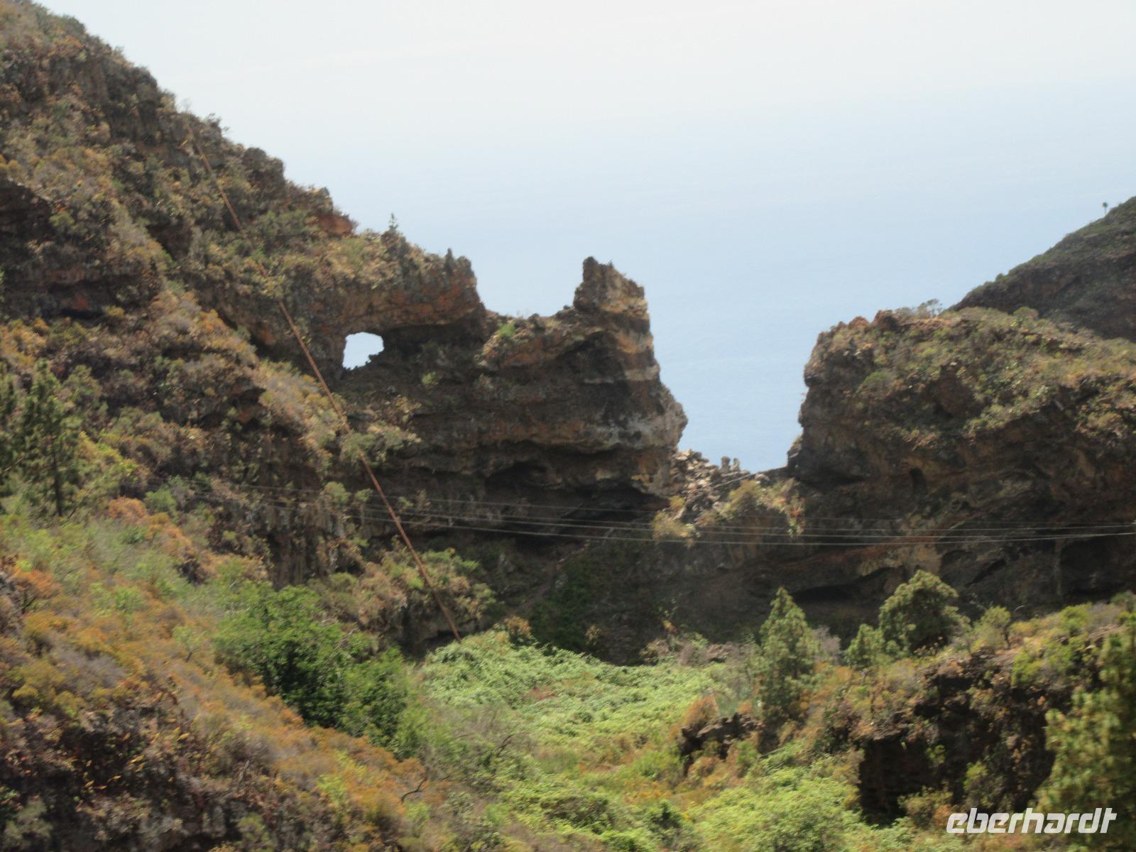 Anschließend fuhren wir über die Serpentinenstraße bis zum Westteil der Insel nach Puntagorda mit der strategischen Pause an dem Aussichtspunkt von La Haya. Dann später in Puntagorda haben wir unser Mittagsessen in einem hübschen Innenhof genossen.