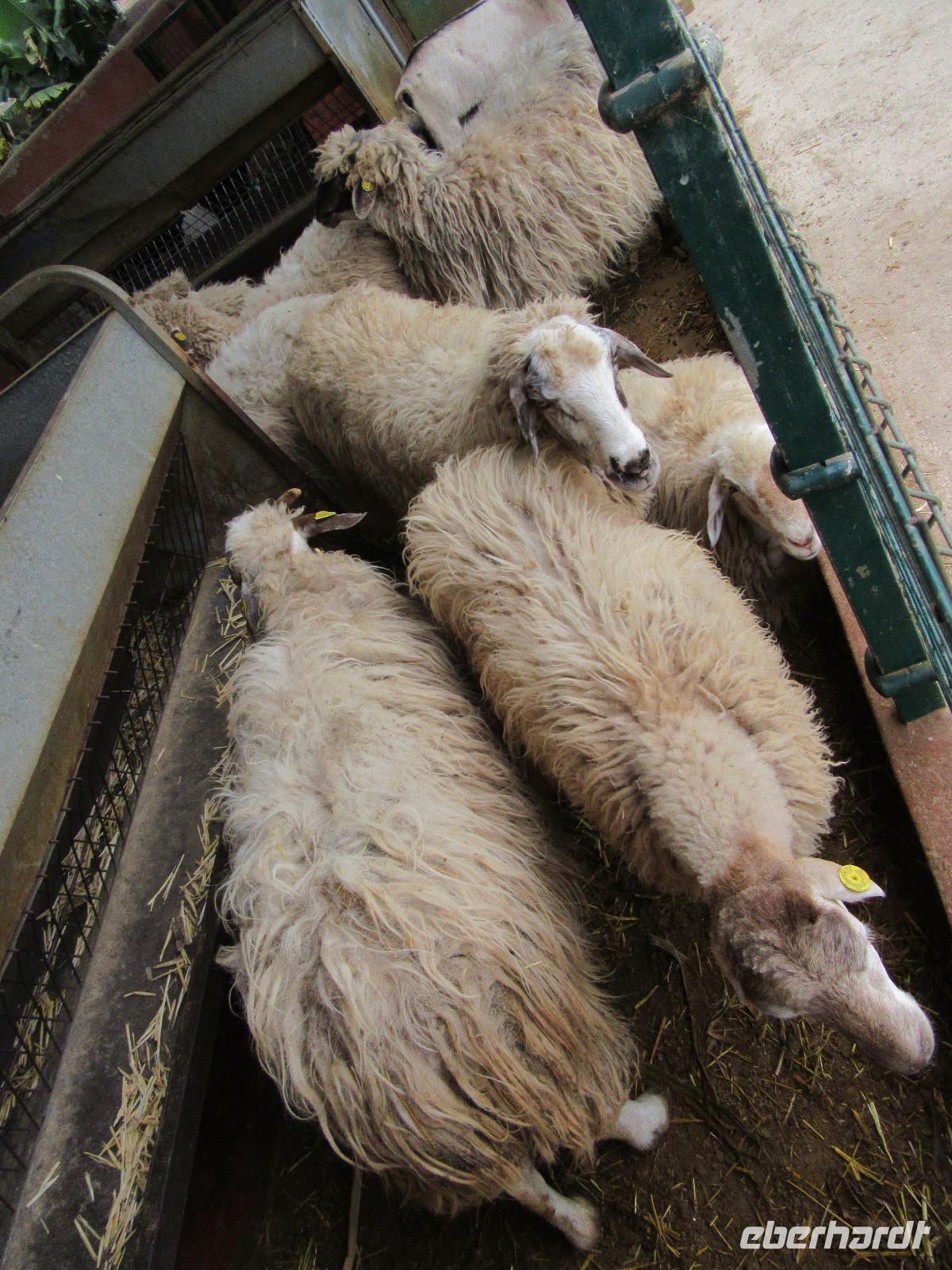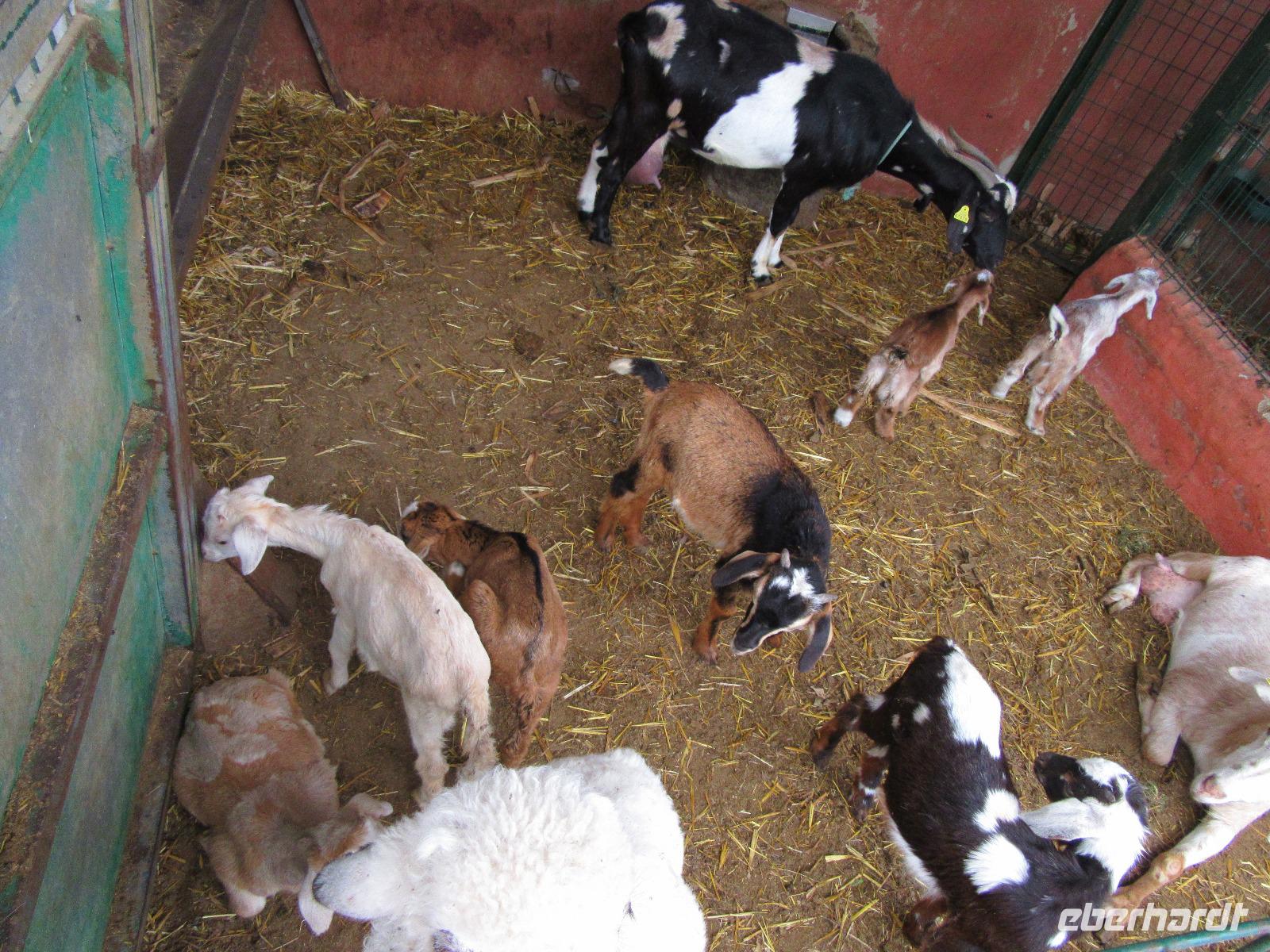 Arucas ist auch für das Vitamin A (Alkohol) oder R (Rum) berühmt, der Rum Arehucas. Den konnten wir in einer tratidionellen Finca verkosten, bevor unsere Besichtigung im Dorf Arucas anbrach. In diese Finca haben wir bei einer Bananen-, Käse- und Papayaverkostung, die großen Bananen-Plantagen gesehen und etwas über den Prozess des Anbaus und Verarbeitung gehört. Ziegen, Schafen, Schweine, Hühner, Hunde und einen Esel sahen wir.