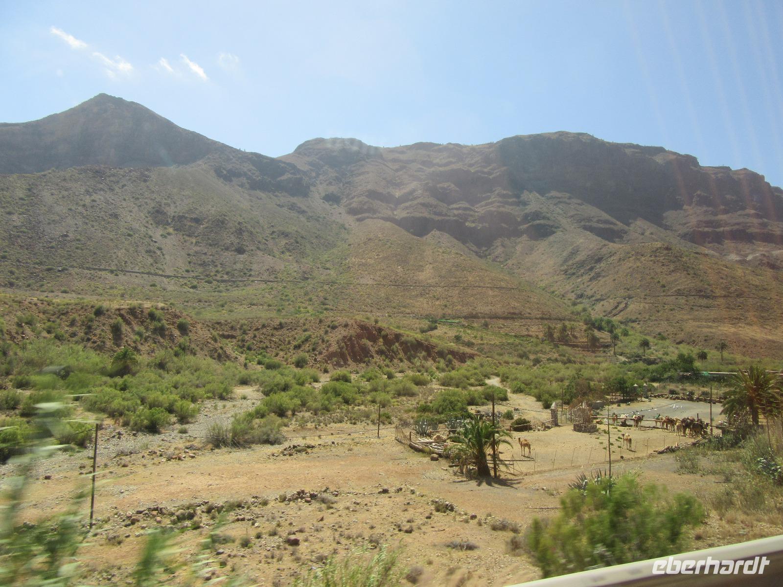 Ein Stück weiter, sahen wir verschiedene Zitrusplantage mit Zitronen, Orangen und Mangos und eine Oase mit Kamelen.