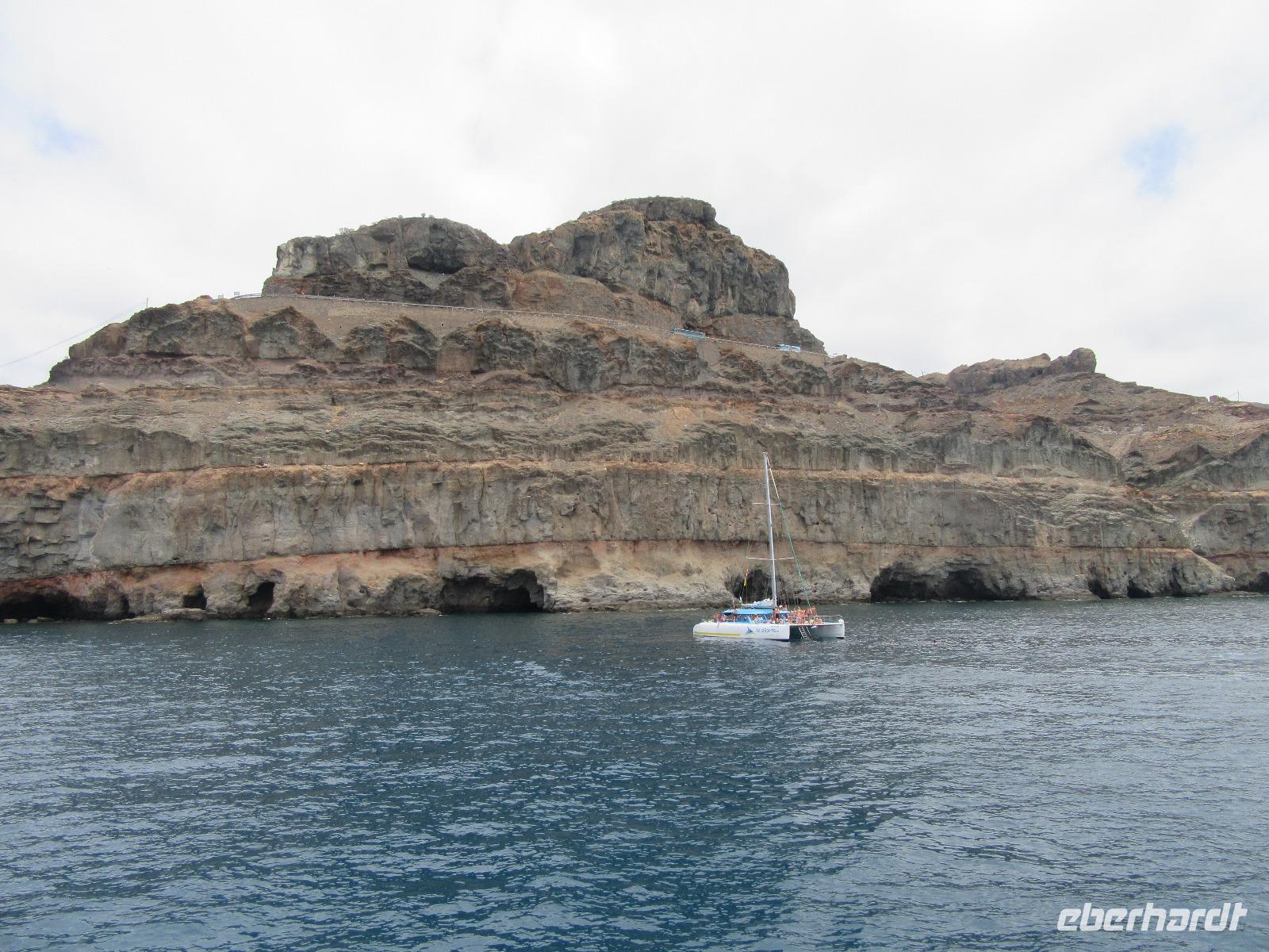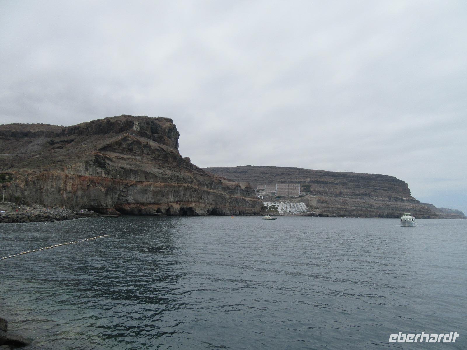 Nach den Frühstück machten wir einen gemütlichen Weckspaziergang entlang der Promenade neben den Dühnen von Maspalomas. Es war noch früh, weswegen die Temperatur auch sehr angenehm war. Nachdem wir genügend Fotos von den Dühnen gemacht haben, fuhren wir entlang der Küstenlinie von Arguineguín bis Puerto de Mogán. Auf diesem Weg haben wir die Felsenküste und die Lage von den alten Tomatenplantage gesehen, sowie verschiedene Dörfer, wie Puerto Rico, Tauro und Taurito durchquert. An den wunderschönen weißen Sandstränden bei Amadores oder Anfi del Mar sind wir entlang gefahren.