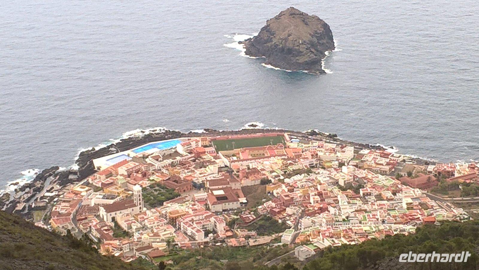 Die Panoramafahrt zurück zum Hotel in Las Americas führt uns über Santiago del Teide. Der kleine Ort, der seinen Namen erst 1916 bekam und bis dahin offiziell nur den Namen Santiago trug, erlebte im 20. Jahrhundert einen wirtschaftlichen und demografischen Aufschwung, die Bevölkerung wuchs von 1432 Einwohnern 1900 auf 3414 im Jahr 1970.