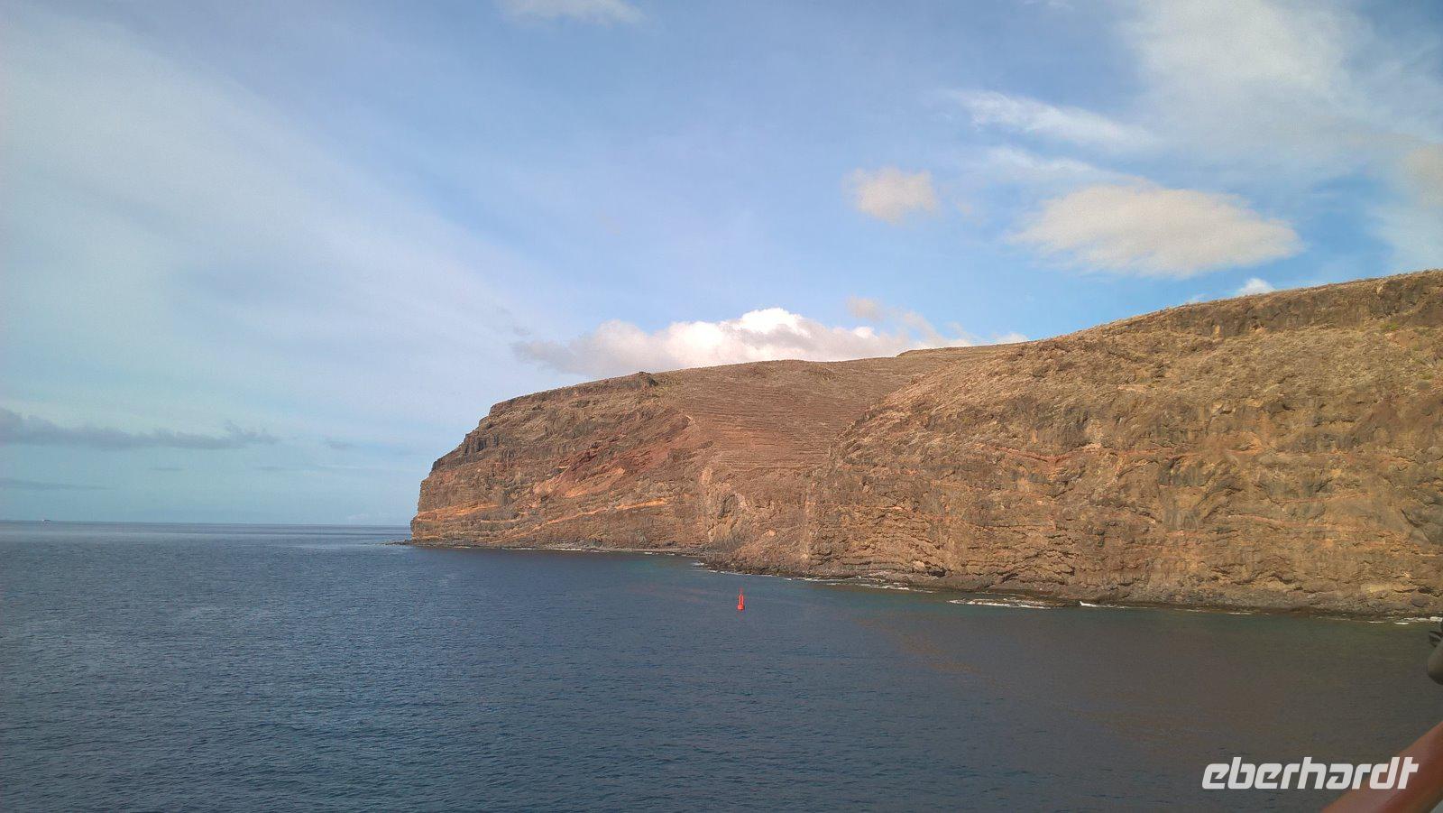 Am Montag, dem 24.4.2017, unserem 6. Reisetag stehen wir alle schon sehr früh auf. Kurz vor 8h werden wir vom Bus abgeholt und zum Fährhafen gebracht. Mit Navieras Armas erleben wir eine schöne ruhige Überfahrt nach San Sebastian de La Gomera. Nur leider schlafen die Wale noch, auf die einen Blick zu werfen wir alle gehofft hatten.