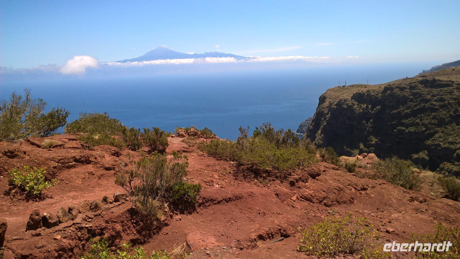 Die Seilbahn bringt uns bis auf 3.555 Meter. Dort oben angekommen packen wir bei gerade mal Null Grad erst einmal unsere Jacken aus und werden mit dem grandiosen Ausblick auf den Nationalpark und die umliegenden Inseln belohnt. Auch La Gomera, unser nächstes Ziel, begrüßt uns in einer selten dagewesenen Klarheit. Wir kommen kaum heraus aus dem Staunen. Wir nehmen uns ca 1,5 Std Zeit für Spaziergänge und Fotoshootings auf dem Berg.
