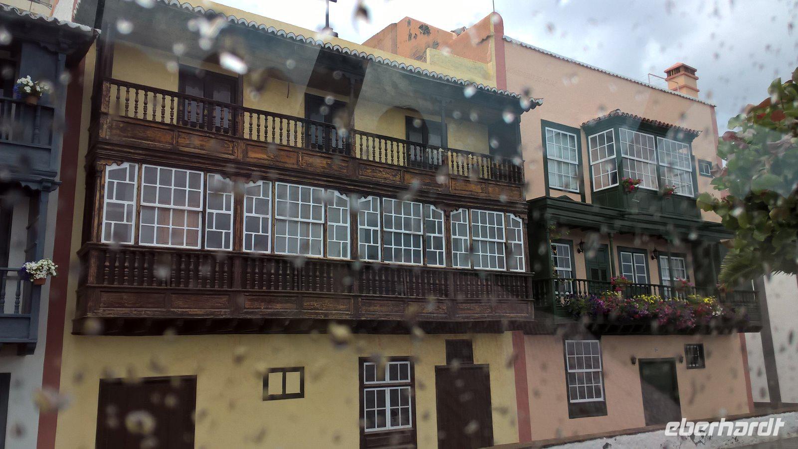 So starten wir also am 9.Tag unserer Reise, dem 27.4.2017, um 9 Uhr nach Los Cancajos. Nach einer Stadtführung durch Santa Cruz besuchen wir das Seidenmuseum, von dem sich auch nach fast einer Stunde einige Gäste kaum mehr trennen können, zu interessant sind doch die Ausführungen der dortigen Führerin. Auf der Weiterfahrt nach El Paso besuchen wir noch die „Placa Glorietta" ein Platz, nein ein kleiner Park, der ein wenig an Hundertwasser erinnert. In Tazacorte legen wir unsere Mittagspause ein.