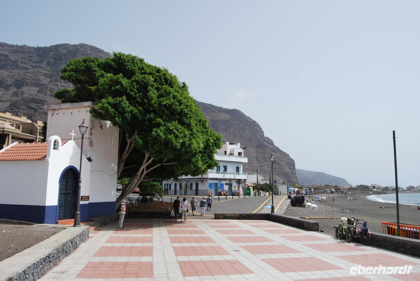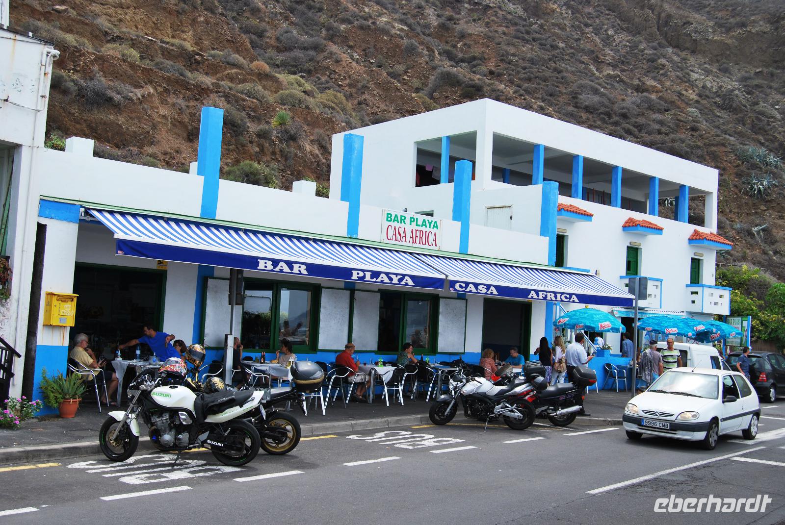 Der nächste Halt war am Mirador de Igualero. Von dort hatten wir einen schönen Ausblick auf den 1.241 Meter hohen Tafelberg, der aussieht, als hätte ihm jemand die Spitze gerade abgeschnitten. Weiter fuhren wir über Chipude nach el Cercado, wo wir eine kleine Café-Pause machten und auch von einem süßen Gomeron, einem Schnaps mit Palmenhonig, probierten. Gegen Mittag landeten wir am Strand von Valle Gran Rey. In einem der gemütlichen Hafenrestaurants haben wir gegessen. Anschließend genossen wir noch Freizeit in der Bucht, bevor wir zu unserem Hotel nahe dem Zentrum von San Sebastián gelangten.