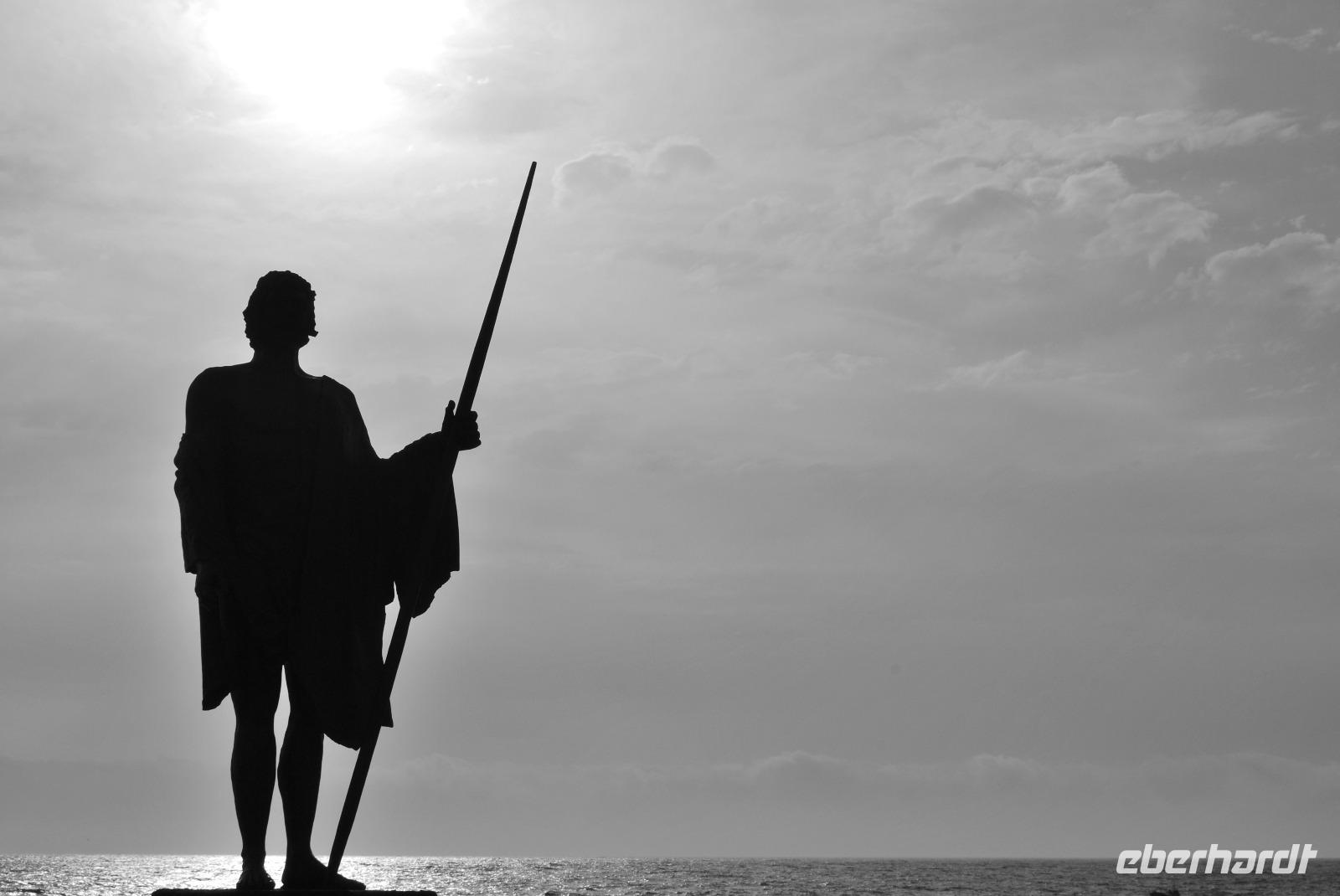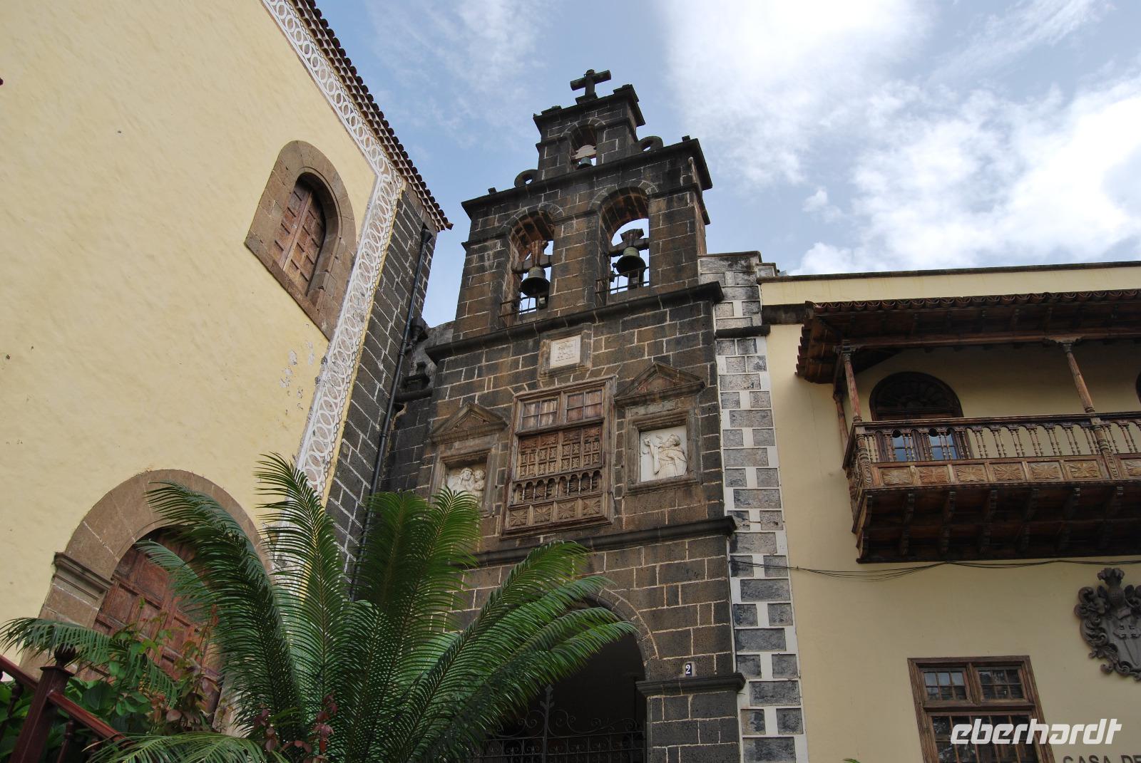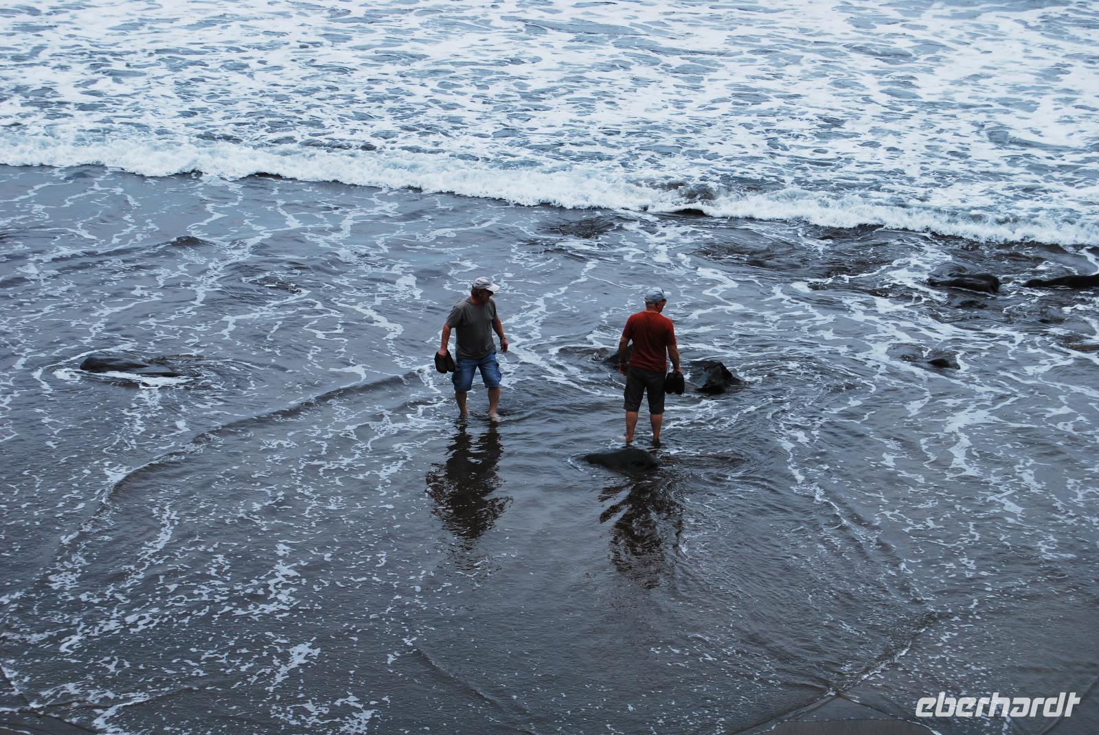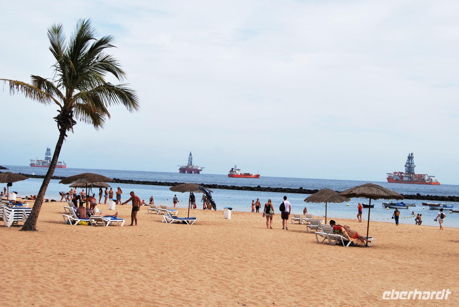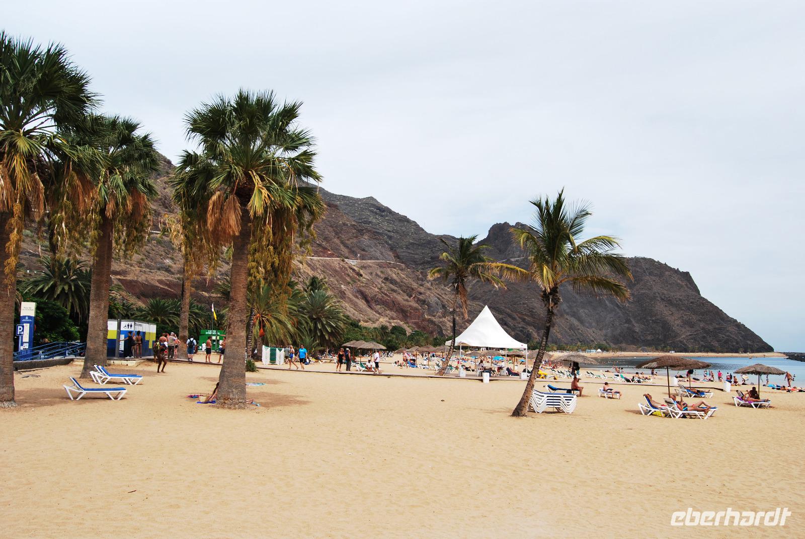 Nach dem ausgiebigen Frühstück machten sich zwei Drittel der Reisegruppe auf zur Busstation. Gemeinsam mit einigen anderen Urlaubern wollten wir den Norden von Teneriffa entdecken. Unser örtlicher Guide Christophe für diesen Tag meisterte die Tour in drei Sprachen - Englisch, Spanisch und Deutsch. Mit dem Bus ging es an die nördliche Spitze nach La Laguna. Im Stadtteil San Christóbal, an der Plaza de Adelantado, stiegen wir aus. Es war vieles abgesperrt und ein paar Menschen liefen zusammen. Vor dem Rathaus standen ein paar hoch ausgezeichnete Soldaten und Staatsmänner, beziehungsweise -frauen. Ein großer Festakt ereignete sich. Mit Militärkapelle und etlichen Kanonenschüssen begann der Marsch auf der Calle Obispo Rey Redondo bis zur Kathedrale von La Laguna. Es wurde der Día del Christo gefeiert - eine Zeremonie einer Christus-Reliquie aus dem 15. Jahrhundert. Mit einer großen katholischen Zeremonie unter Anwesenheit der Bischöfe wurde der 14. September gefeiert und später das Kruzifix an seinen Standort, dem Franziskanerkloster von San Miguel in La Laguna, zurückgebracht. Nach ein wenig Aufenthalt in der Stadt ging es weiter zum Mirador de Jardin, von wo wir einen schönen Ausblick auf die Stadt hatten. In weiter Ferne war auch der gigantische Teide zu sehen. Unsere Fahrt führt uns weiter durch das Anaga Gebirge in den Mercedes-Wald, das ehemalige Reich des Guanchen Königs Beneharo. Gelegentlich schießen uns Rennradfahrer entgegen, für die es hier bei den glatten und kurvenreichen Straßen ein Paradies sein muss. Unsere Tour führte weiter nach Tagana, bis zur Bucht des Roque de las Bodegas, wo sich schon im 17. Jahrhundert ein wichtiger Ankerpunkt für den Weinhandel befand. Dort aßen wir zu Mittag, im Casa Africa. Ein kleiner Spaziergang am schwarzen Sandstrand durfte natürlich nicht fehlen. Zum Abschluss der heutigen Tour ging es nach San Andrés, an den Playa de las Teresitas.