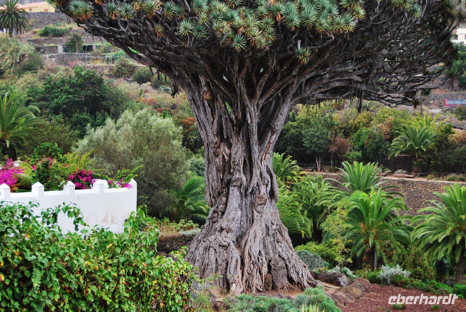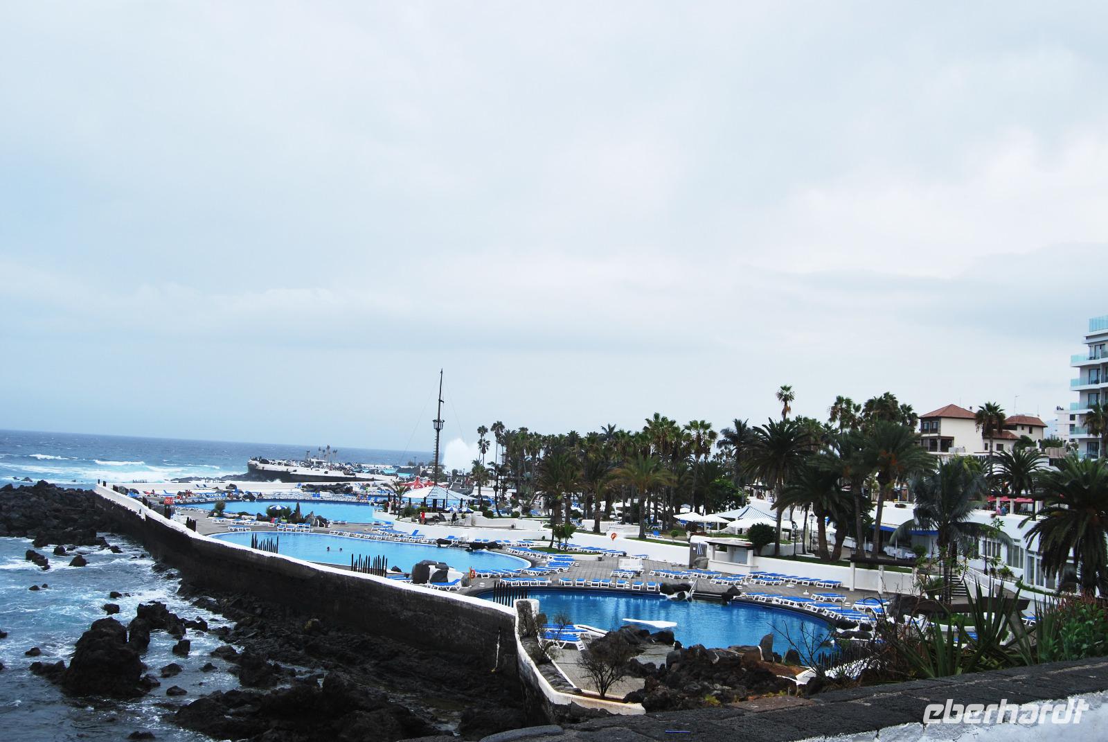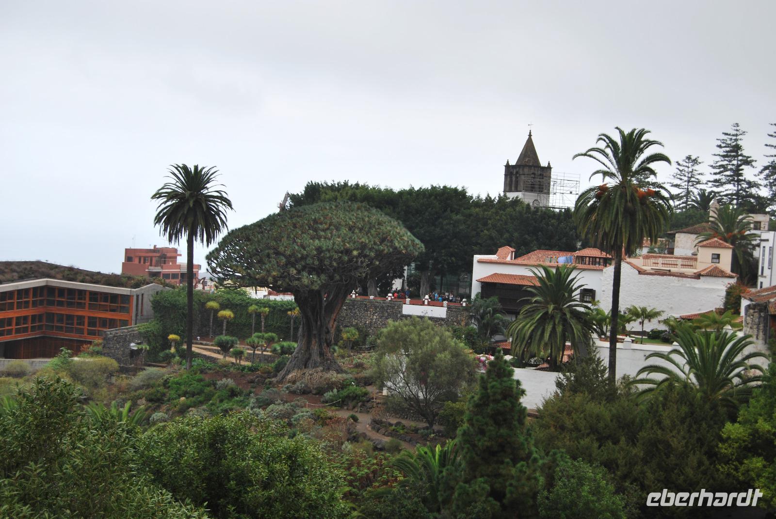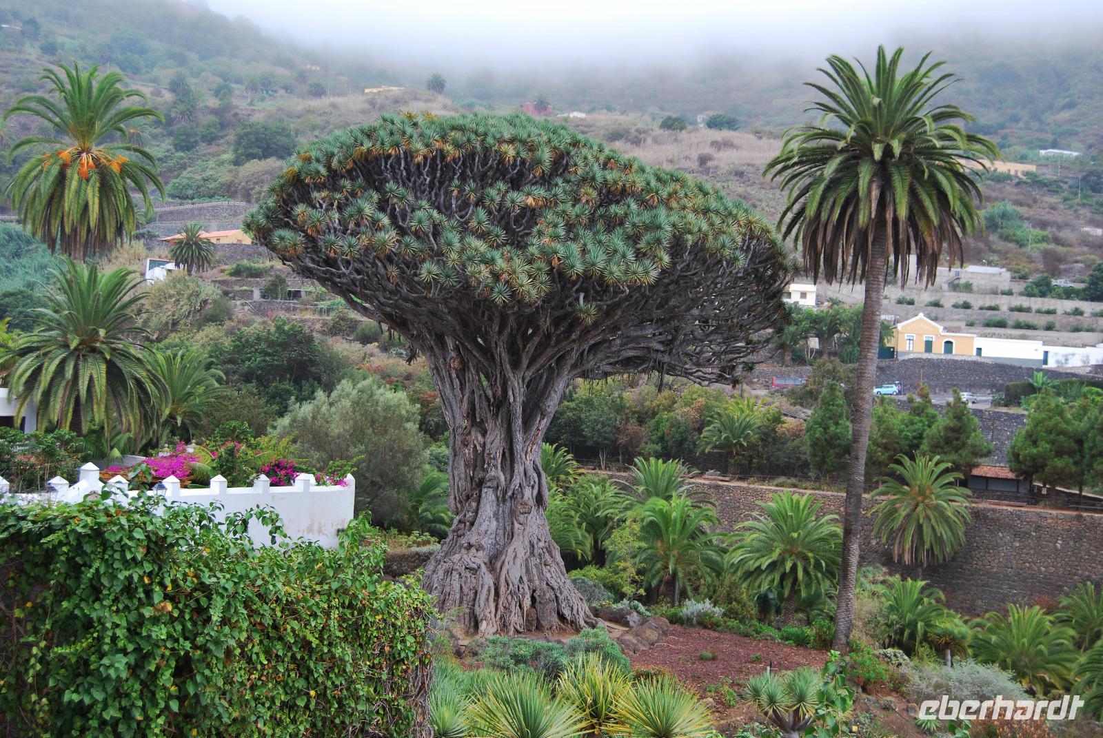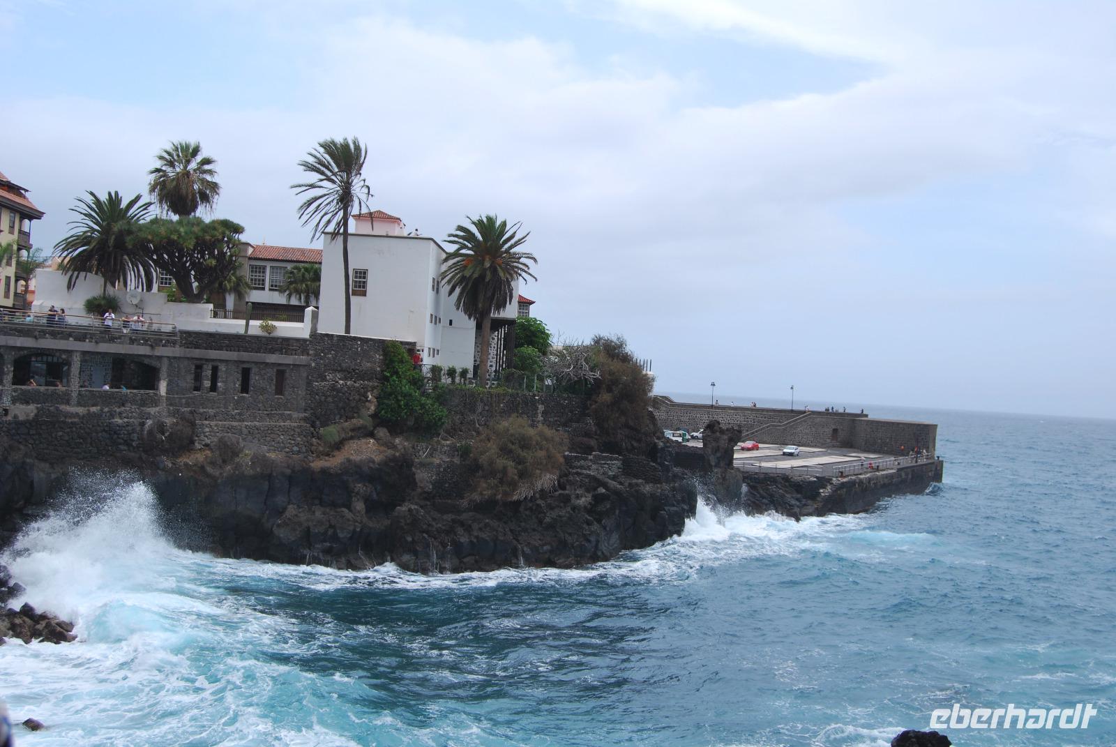 Nach kurzer Lagebesprechung mit unserem Guide Oliver mussten wir unser Programm leider kurzfristig ändern. Eigentlich wollten wir auf den Teide, dem höchsten Berg Spaniens, mit der Seilbahn fahren. Aber leider ließen die schlechten Wetterbedingungen dies nicht zu. Deshalb haben wir uns entschlossen an diesem Freitag unsere Inselrundfahrt zu machen. So fuhren wir mit unserem Panorama-Van an der Ostküste entlang in Richtung Norden nach Candelaria. Dort besichtigten wir die Basilika de la Virgen de Candelaria, ein junges Bauwerk aus dem 20. Jahrhundert. Direkt an der Kirche, bei der Brandung stehend, sind die neun Guanchen-Könige von Teneriffa verewigt. Eindrucksvoll Thronen Sie an der Küste und erinnern an vergangene Zeiten vor der Eroberung der Spanier. Ein paar Meter weiterhinten, ein wenig versteckt, findet man eine kleine Kapelle. Dort wird eine schwarze Madonna vergöttert, die der Legende nach die Ureinwohner schon vergöttert haben, da Sie eines Tages am Strand erschienen ist und ein paar Hirten verwundete und die Flucht trieb. Unser nächster Halt brachte uns nach Santa Cruz zum Auditorium. Die vom spanischen Architekten Santiago Calatrava entworfene Konzerthalle erinnert an eine gigantische Welle und zählt zu den Wahrzeichen der Stadt. Wir reisten weiter in den Nord-Osten zu den Weinbergen. Eine dunkle, graue Wolke hing über uns. Die Sonne kam nicht mehr durch und wir steckten in einem grauen Schleier. Später setzte ein leichter Nieselregen ein. Aber all das konnte uns in keinster Weise abhalten. Wir besichtigten ein Weinmuseum in el Sauzal, wo eine kleine Kostprobe nicht fehlen durfte. Kurze Zeit später waren wir in Puerto de la Cruz, dem Heimatort von Oliver. In einer kleinen Seitengasse, der Calle de Verdad, speisten einige von uns zu Mittag. Anschließend ging es nach Icod de los Vinos wo einst der Guanchen König Pelicar herrschte. Dort angekommen sahen wir den eindrucksvollen Drachenbaum, der wohl größte und älteste der Insel. Man schätzt ihn auf über 1.000 Jahre. Das Angebot der Verkostung von Palmensirup mit Rum, und auch Bananenschnapps in einem nahegelegenen Souvenirshop konnten wir natürlich nicht ausschlagen. Die Fahrt ging dann weiter zu einem Aussichtspunkt von wo wir einen herrlichen Blick auf die Steilküste Los Gigantes hatten. Wir fuhren wieder zurück zum Hotel La Siesta und bereiteten uns allmählich auf das abendliche Buffet vor.