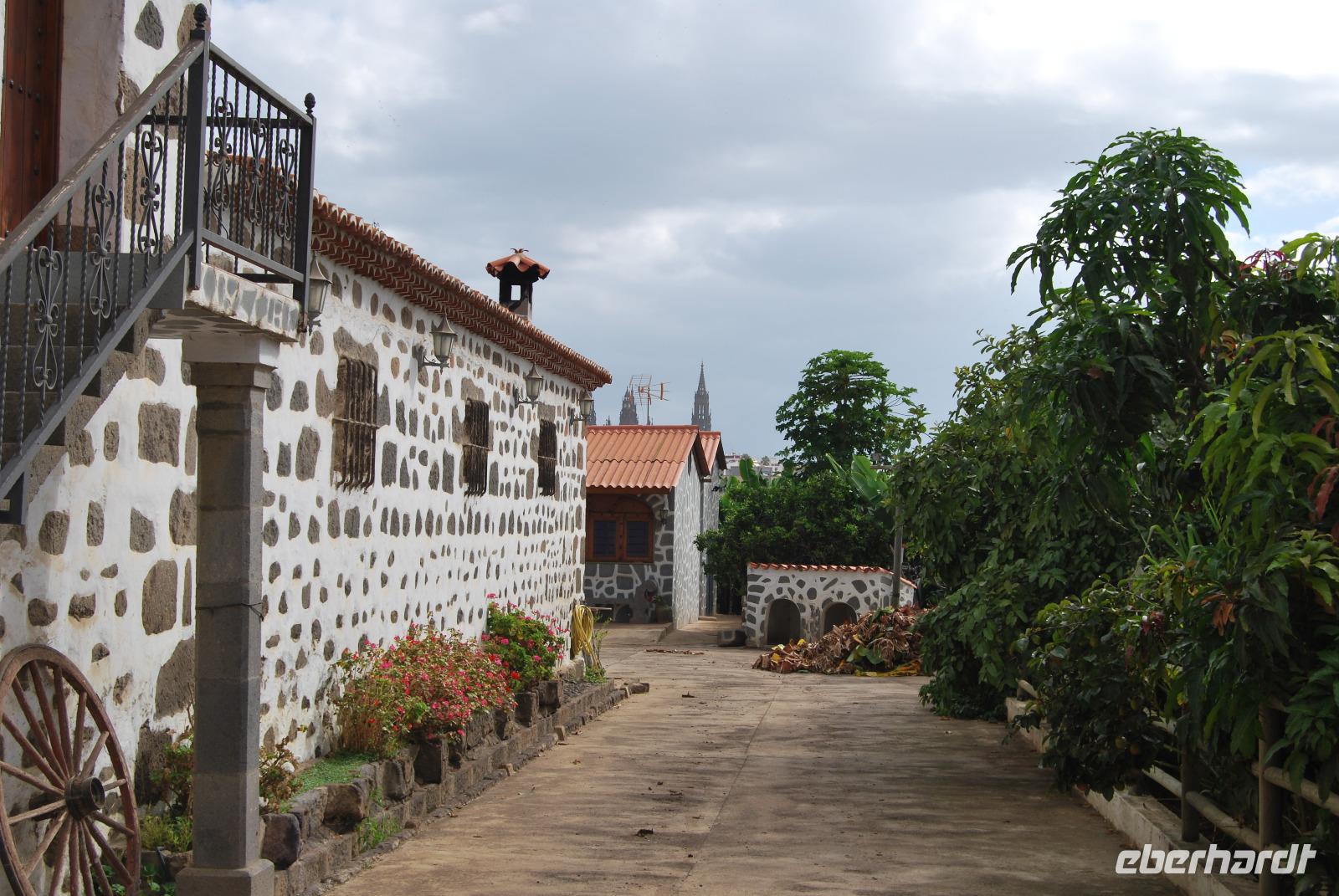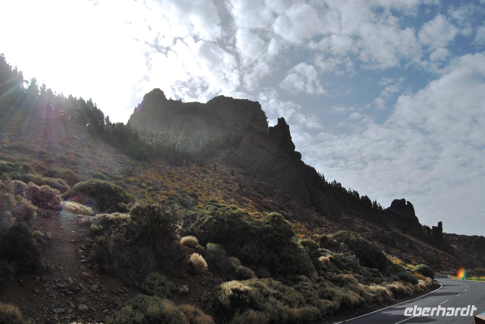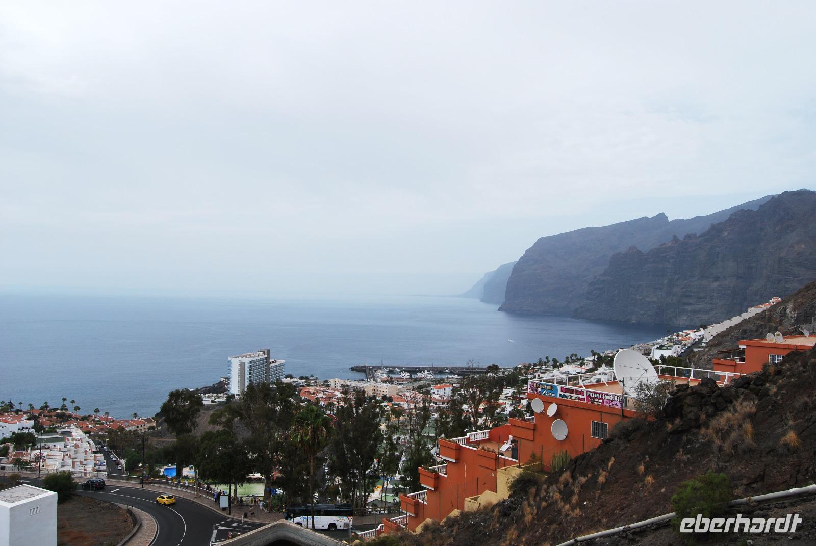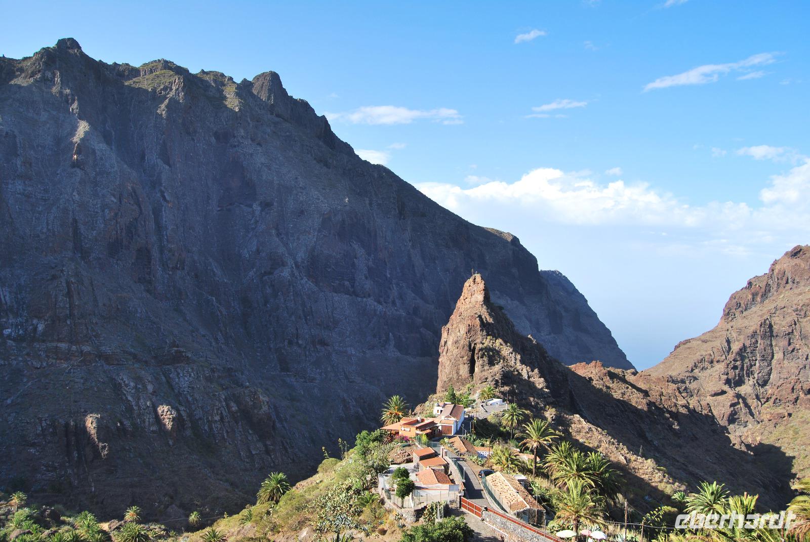 Am heutigen Tag holte uns Gisela vom Hotel ab. Wir fuhren in den Osten von Teneriffa nach Santiago del Teide. Dort bogen wir in eine schmale Straße ein und es ging steil und kurvig aufwärts. Am Pass angekommen legten wir noch einen Foto-Stopp ein und genossen die erfrischende Aussicht in das weite Land. Die Morgensonne strahlte uns entgegen. Wir öffneten das Dach unseres Panorama-Vans und fuhren den steilen Serpentinen zum Dorf Masca hinunter. Die frische Bergluft wehte uns durch die Haare. Das kleine Bergdorf, welches bis vor wenigen Jahrzehnten nur zu Fuß zu erreichen war, lud uns zu einem Spaziergang durch die urigen Wege ein. Tief in der Schlucht gelegen, hielt es schon einige steile Anstiege bereit. Nach einer kleinen Pause und einem frischen Getränk ging die Reise weiter. Wir folgten der Straße weiter Richtung Norden. Als wir um einem Bergkamm herum kamen zogen Nebelschwaden den Berg herunter. Die Wetterscheide! Wir stecken schnell in einem dichten Nebel. Das Wasser von den Passatwinden drückte an die Nordseite. In Garachico besichtigten wir die Altstadt mit Ihrem idyllischen Marktplatz und kehrten nahe der Küsten-Burg Castillo de San Miguel aus dem 16. Jahrhundert zum Mittagstisch ein. Auf dem Nachhause weg ins Hotel machten wir noch halt in einem Café und probierten den landestypischen Barraquito. Ein Café-Getränk mit Milch, Likör und Zimt und Zitrone. Die Fahrt dorthin führte uns an Lavagestein vorbei, wir sahen die Erosion von 1909 welche zu den jüngeren vulkanischen Ausbrüchen zählt. Zahlreiche Kakteen und Mandel- sowie Feigenbäume sahen wir nahe der Straße.