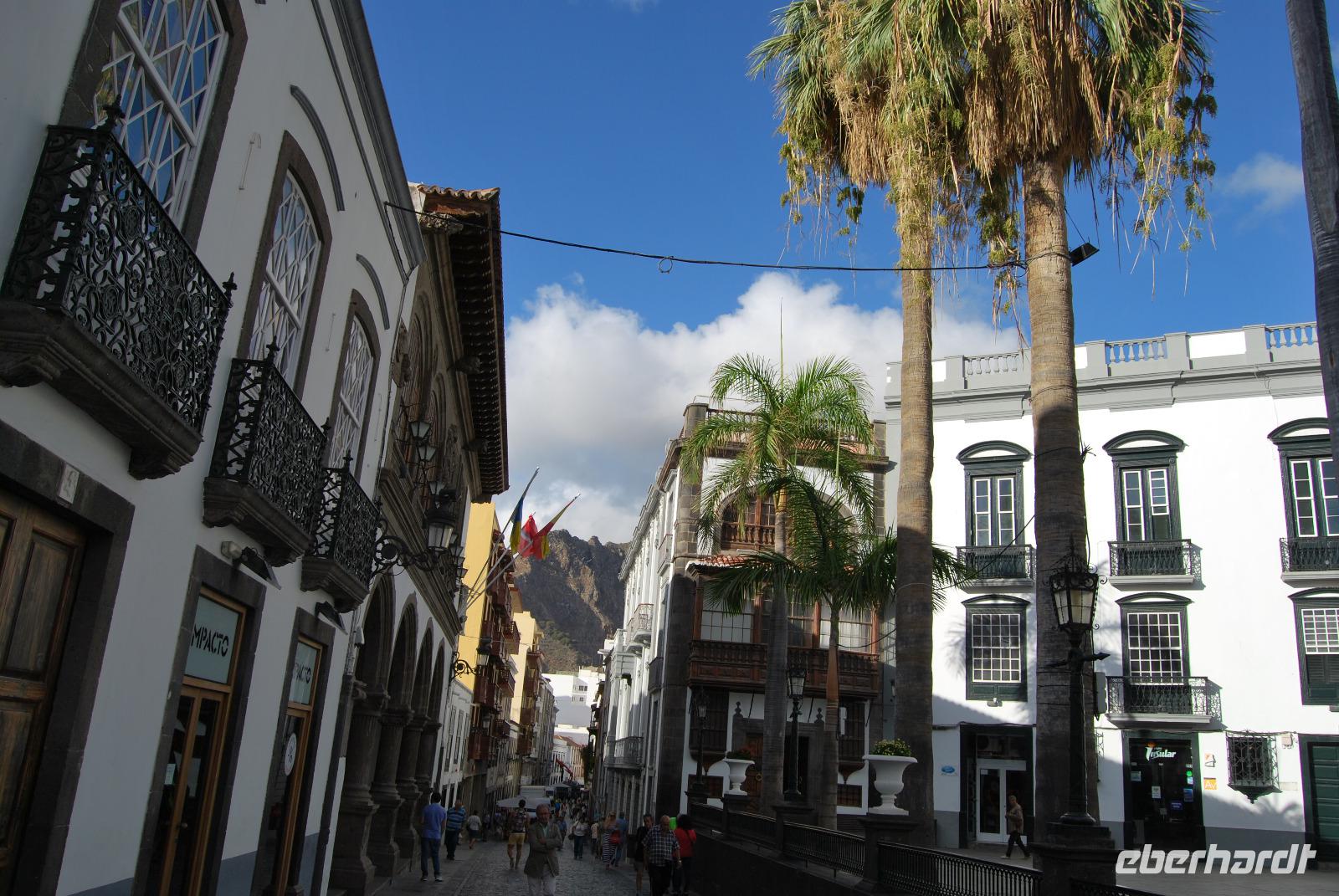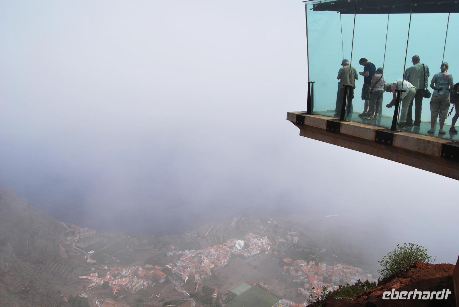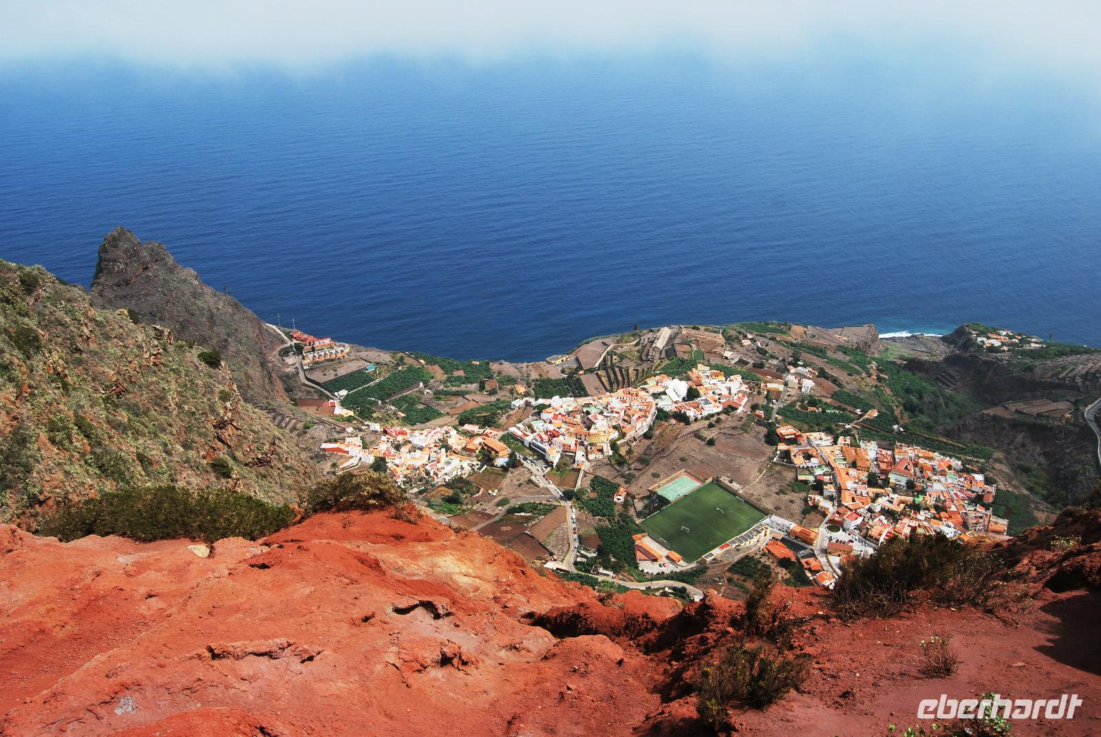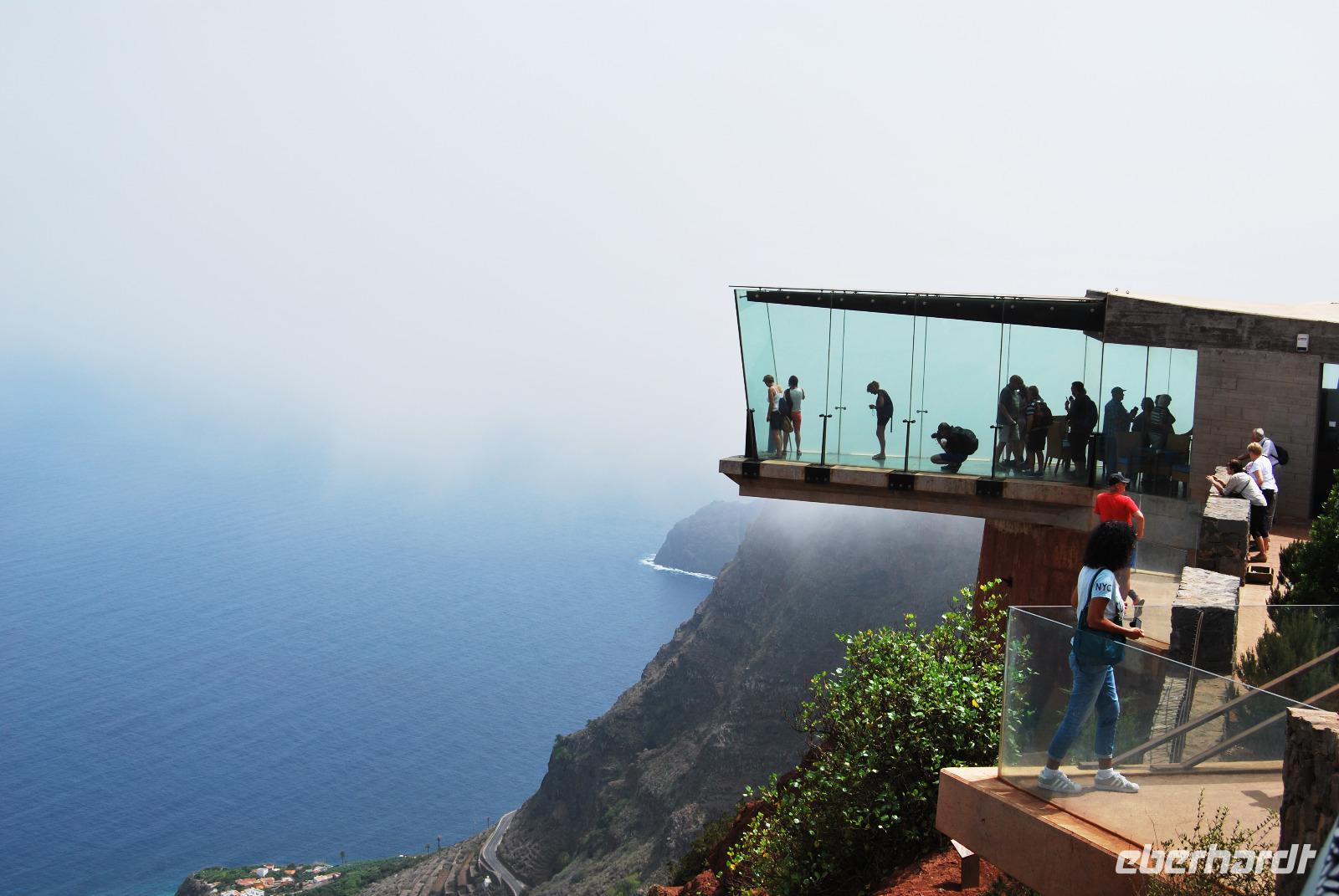 Nach dem Frühstück verladen wir wieder unser Gepäck, denn schon am Abend soll es wieder auf die nächste Insel gehen. Wir spazieren durch San Sebastián bis uns der Busfahrer wieder einsammelt. Wir nehmen diesmal die nördliche Passstraße und halten zuerst am Mirador de Manaderos. Von dort blicken wir in das Tal von Chejelipes und El Atajo. Wir fahren weiter durch den Nationalpark Garajonay, der mit seinem urtypischen Lorbeerwald beeindruckt. Ein fantastisches Lichtspiel ereignet sich bei der Fahrt durch den lichtdurchfluteten Urwald. Wir passierten Las Rosas und La Palmita. In Agulo angekommen unternahmen wir einen Spaziergang durch das eintausend Seelen Örtchen. Um zum Mittagessen zu gelangen mussten wir mit dem Bus noch eine Steile Bergwand überwinden. Hoch oben sah man schon das kleine Lokal über den Hang ragen. Die schmale Straße dorthin führte an einen kargen, feuer-roter Erde vorbei. Nachdem wir im Mirador de Abrante gegessen hatten, führten uns die Kellner die für La Gomera typische Pfeifsprache vor. Denn nur so konnten sich die Bewohner der Insel über die weiten Schluchten hinweg unterhalten. Am Nachmittag ging es dann zurück nach San Sebastián. Auf dem Weg dorthin, hielten wir noch einmal am Rocke de Sombrero, welches ein gewaltiges Felsmassiv mit gewaltige Schluchten ist. Ein wirklich spektakuläres Panorama!