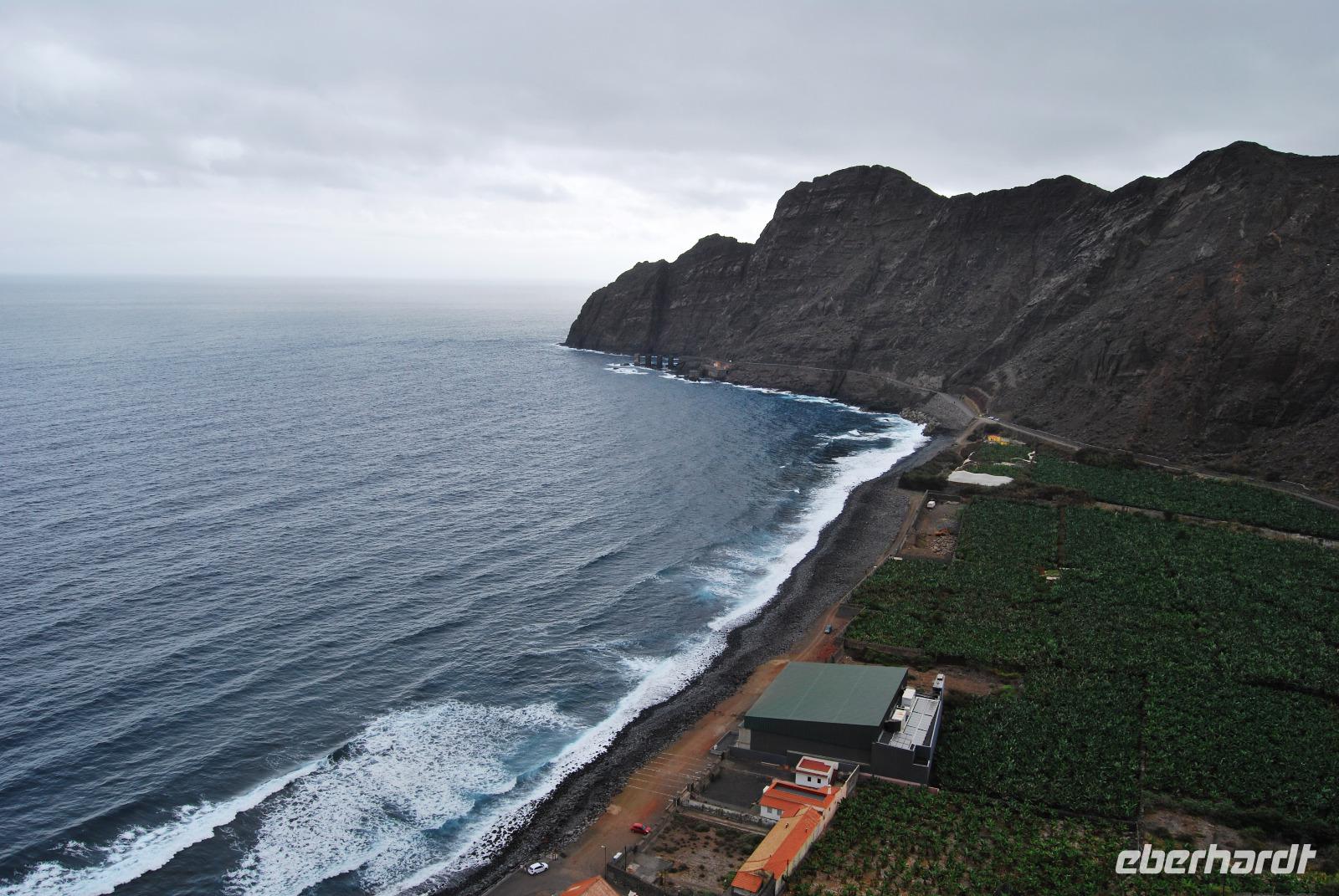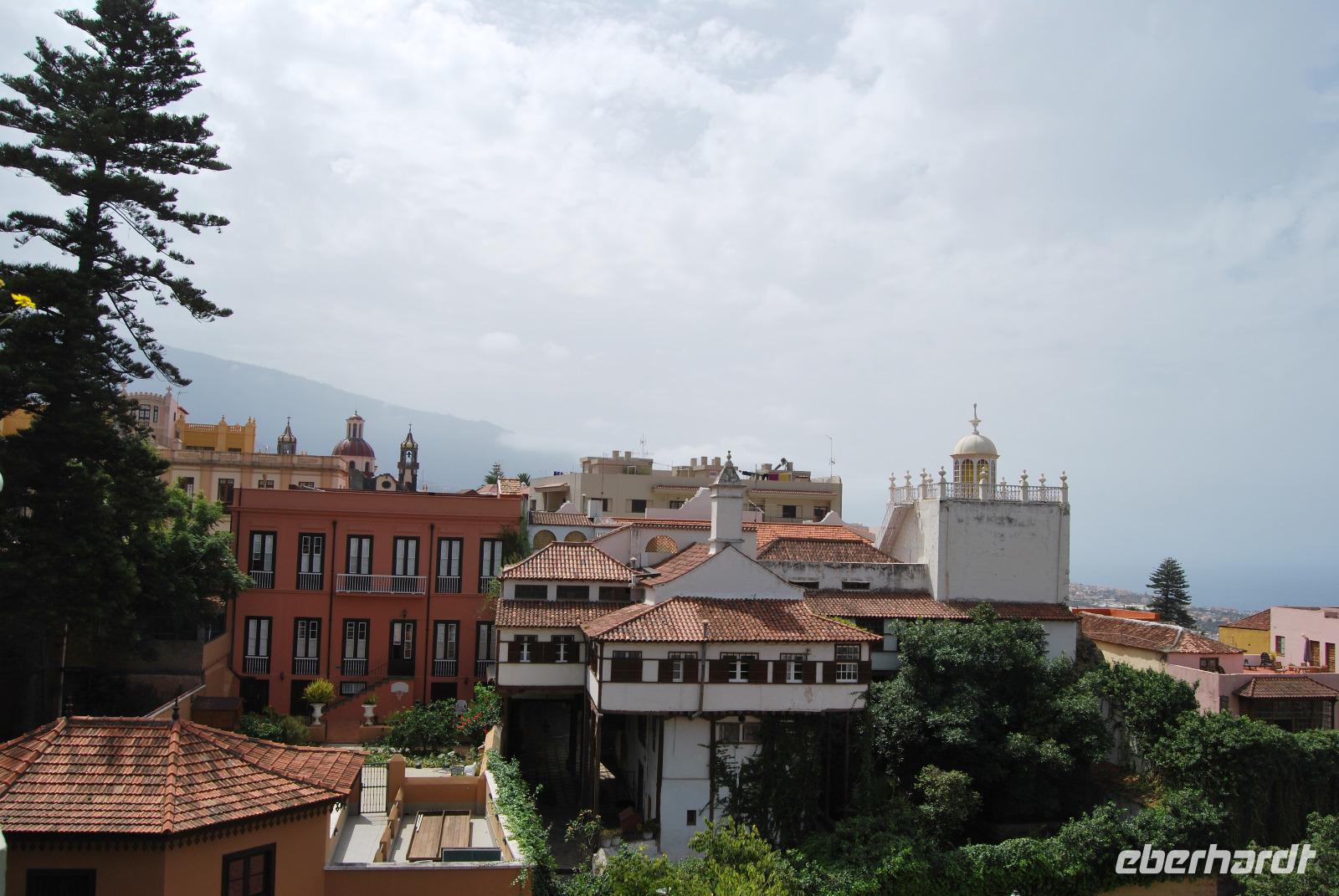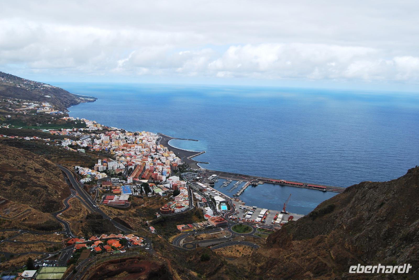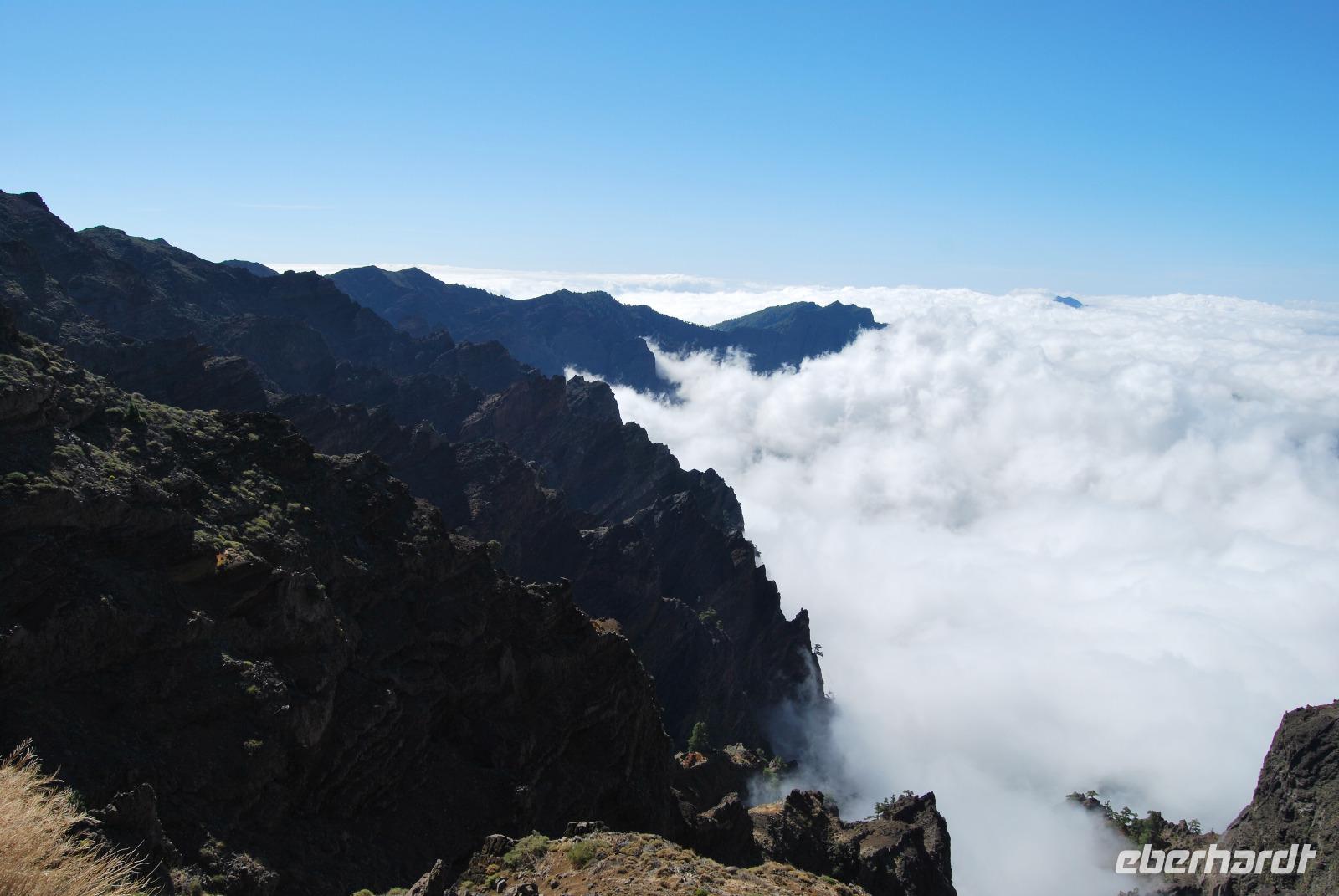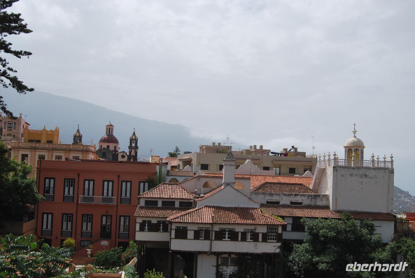 Am Morgen mussten wir unsere Zimmer schon wieder räumen. Denn am Abend wollten wir wieder weiterziehen. Aber heute stand noch großes auf dem Plan. Zuerst begann unser Tag aber gemütlich - bei einem Spaziergang durch die Innenstadt von Santa Cruz kamen wir am Rathaus, der Kirche sowie der Markthalle vorbei. Von der Stadt aus ging die Tour die Berghänge hinauf. Ein geniales Panorama offenbarte sich. Mit dem Blick über die Wolken konnte man sogar den Teide auf der etwas 120 Kilometer entfernten Insel Teneriffa sehen. Auf dem Weg zu dem Roque de los Muchachos hielten wir noch auf der Nordseite des Kraters am Mirador de los Andenes. So hatten wir noch einmal die Möglichkeit in den großen Topf des Nationalpark Caldera de Taburiente zu blicken, soweit es die Wolkendecke zuließ. Dann auf 2.426 Meter Höhe erblickten wir die wundersame Weite des Landes und auch, in gewisser Weise, die Schönheit der Observatorien. Ein Ort an dem viele Nationen zusammen kommen und versuchen in eine unbekannte Welt zu blicken. Dann verließen wir das Hochgebirge wieder und kehrten in ein kleines Örtchen nahe Puntagorda ein. Im Restaurant Pino de la Virgen gab es traditionelle Speisen von Hase und Ziege. Am Nachmittag gab es noch ein Café am Aussichtspunkt el Time an der Schlucht der Todes Ängste, von wo man auf Los Llanos blicken konnte. Dabei wurde noch der ein oder andere Barraquito geschlürft...