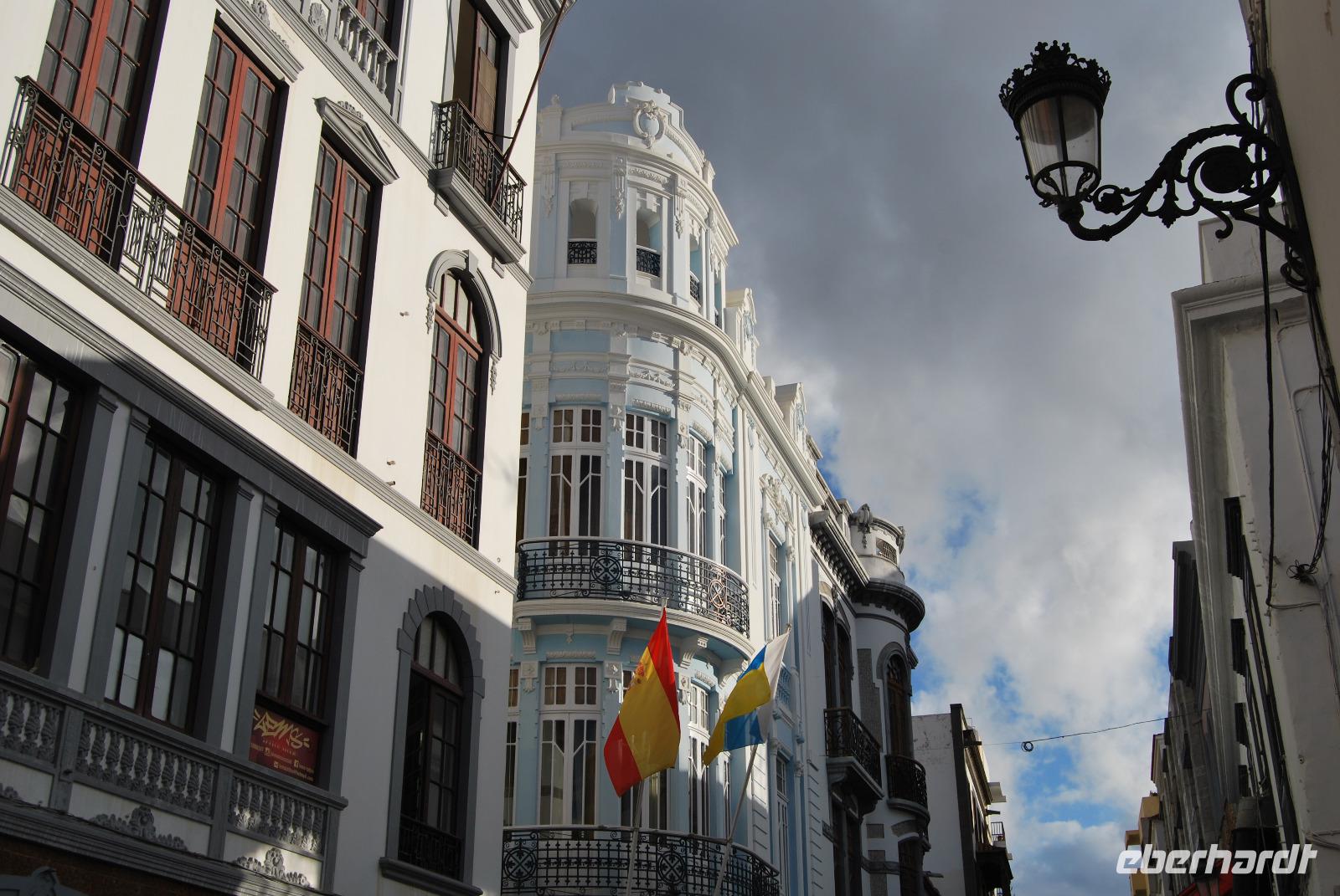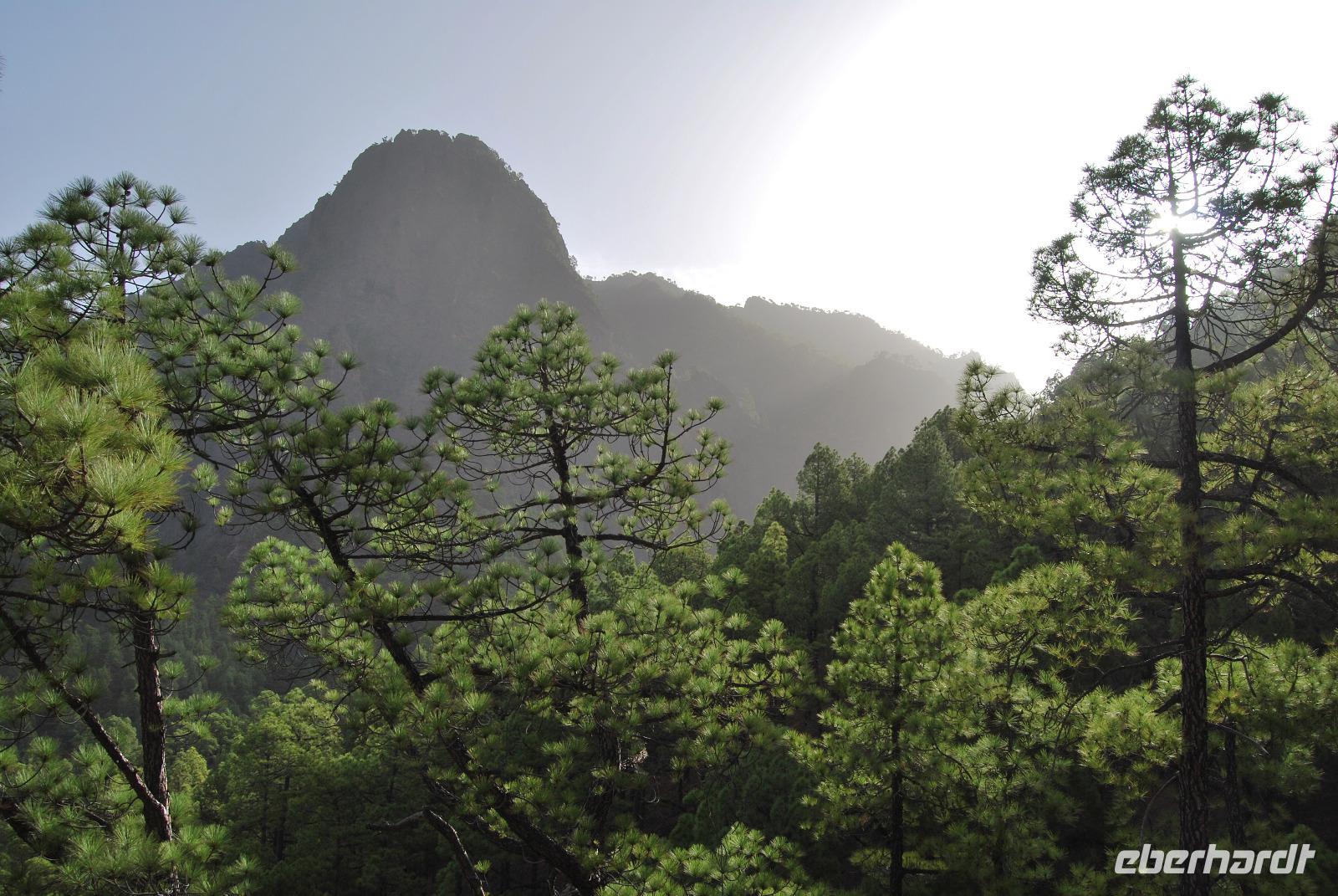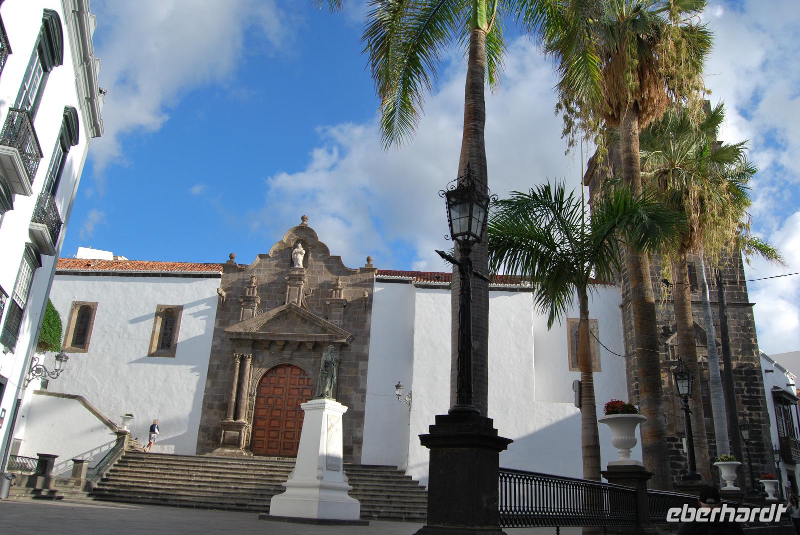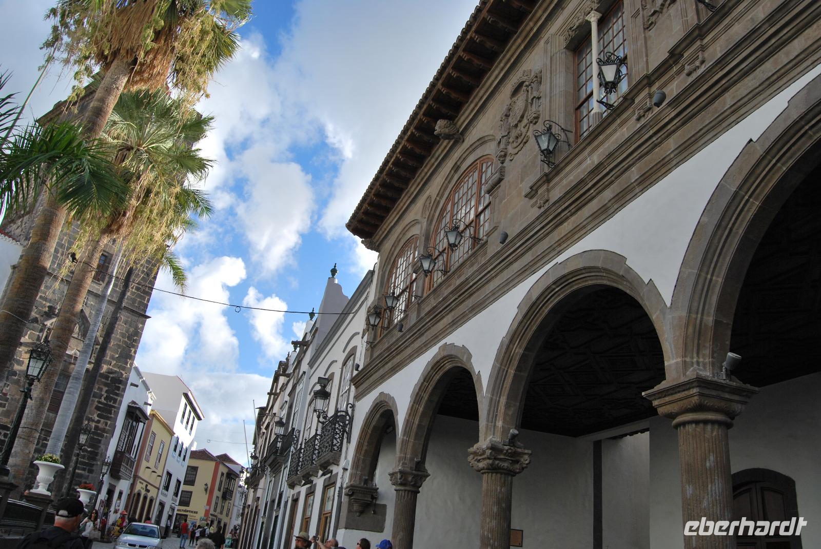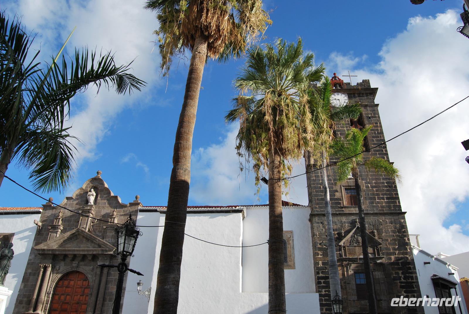 Am Morgen mussten wir unsere Zimmer schon wieder räumen. Denn am Abend wollten wir wieder weiterziehen. Aber heute stand noch großes auf dem Plan. Zuerst begann unser Tag aber gemütlich - bei einem Spaziergang durch die Innenstadt von Santa Cruz kamen wir am Rathaus, der Kirche sowie der Markthalle vorbei. Von der Stadt aus ging die Tour die Berghänge hinauf. Ein geniales Panorama offenbarte sich. Mit dem Blick über die Wolken konnte man sogar den Teide auf der etwas 120 Kilometer entfernten Insel Teneriffa sehen. Auf dem Weg zu dem Roque de los Muchachos hielten wir noch auf der Nordseite des Kraters am Mirador de los Andenes. So hatten wir noch einmal die Möglichkeit in den großen Topf des Nationalpark Caldera de Taburiente zu blicken, soweit es die Wolkendecke zuließ. Dann auf 2.426 Meter Höhe erblickten wir die wundersame Weite des Landes und auch, in gewisser Weise, die Schönheit der Observatorien. Ein Ort an dem viele Nationen zusammen kommen und versuchen in eine unbekannte Welt zu blicken. Dann verließen wir das Hochgebirge wieder und kehrten in ein kleines Örtchen nahe Puntagorda ein. Im Restaurant Pino de la Virgen gab es traditionelle Speisen von Hase und Ziege. Am Nachmittag gab es noch ein Café am Aussichtspunkt el Time an der Schlucht der Todes Ängste, von wo man auf Los Llanos blicken konnte. Dabei wurde noch der ein oder andere Barraquito geschlürft...