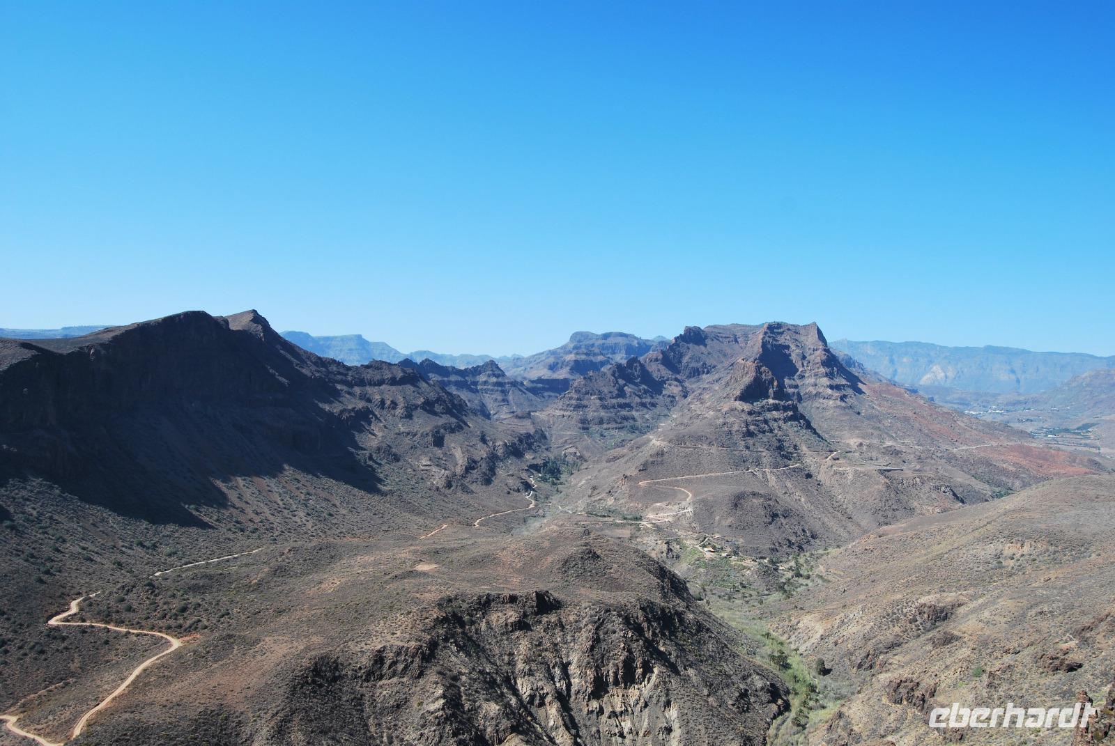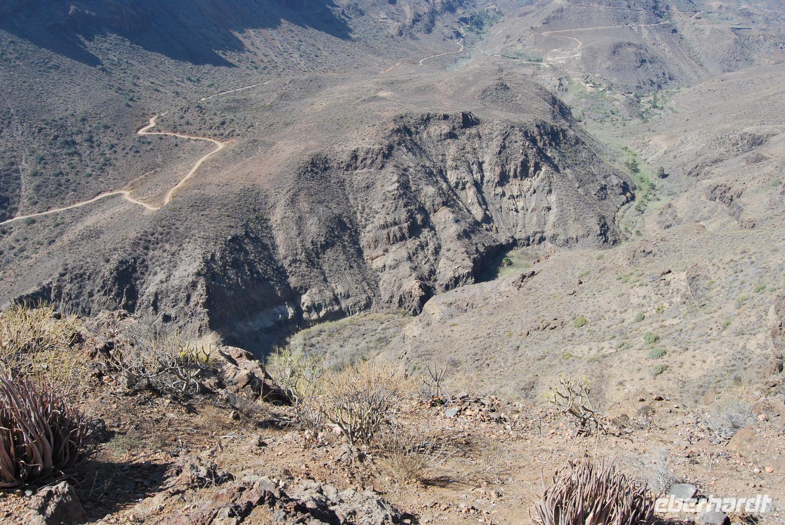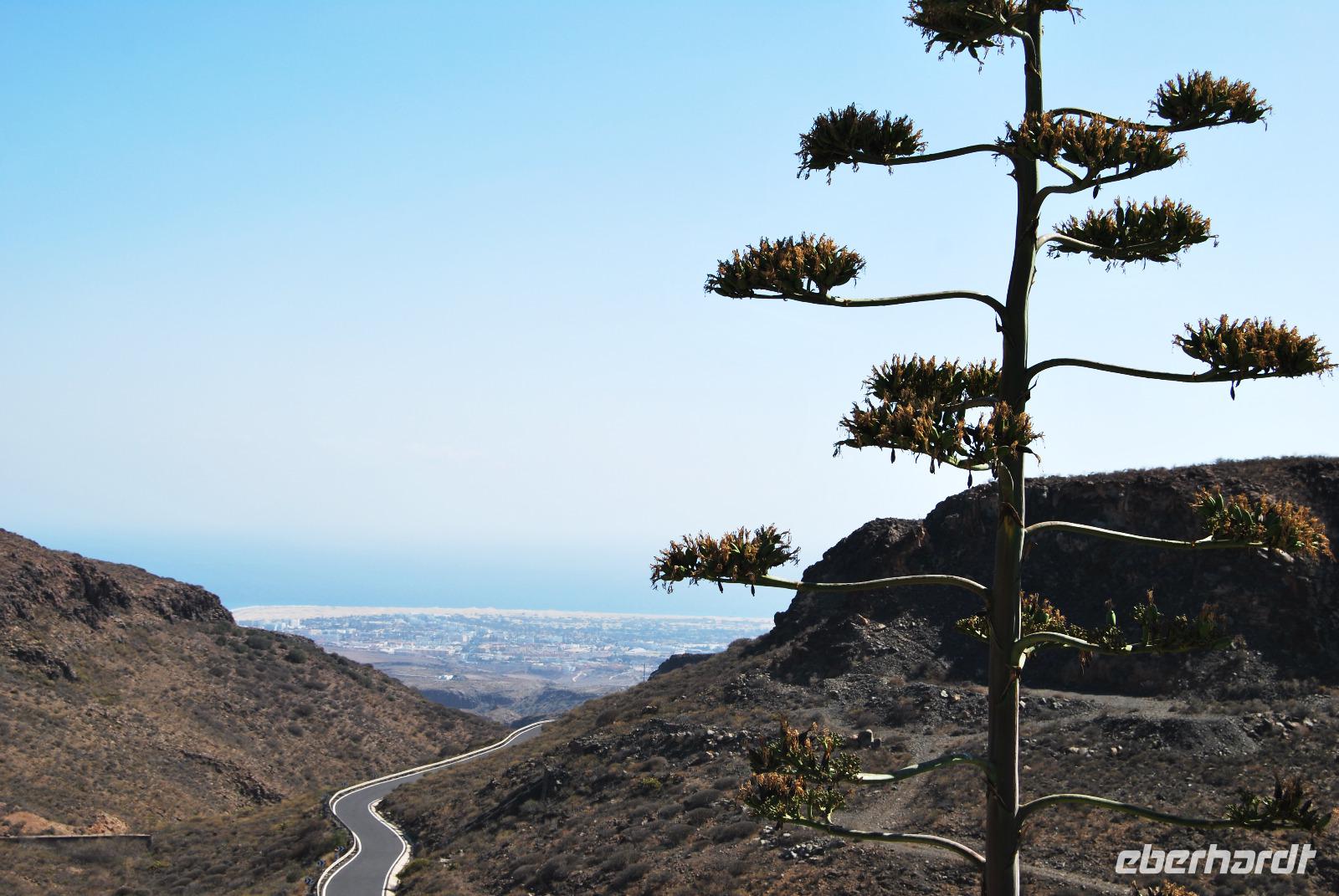 Nach diesen erschreckenden Bildern fuhren wir zum Mirador de Tunte um uns zu erfrischen. Wenig später ging es weiter durch einen gewaltigen Canyon mit idyllischen Bergdörfern wie Fataga und dem Tal der tausend Palmen - einer kleinen Oase mit Kamel-Farm. Nun war der Abend schon näher gerückt und es ging zurück in das Hotel, so dass wir uns auf das Abendessen vorbereiten konnten.