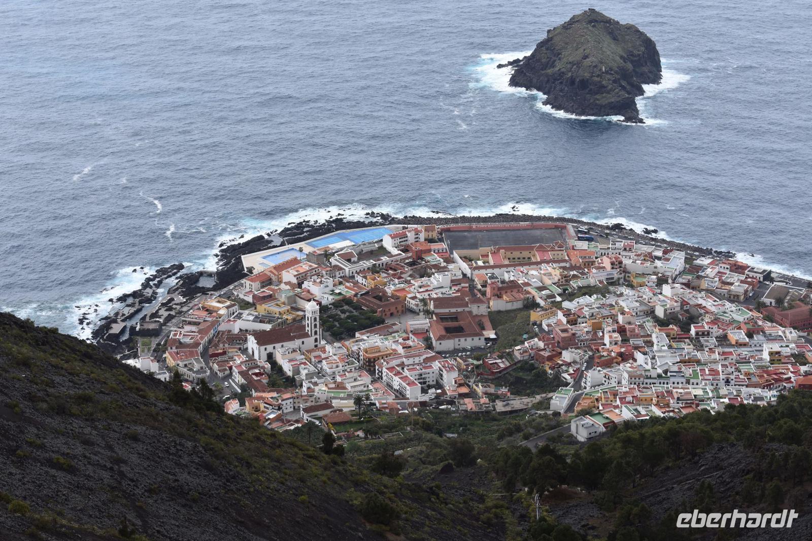 Am Mirador de Garachico nutzten wir die Gelegenheit für ein Barraquito und sahen uns die 1706 vom Vulkan verschluckte Stadt von oben an, die in den Jahren danach wiederaufgebaut wurde.