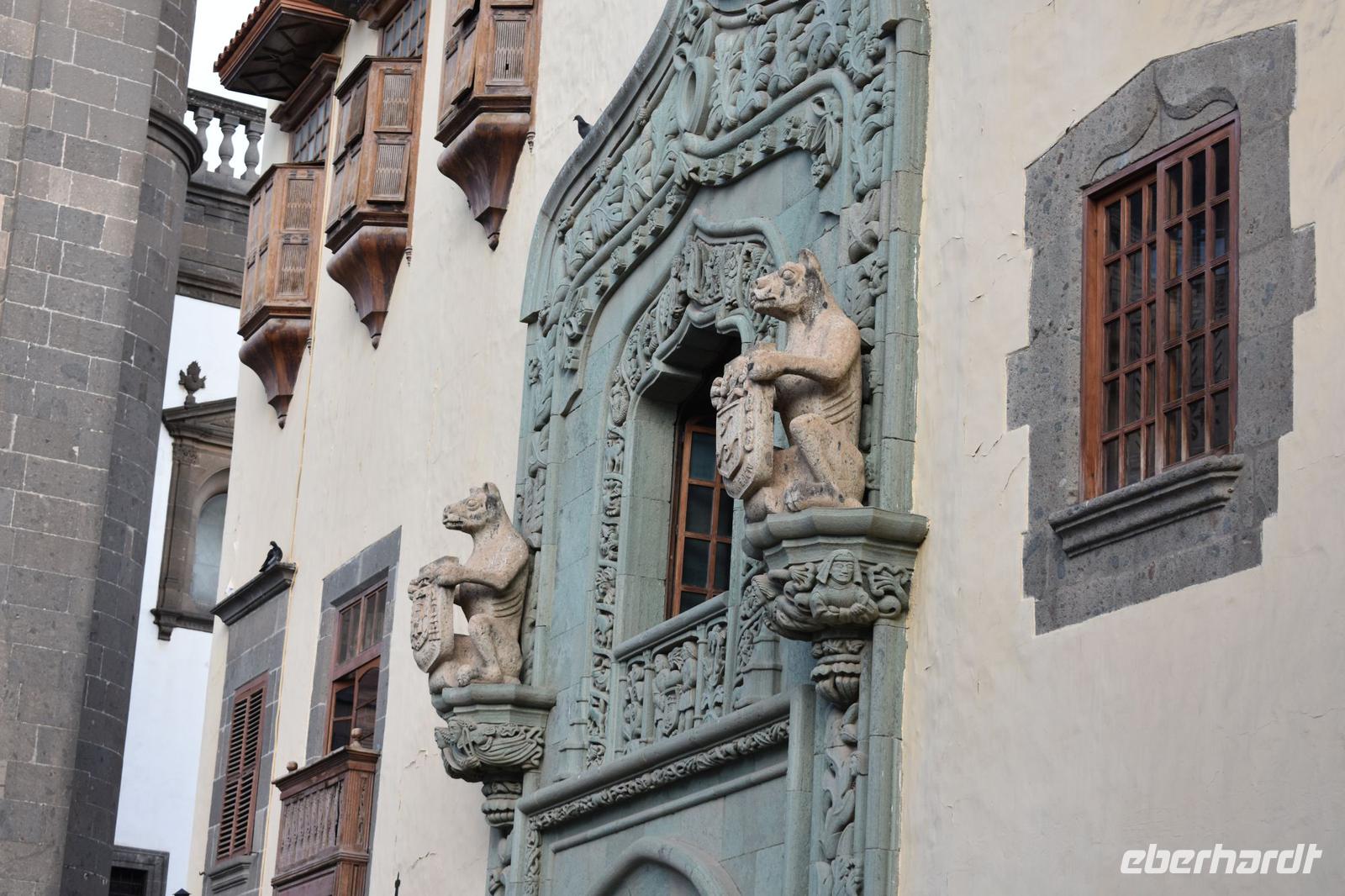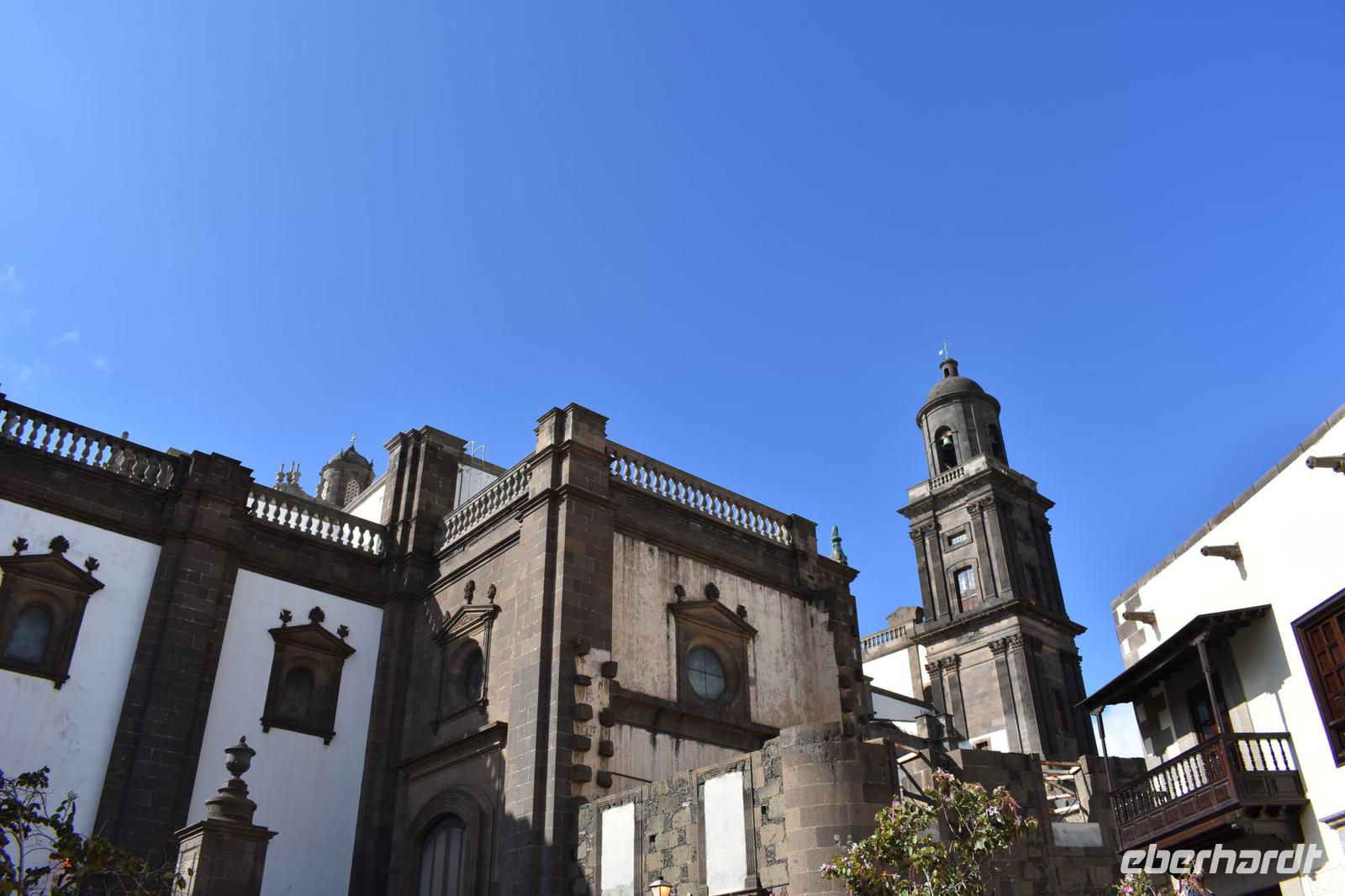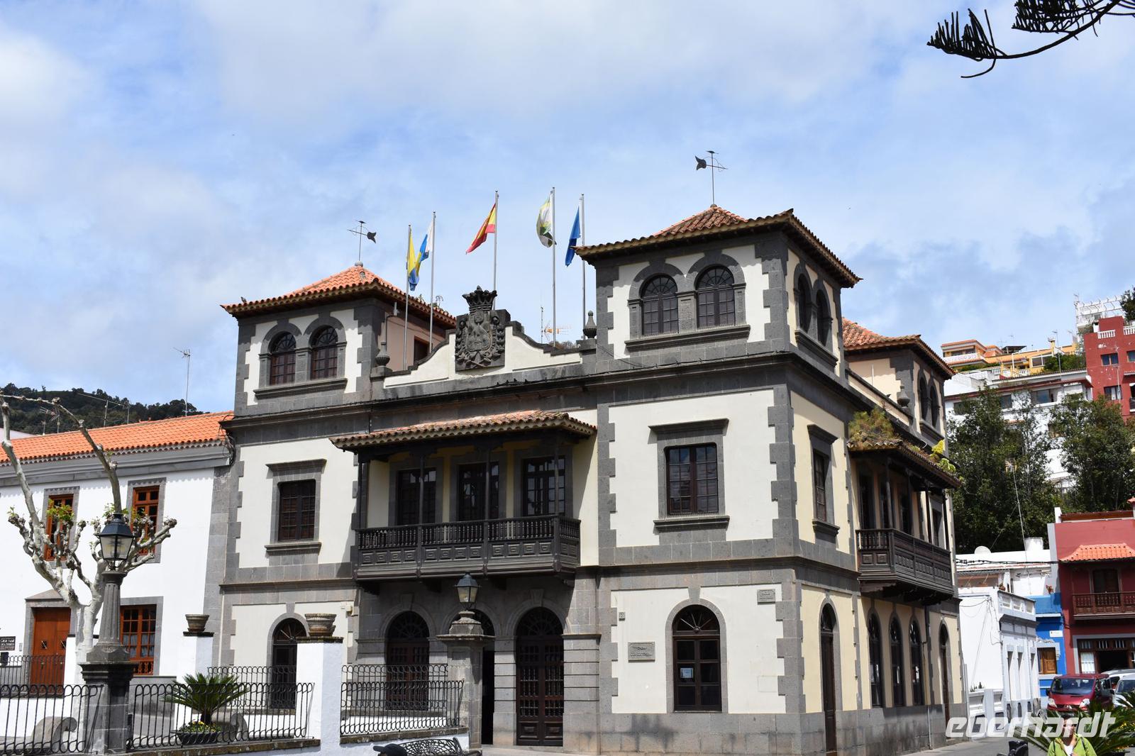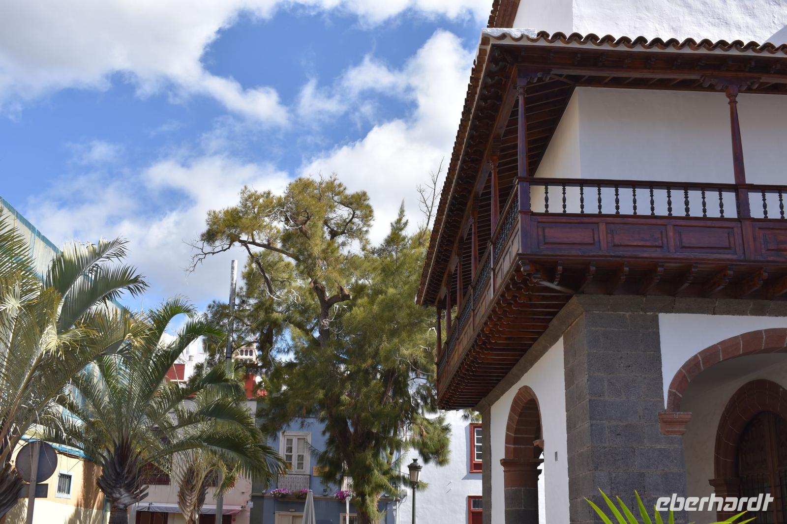 Wir setzten unsere Inselrundfahrt mit dem Besuch in Teror fort. Der zwölfeinhalb Tausend Einwohner Ort lockt viele Besucher mit einer wunderschönen Wallfahrtskirche. Der Dorfkern hatte auch ein paar schöne kanarische Holzbalkone zu bieten. Wir schlenderten also bei herrlichem Wetter die Calle Real de la Plaza hinunter bis zur Basilika de Nuestra Señora del Pino. Das Gotteshaus wurde zwischen 1760 und 1767 im neoklassizistischen Stil erbaut und birgt im Innern einen vergoldeten Barockaltar mit der holzgeschnitzten Statue der Jungfrau del Pino, der Schutzpatronin der Insel Gran Canaria. Wir drehten eine Runde um die Kirche herum, sahen unter anderem noch das Haus der Stadtverwaltung im kanarischen.