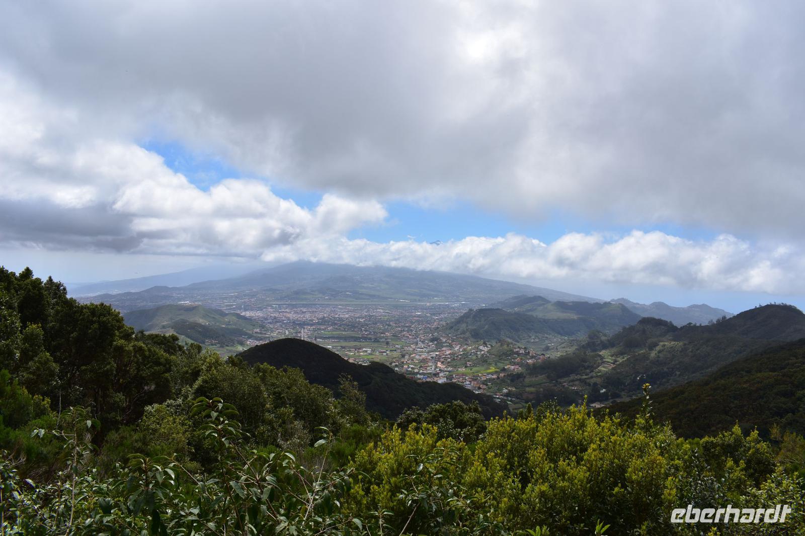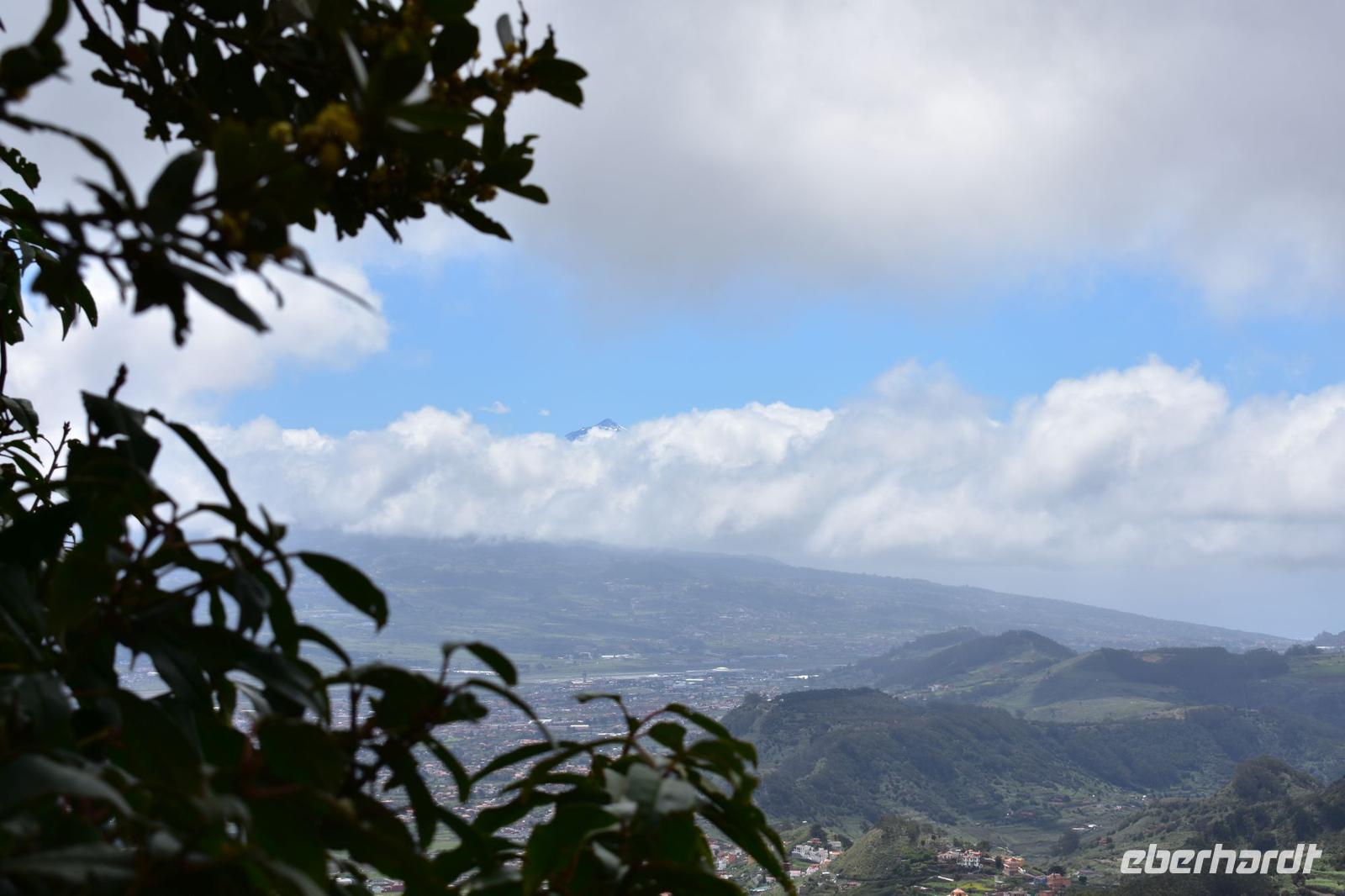 Weiter fuhren wir in den Wald des Parque Rural de Anaga. Hier war es nun wieder ein bisschen frischer. Am Cruz del Carmen hatten wir aber Glück! Der Wald, der überwiegend in einer dichten Nebelwolke verschleiert ist, ließ uns an diesem Tag freie Sicht. Mit grandioser Aussicht konnten wir ganz La Laguna sehen und sogar die Spitze vom Teide blickte aus ein paar leichten Wolken heraus. Dennoch gab es einen Temperaturunterschied von Küsten- zu Bergregion von etwas mehr als zehn Grad Celsius.