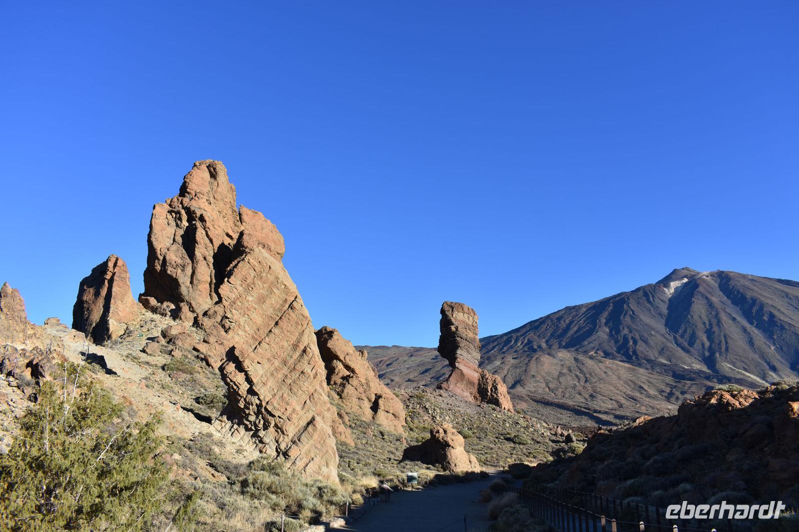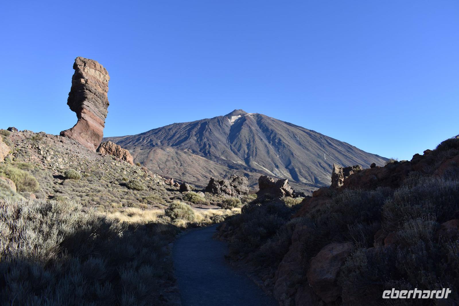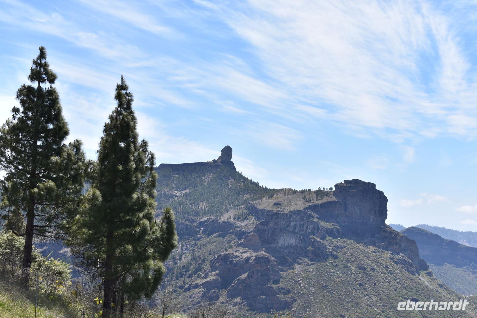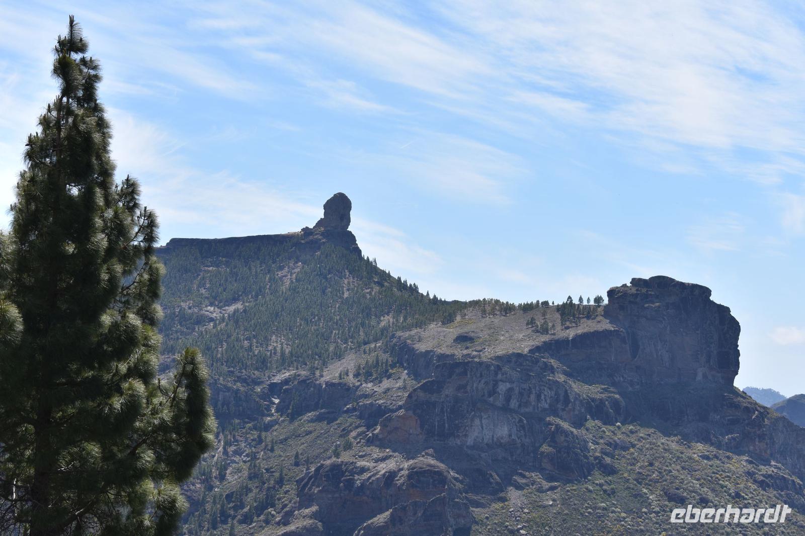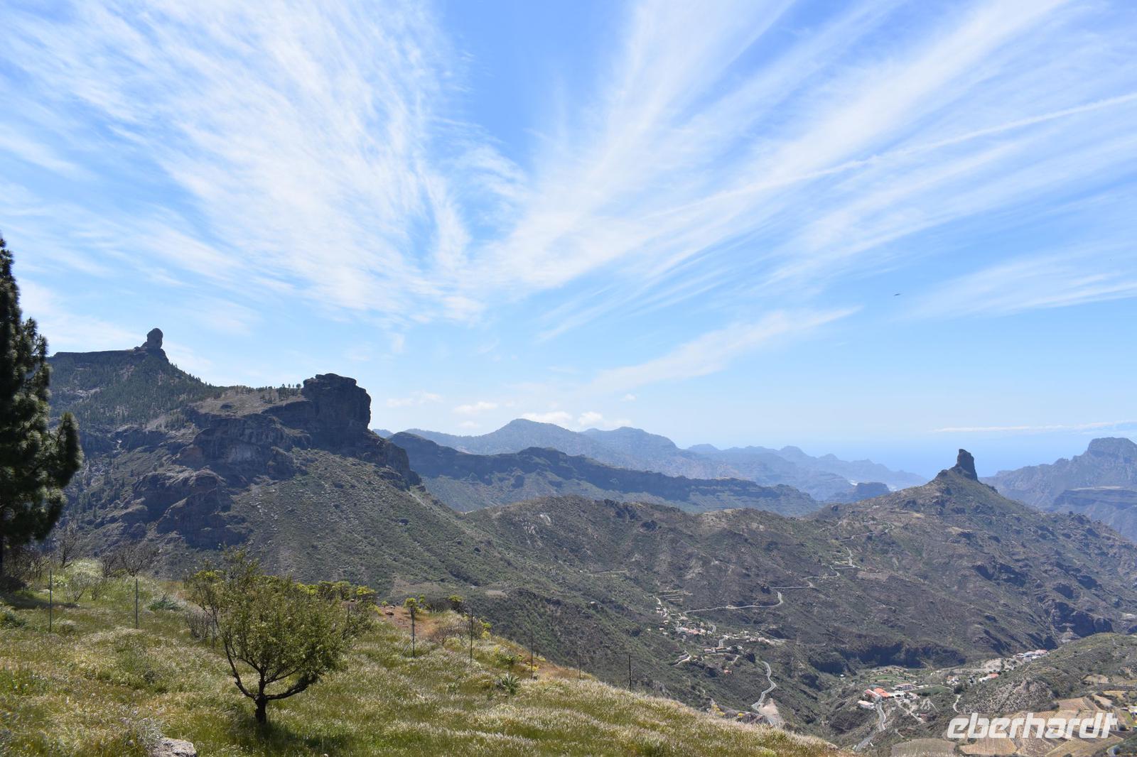 Am Aussichtspunkt Balcón de Zamora gab es leckere kanarischen Speisen zum Mittag. Von dort hatte man auch noch eine schöne Aussicht auf den Ort Teror. Nach diesem köstlichen Drei-Gänge-Menü ging die Fahrt weiter. Über den Barranco de la Virgen bis zum Aussichtspunkt Degollada Becerra von wo aus wir einen grandiosen Ausblick auf den Roque Nublo hatten. Der Roque Nublo, mit seinen 1.813 Metern über dem Meeresspiegel, zählt neben dem Pico de las Nieves mit 1949 Metern über dem Meeresspiegel zu den höchsten Erhebungen der Insel Gran Canaria. Doch der Himmel war heute so klar, dass wir auch nochmal die Spitze des Teide, des höchsten Berg Spaniens, sehen durften.