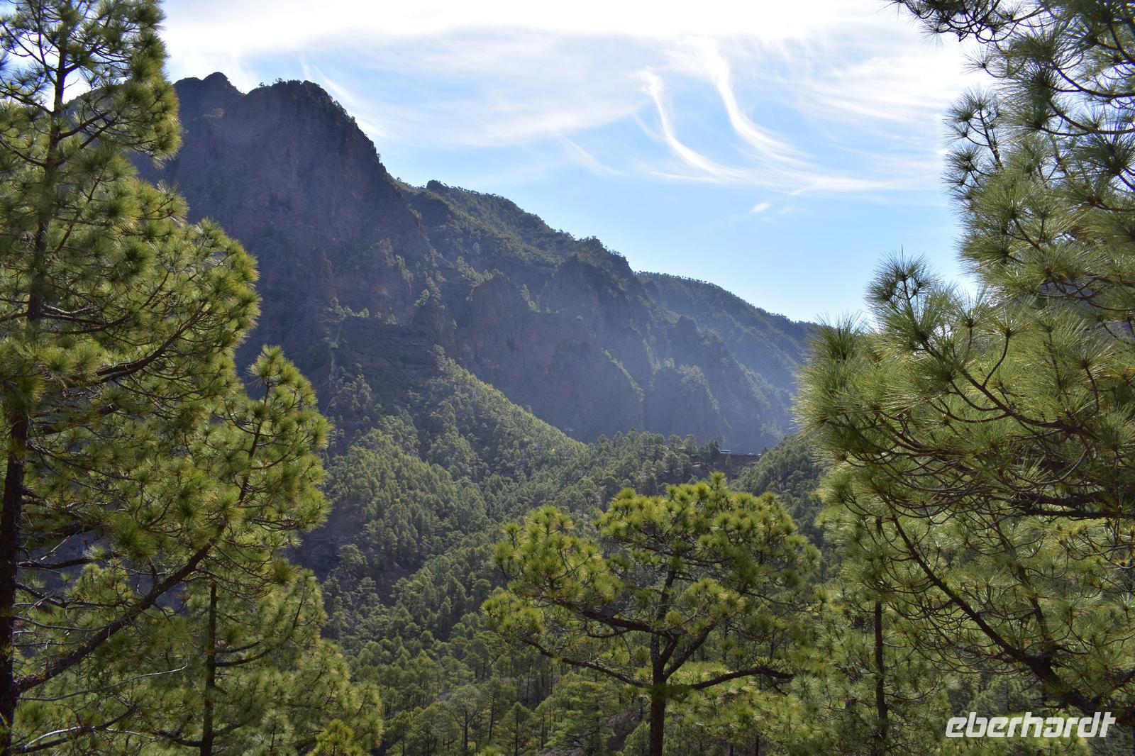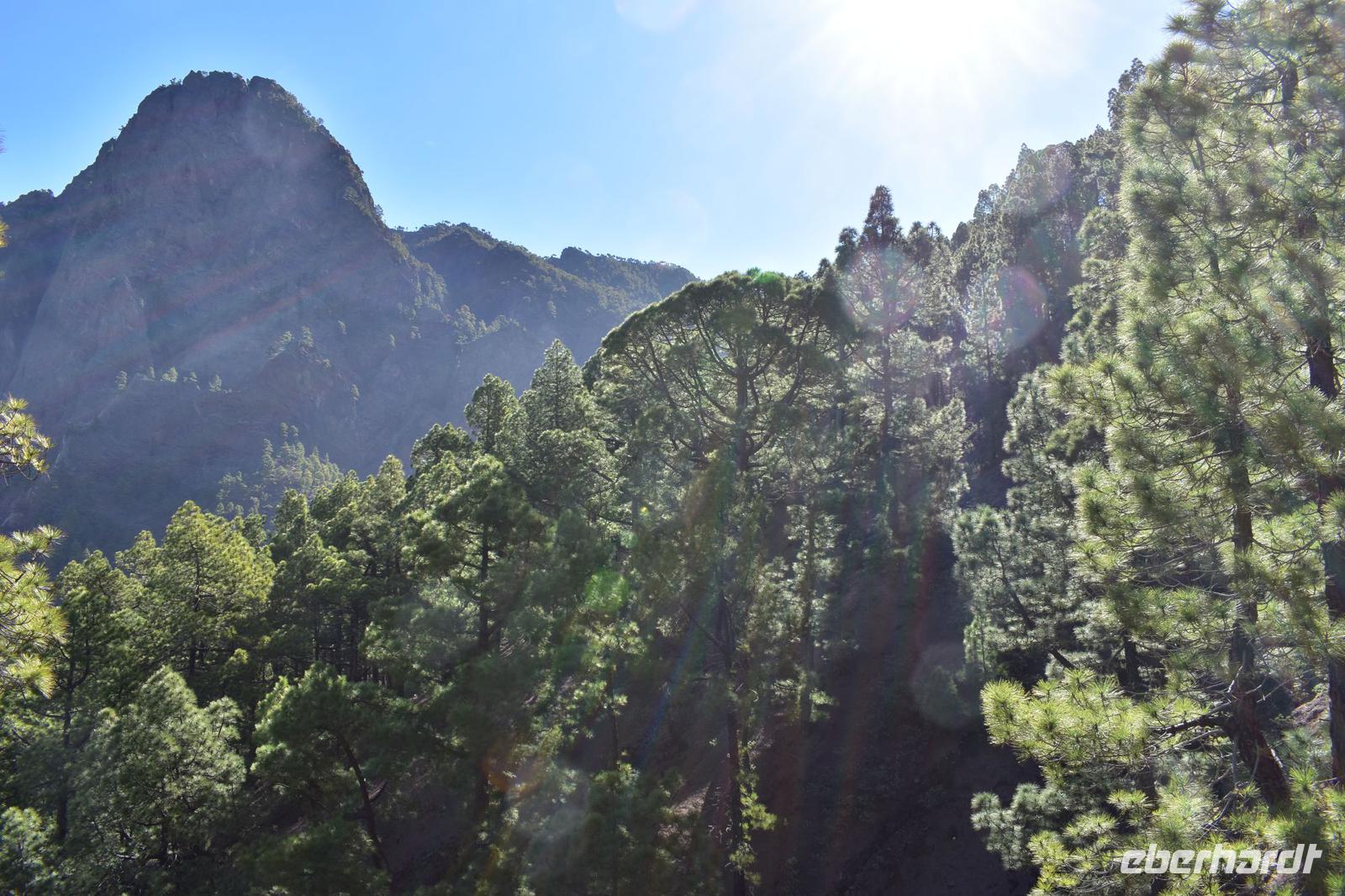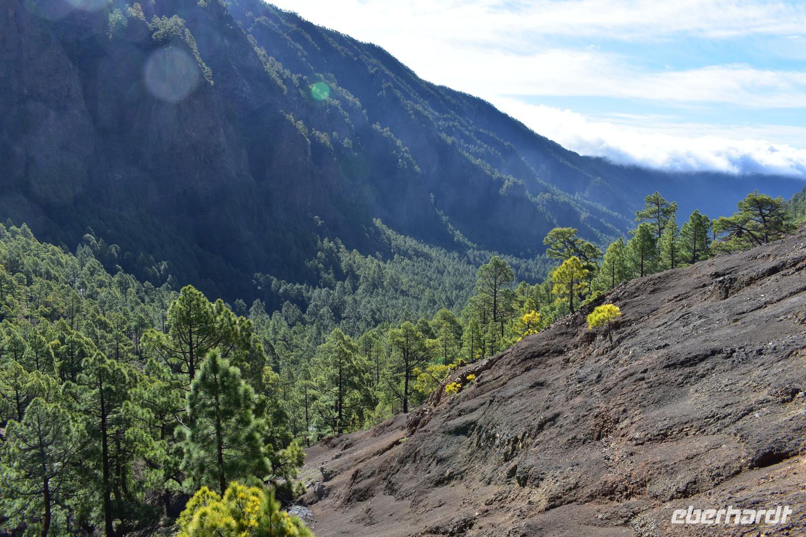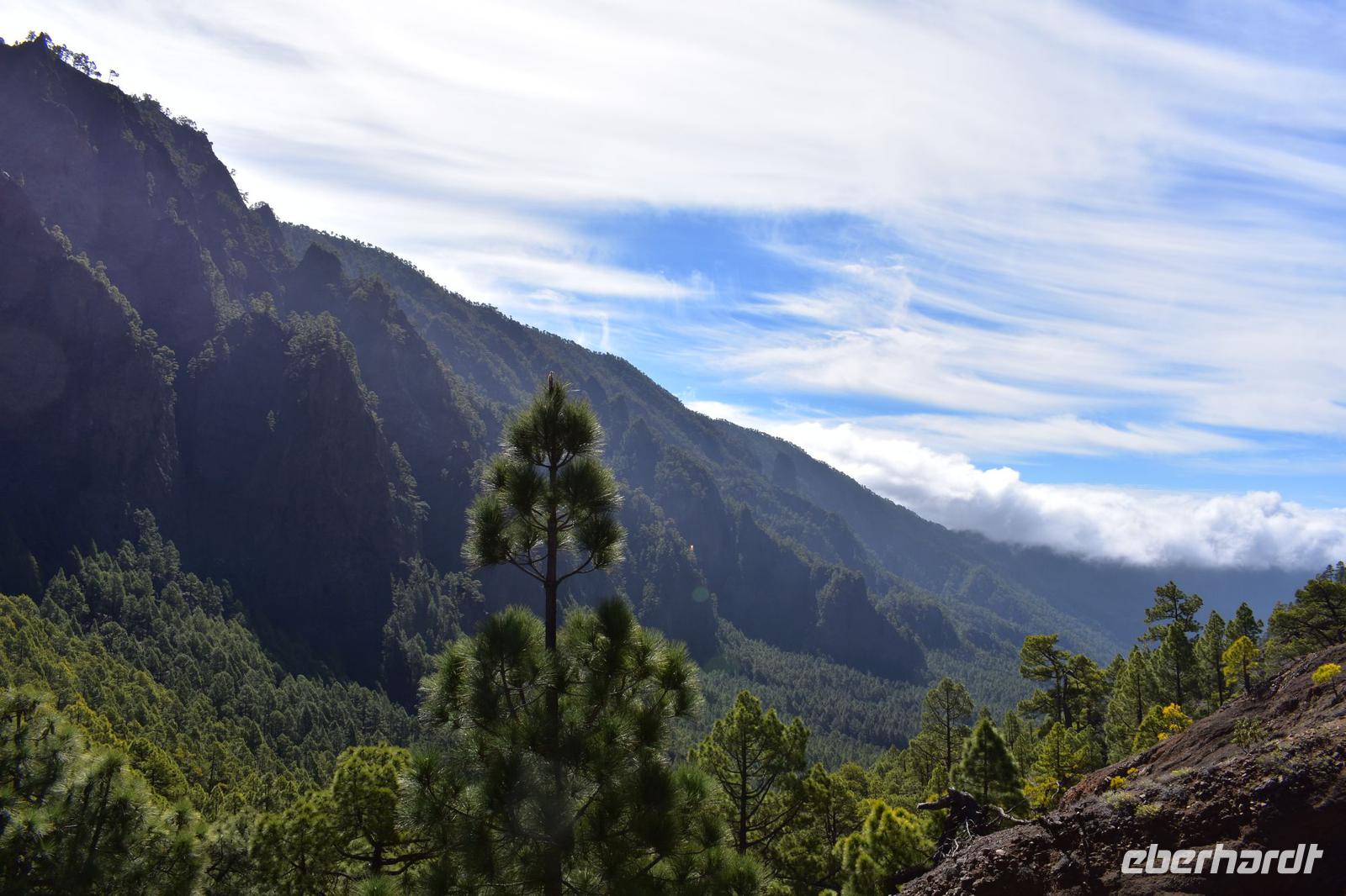 Insel Nummer drei auf unserer Reise - La Palma. Mit Rudi, unserem örtlichen Reiseleiter, ging es am Morgen in Richtung des Nationalparks. Bevor wir in den bewaldeten Teil des Nationalparks auffuhren, bestattetet wir dem Besucherzentrum einen Besuch ab. Dort hatte man die Möglichkeit einige Informationen visuell veranschaulicht zu bekommen. Innerhalb des Parks, in dem man nur mit einer Genehmigung hineinfahren darf, am Aussichtspunkt La Cumbrecita, machten wir einen kleinen Spaziergang durch den Kiefernwald. Die Luft war herrlich klar und die Sonne wärmte uns das Gesicht. Nach ein paar Meter rauf und runter kamen wir am Aussichtspunkt Lomo de Las Chozas an. Wir konnten den Wald und die unglaubliche Ruhe genießen.