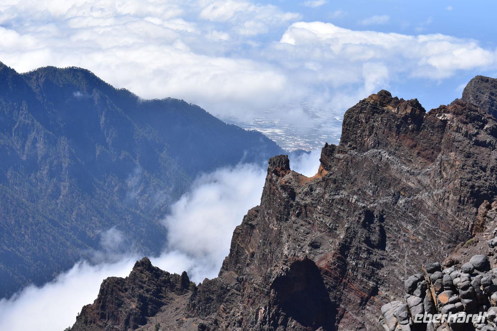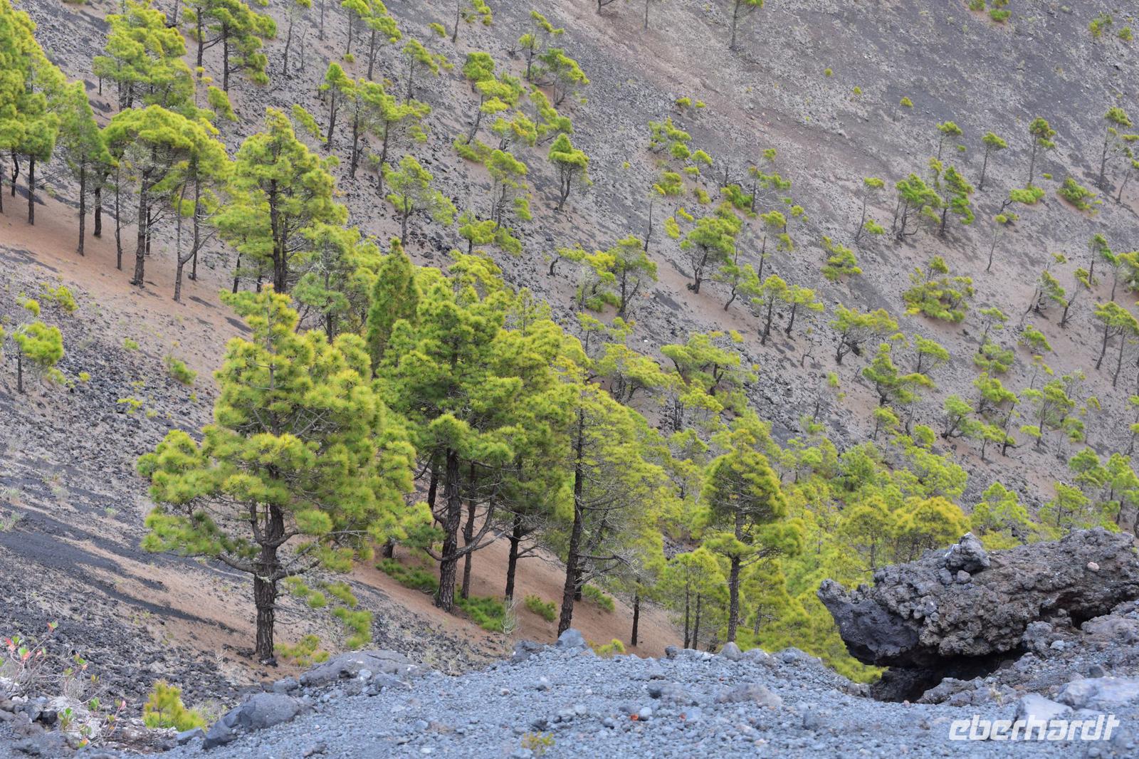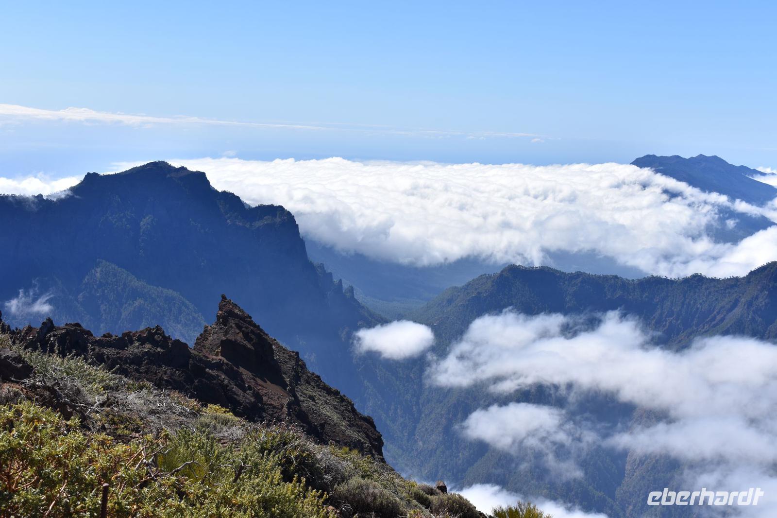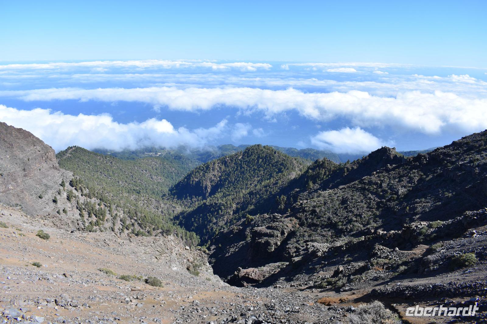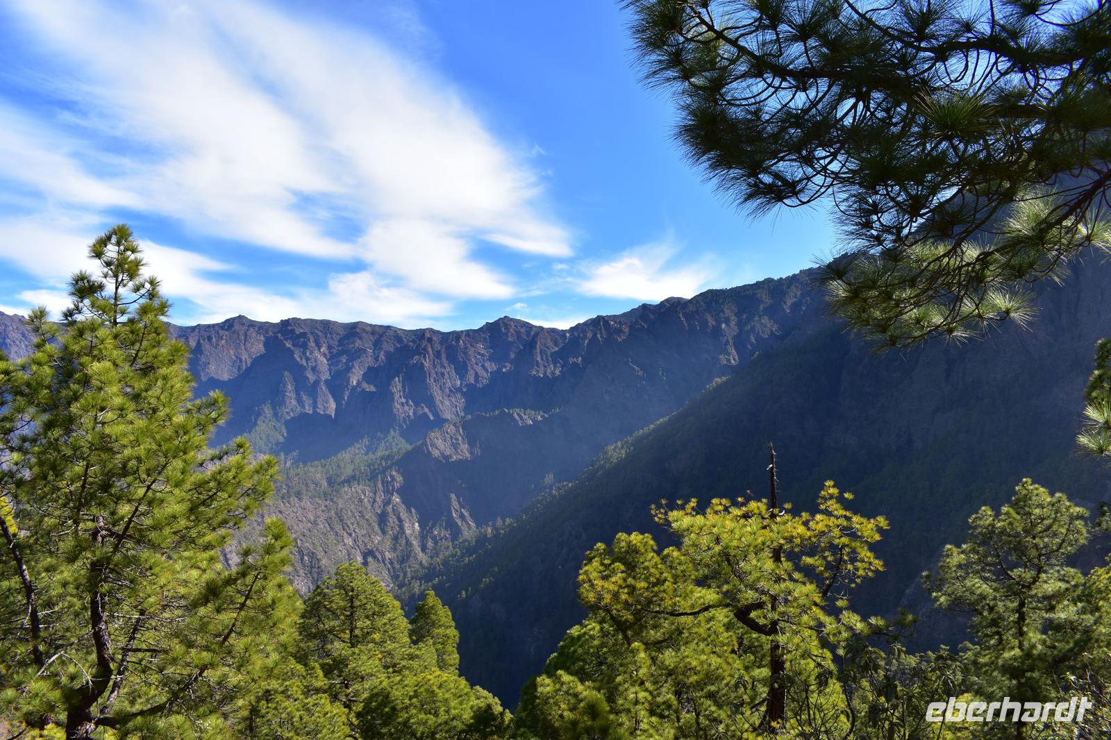 Insel Nummer drei auf unserer Reise - La Palma. Mit Rudi, unserem örtlichen Reiseleiter, ging es am Morgen in Richtung des Nationalparks. Bevor wir in den bewaldeten Teil des Nationalparks auffuhren, bestattetet wir dem Besucherzentrum einen Besuch ab. Dort hatte man die Möglichkeit einige Informationen visuell veranschaulicht zu bekommen. Innerhalb des Parks, in dem man nur mit einer Genehmigung hineinfahren darf, am Aussichtspunkt La Cumbrecita, machten wir einen kleinen Spaziergang durch den Kiefernwald. Die Luft war herrlich klar und die Sonne wärmte uns das Gesicht. Nach ein paar Meter rauf und runter kamen wir am Aussichtspunkt Lomo de Las Chozas an. Wir konnten den Wald und die unglaubliche Ruhe genießen.