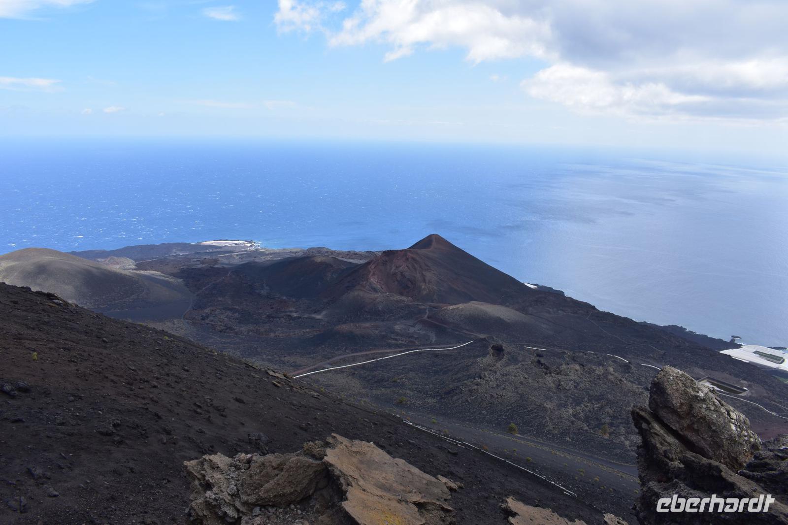 Als nächstes führte uns die Reise in den Süden der Insel. Schließlich erreichten wir die Saline von Fuencaliente. Hier wird aus dem Meerwasser kostbares Salz gewonnen. Es ist die letzte kommerzielle Saline der Kanaren. Über mehrere Becken hinweg lässt man das Meerwasser immer weiter verdunsten, sodass der Salzgehalt des Wassers ansteigt. Am Ende des Prozesses ist der Salzgehalt so hoch, dass man es abschöpfen kann. An der Saline legten wir auch unseren Mittagsstopp ein, und konnten uns dann frisch gestärkt den „kürzlich" ausgebrochenen Vulkanen widmen.