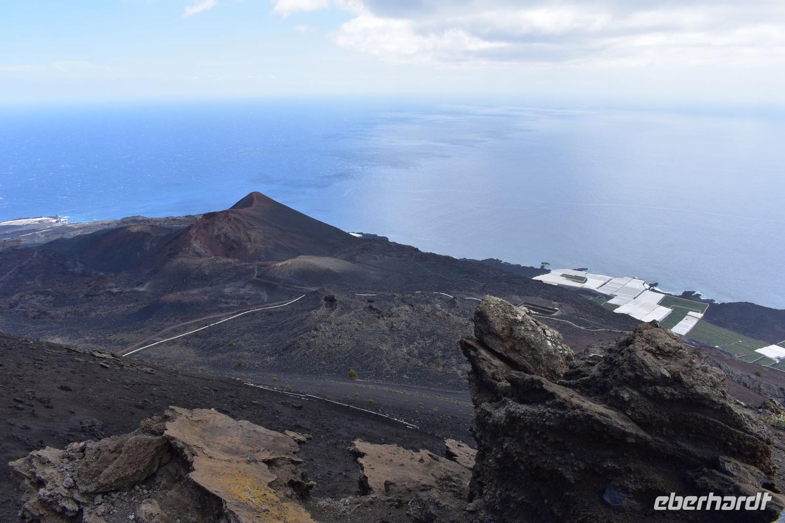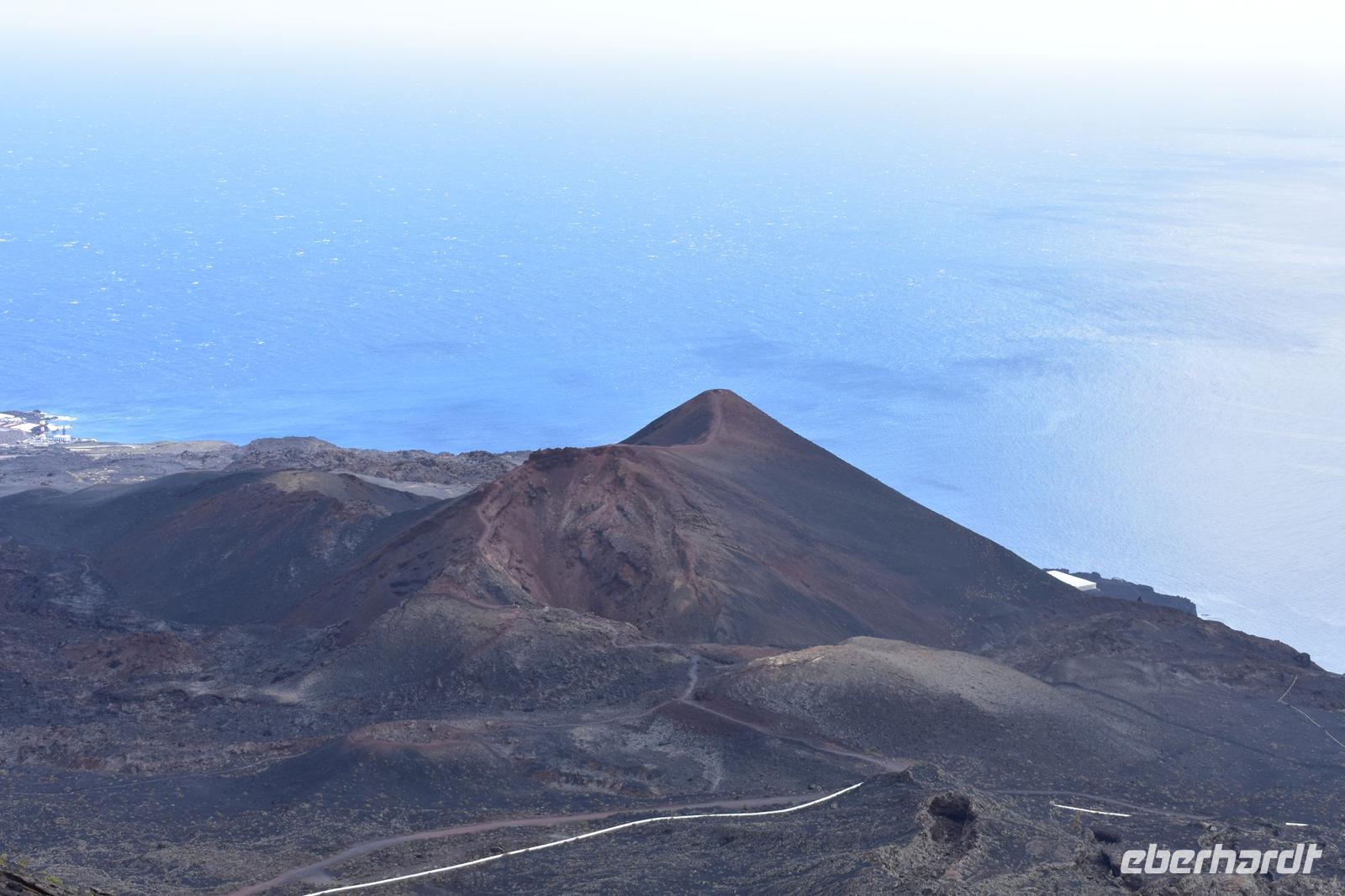 Am Besucherzentrum des Vulkan San Antonio konnten wir auf dem Kraterrand des Vulkans entlang spazieren. Wir gelangten bis zu einem Aussichtpunkt. Von diesem konnte man noch einen weiteren Vulkan sehen - der Teneguia-Krater. Er gehört zu den jüngeren auf der Insel aus dem Jahr 1971. Von oben sah man, wie die dunkle schwarze Lava aus der Erde floss, in der Ferne war auch die Saline zu erkennen.
