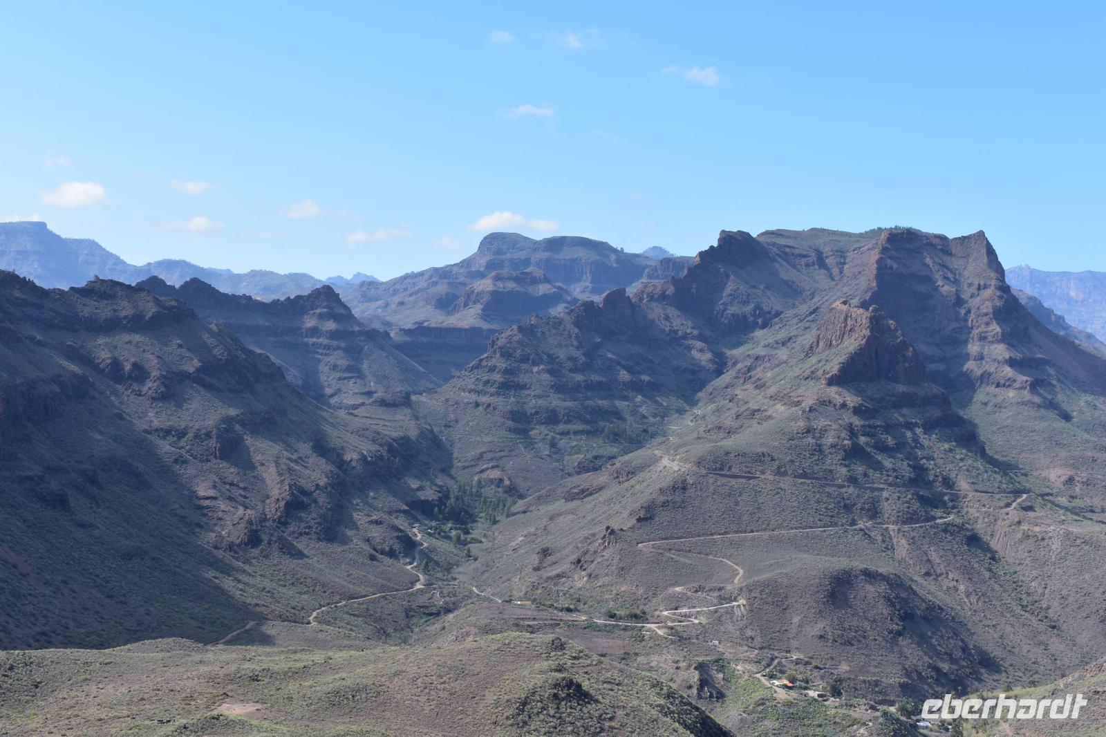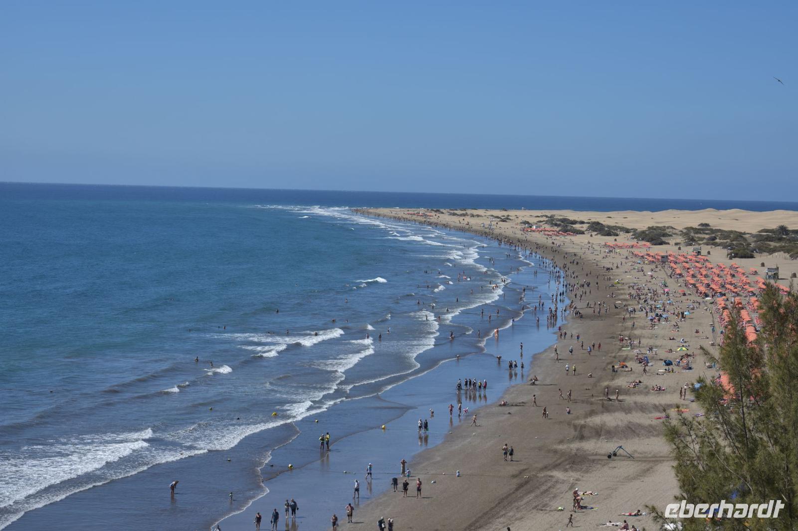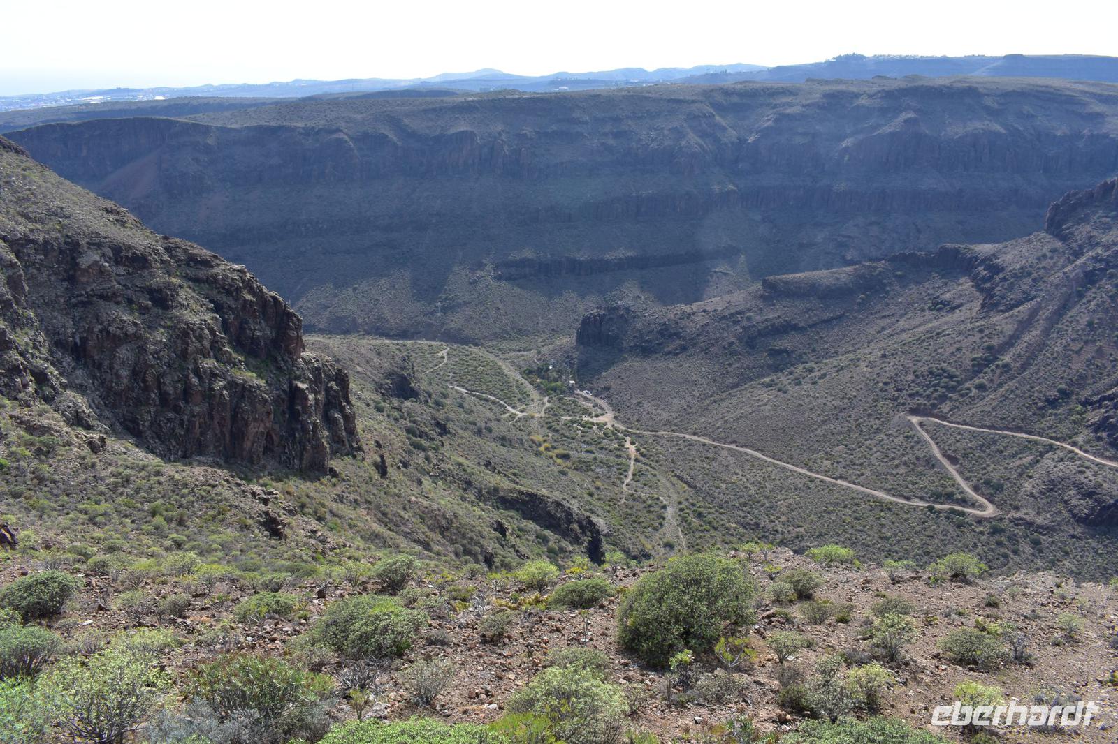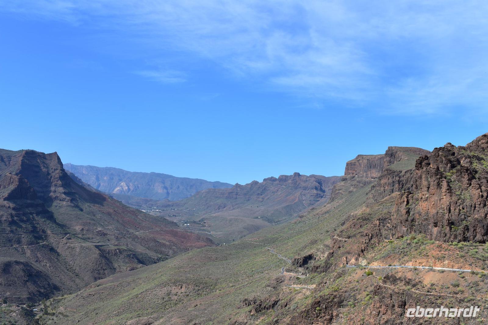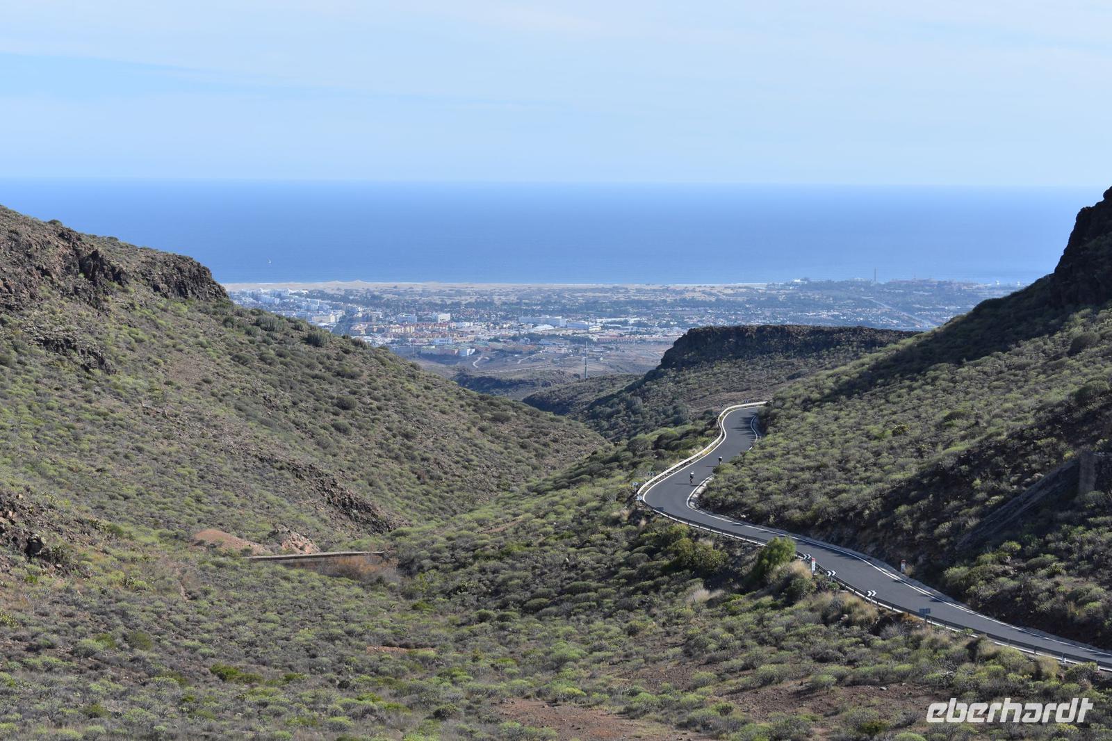 Am Mirador Degollada de las Yeguas machten wir unseren letzten Stopp für heute. Wir genossen ein letztes Mal den Blick in den beeindruckenden Canyon und konnten auch schon den Strand von Maspalomas sehen.