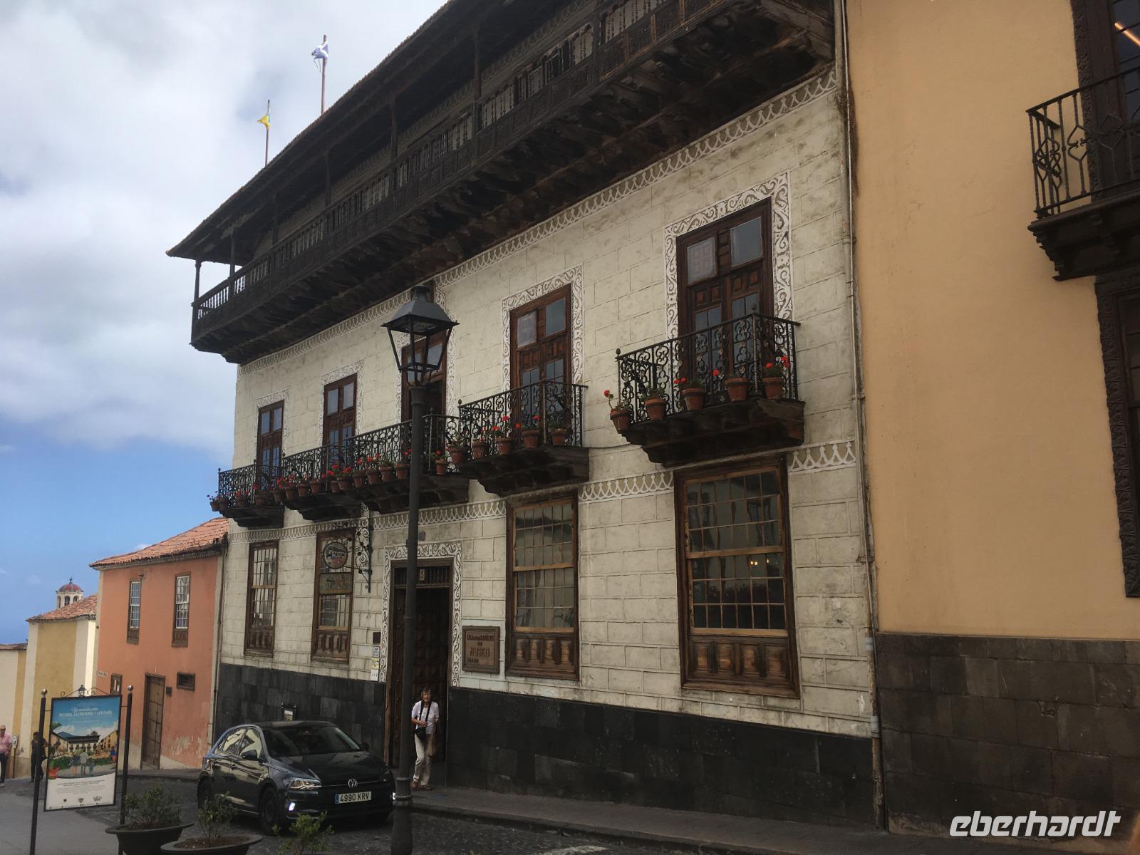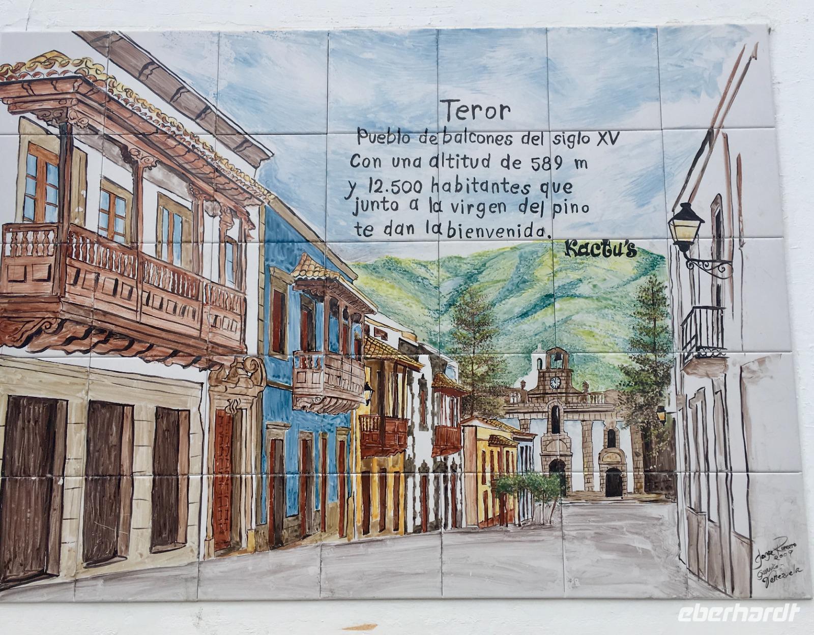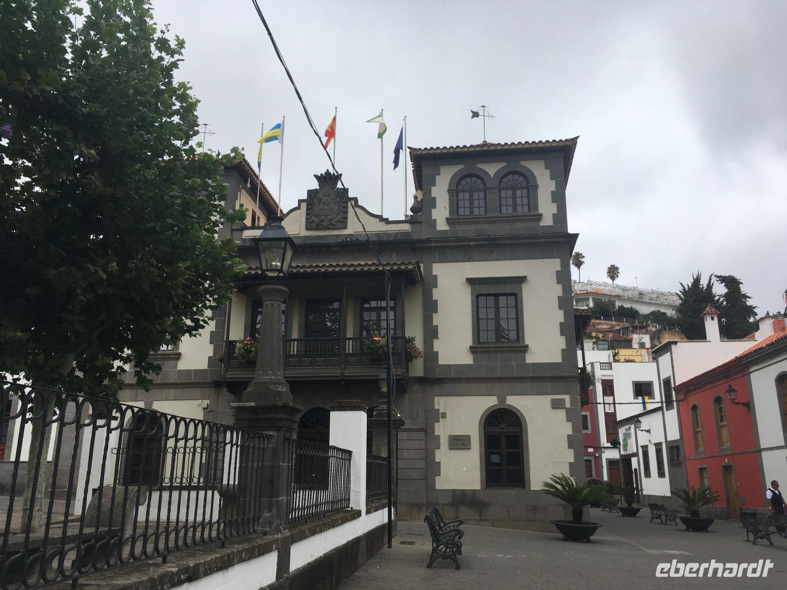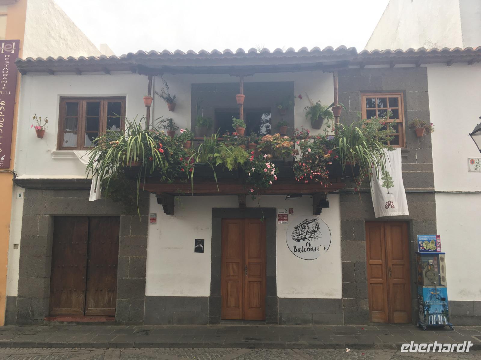 Langsam nähert sich die Mittagszeit und wir erreichen den Ort Teror. Wir spazieren zunächst über den Marktplatz zur Kirche. Anita erzählt uns, dass montags dort reges Treiben herrscht und eine Vielfalt an lokalen Produkten angeboten wird. Da bekommen zwei unserer Eberhardt-Gruppe direkt Appetit und erstehen in einem kleinen Geschäft ein Kilo reinen Ziegenkäse. Der Spaziergang führt uns von der Kirche in die ruhigen Straßen von Teror, dessen Häuser mit üppig bepflanzten Holzbalkonen besonders schön anzusehen sind.