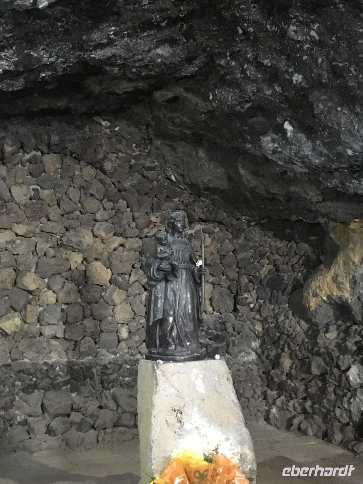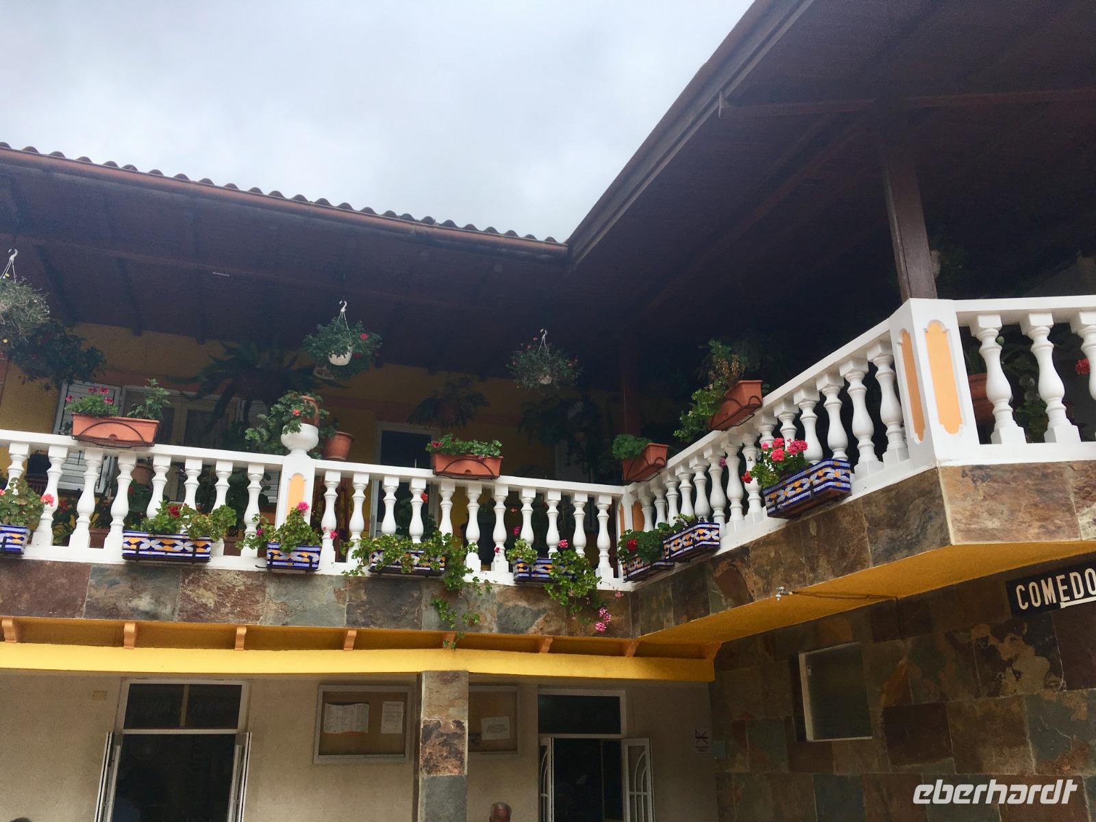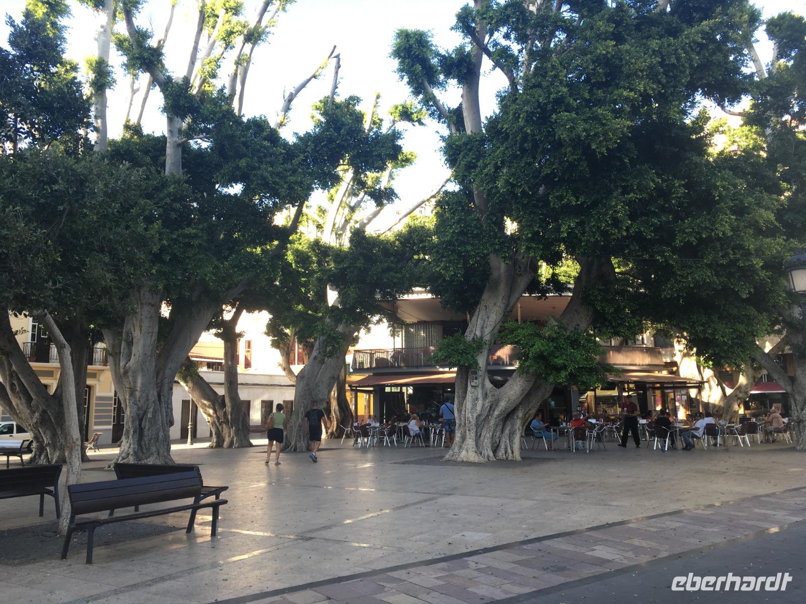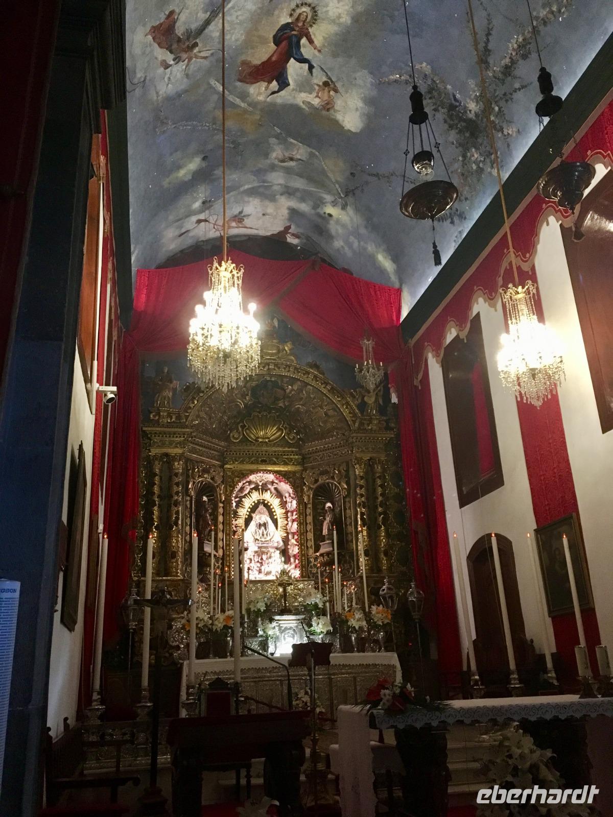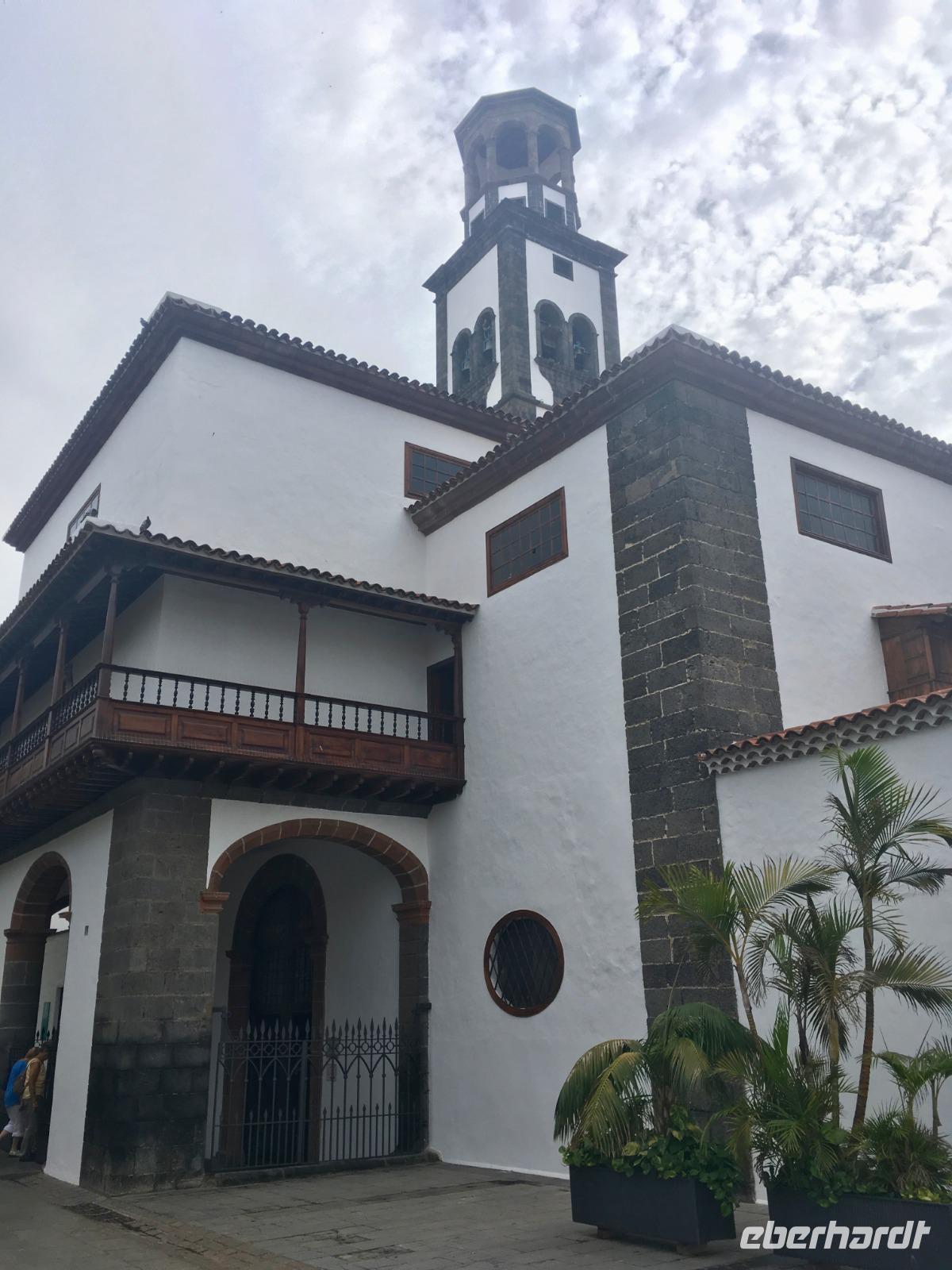 Langsam nähert sich die Mittagszeit und wir erreichen den Ort Teror. Wir spazieren zunächst über den Marktplatz zur Kirche. Anita erzählt uns, dass montags dort reges Treiben herrscht und eine Vielfalt an lokalen Produkten angeboten wird. Da bekommen zwei unserer Eberhardt-Gruppe direkt Appetit und erstehen in einem kleinen Geschäft ein Kilo reinen Ziegenkäse. Der Spaziergang führt uns von der Kirche in die ruhigen Straßen von Teror, dessen Häuser mit üppig bepflanzten Holzbalkonen besonders schön anzusehen sind.